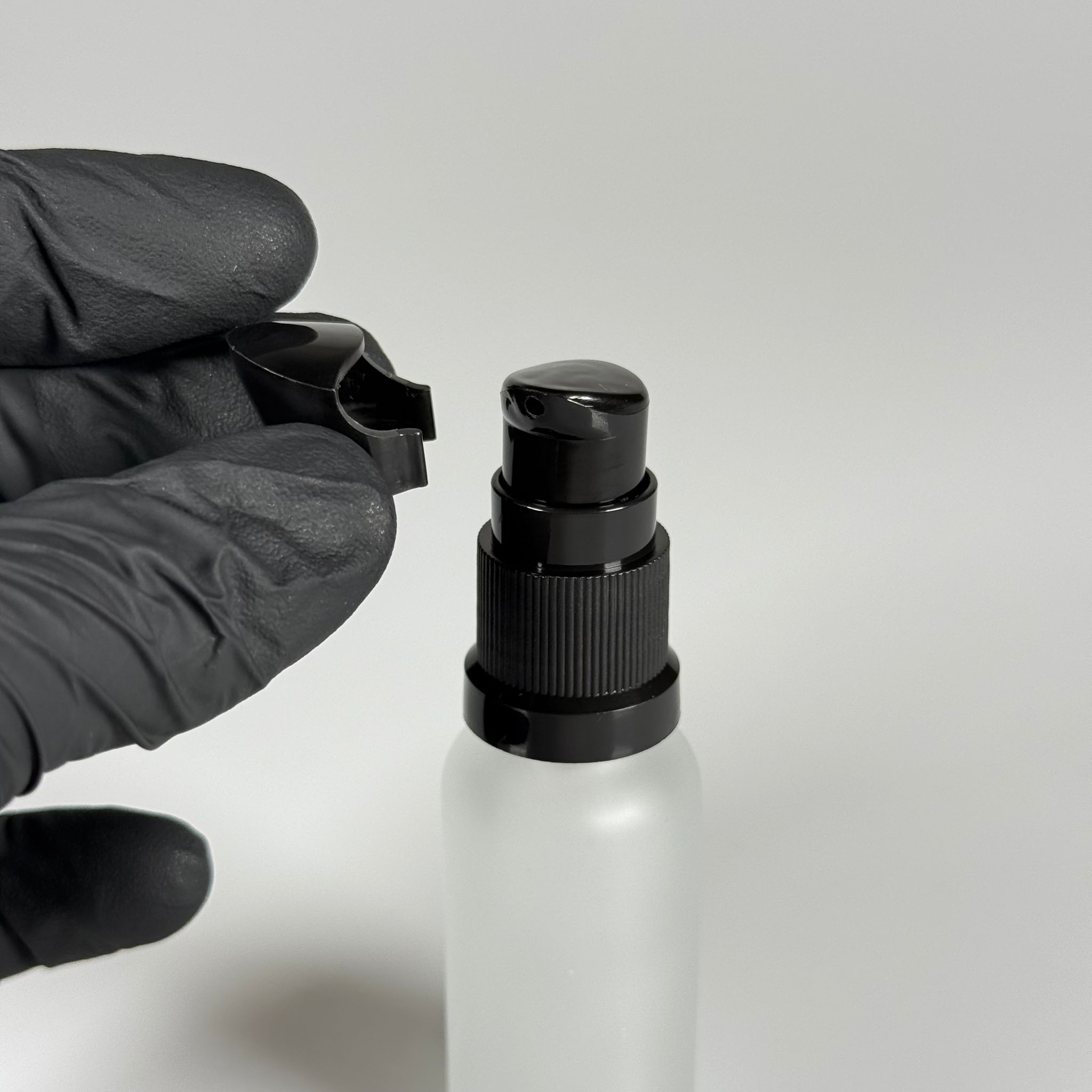 20 CC BUZLU CAM ŞİŞE - SIZDIRMAZ ETEKLİ SİYAH LOSYON POMPALI TAKIM - 20 ML LOSYON ŞİŞESİ - YAĞ, KREM GİBİ YOĞUN KIVAMLI SIVILAR İÇİN CAM AMBALAJ
