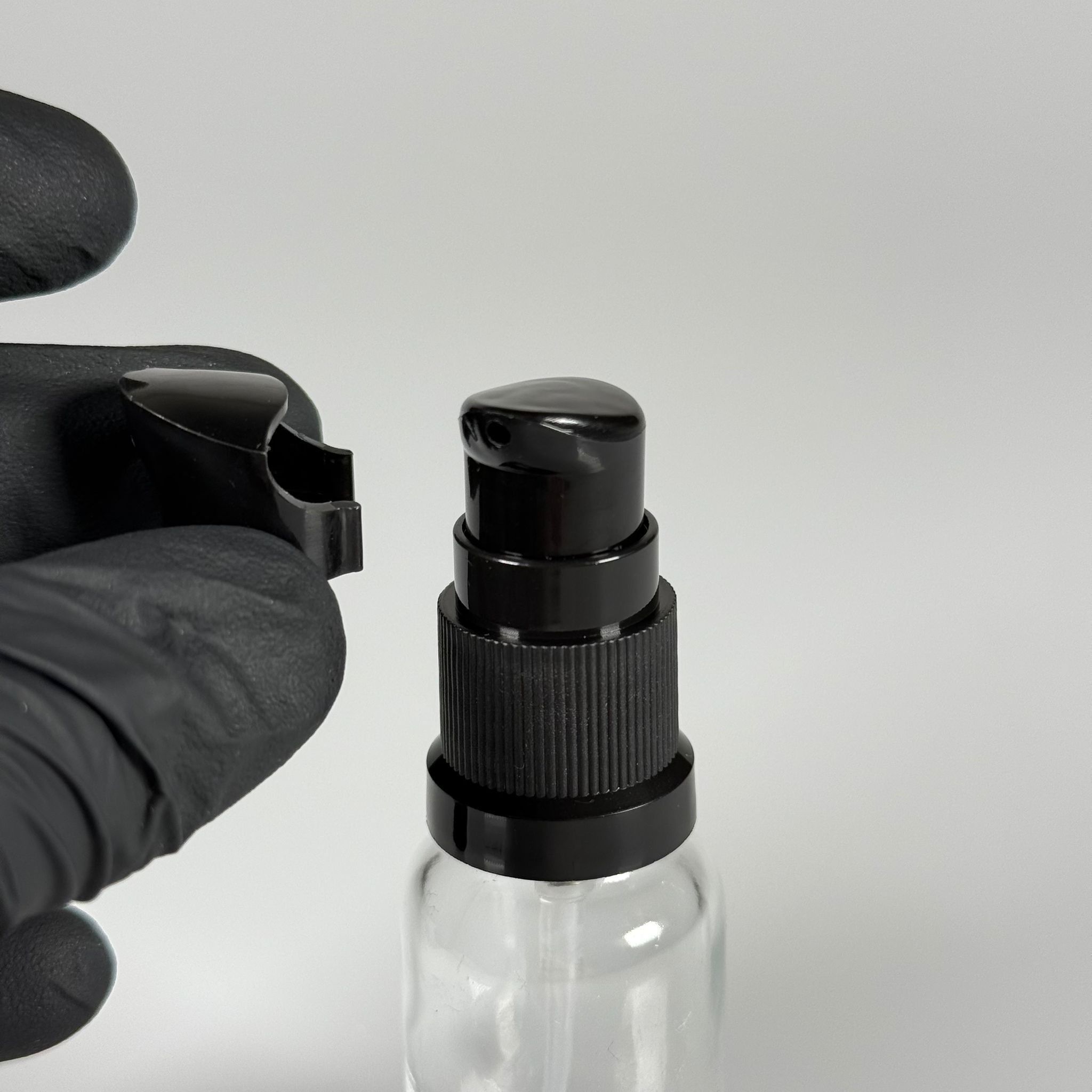 20 CC ŞEFFAF CAM ŞİŞE - SIZDIRMAZ ETEKLİ SİYAH LOSYON POMPALI TAKIM - 20 ML LOSYON ŞİŞESİ - YAĞ, KREM GİBİ YOĞUN KIVAMLI SIVILAR İÇİN CAM AMBALAJ