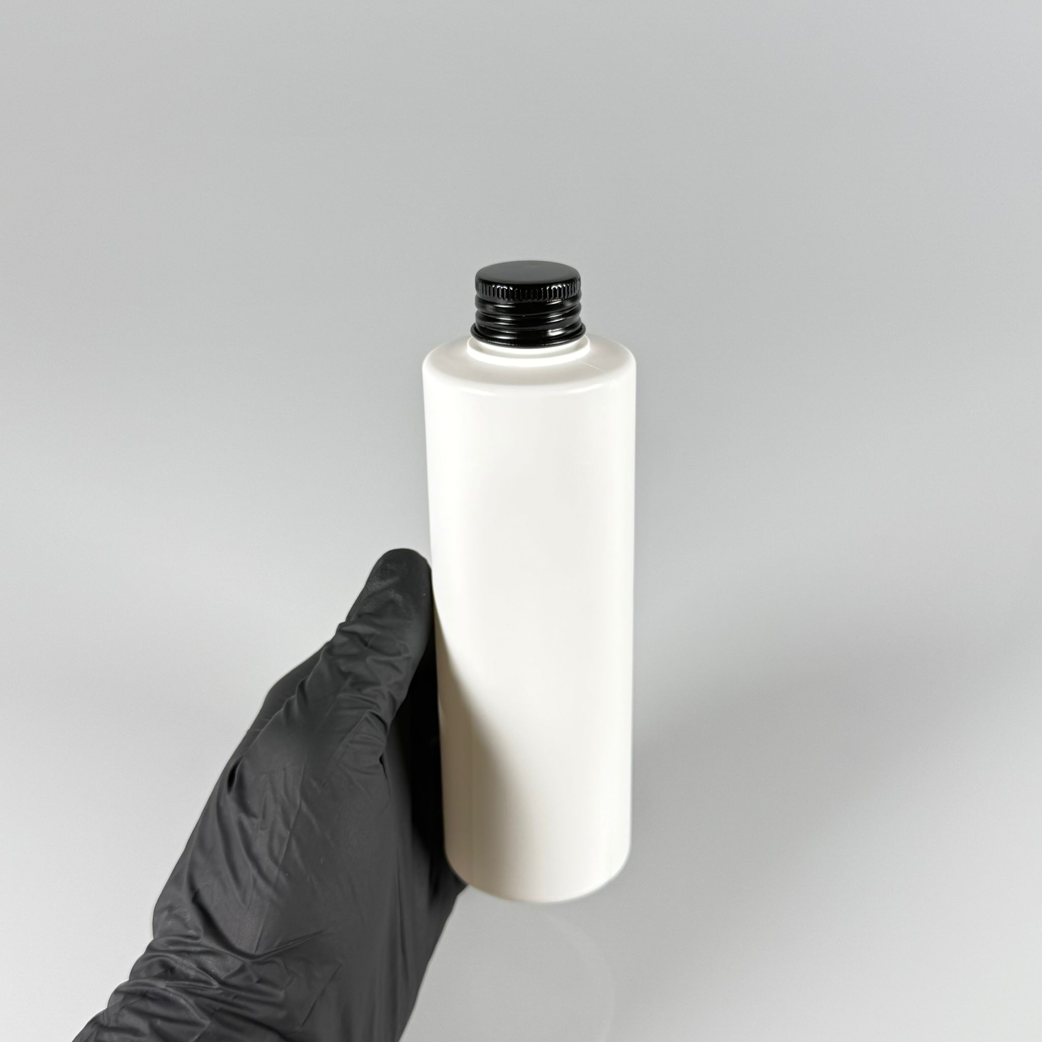 200 CC (SİLME 250 CC) BEYAZ SİLİNDİR MODEL MAT SERT POLİETİLEN ŞİŞE - SİYAH METAL KAPAKLI - 200 ML BEYAZ PLASTİK ŞİŞE