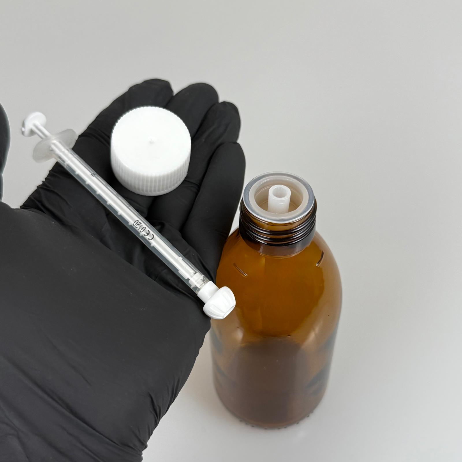 200 ML CAM ECZA ŞİŞESİ + 1 ML DOZAJ PİPETİ + DOZAJ TIPASI + CONTALI PLASTİK KAPAK TAKIM
