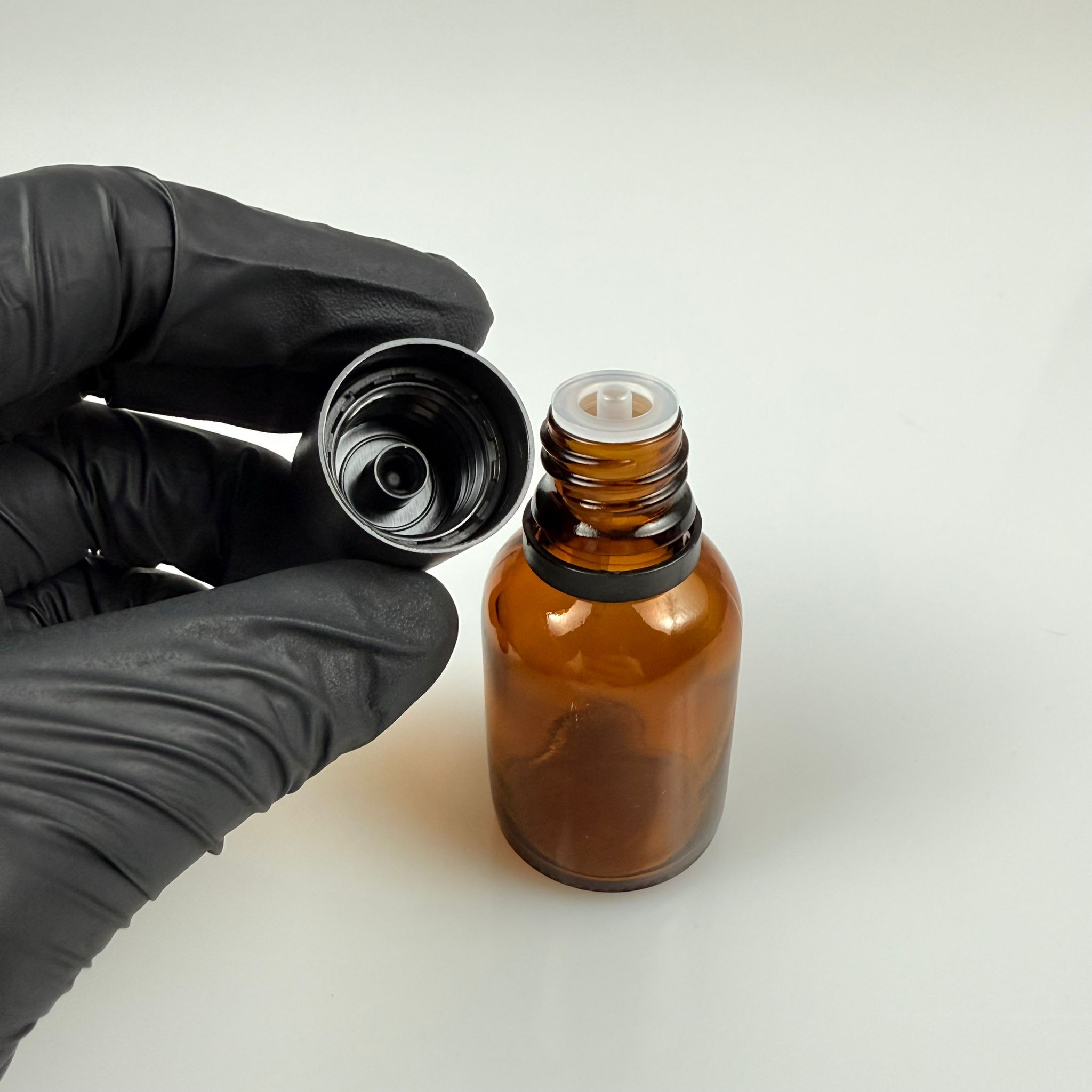 25 CC AMBER CAM ŞİŞE + İÇTEN DAMLALIKLI ÇOCUK KİLİTLİ SİYAH KAPAK - KAHVERENGİ 25 ML KİLİT KAPAKLI DAMLATMALI ŞİŞE