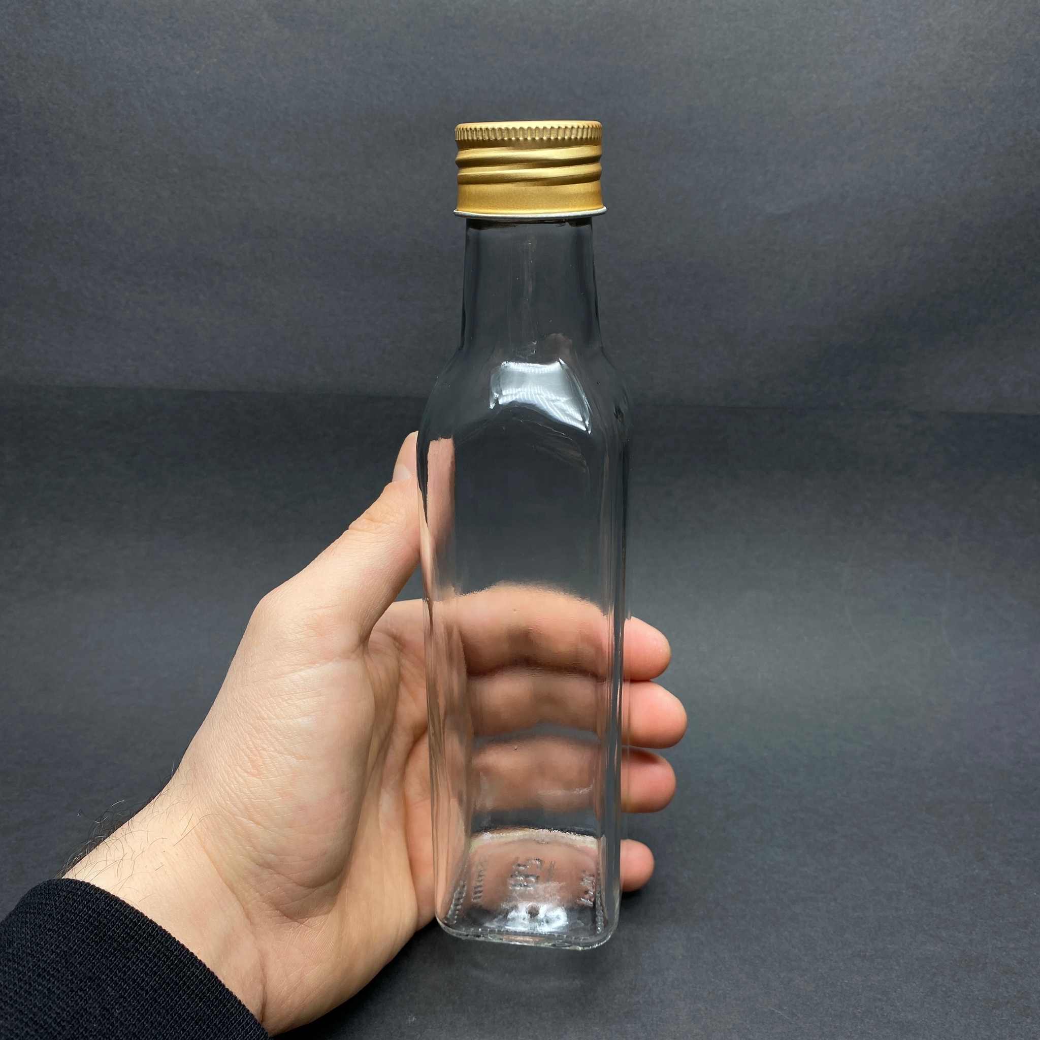 250 CC MARASKA CAM ŞİŞE - GOLD METAL ALÜMİNYUM KAPAKLI - 250 ML KÖŞELİ YAĞ ŞİŞESİ - SİRKE ŞİŞESİ