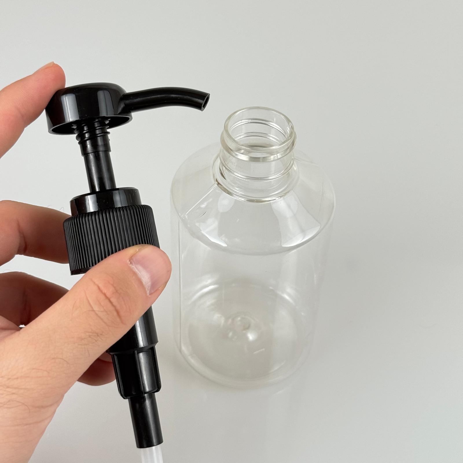 250 CC PET ŞEFFAF KÜT MODEL ŞİŞE - SİYAH DOZAJ POMPALI (HER BASMADA 4 CC SIVI ATAR) - 0,25 LT POMPALI ŞİŞE - ŞURUP, ŞAMPUAN, KREM GİBİ YOĞUN KIVAMLI SIVILARDA KULLANILIR