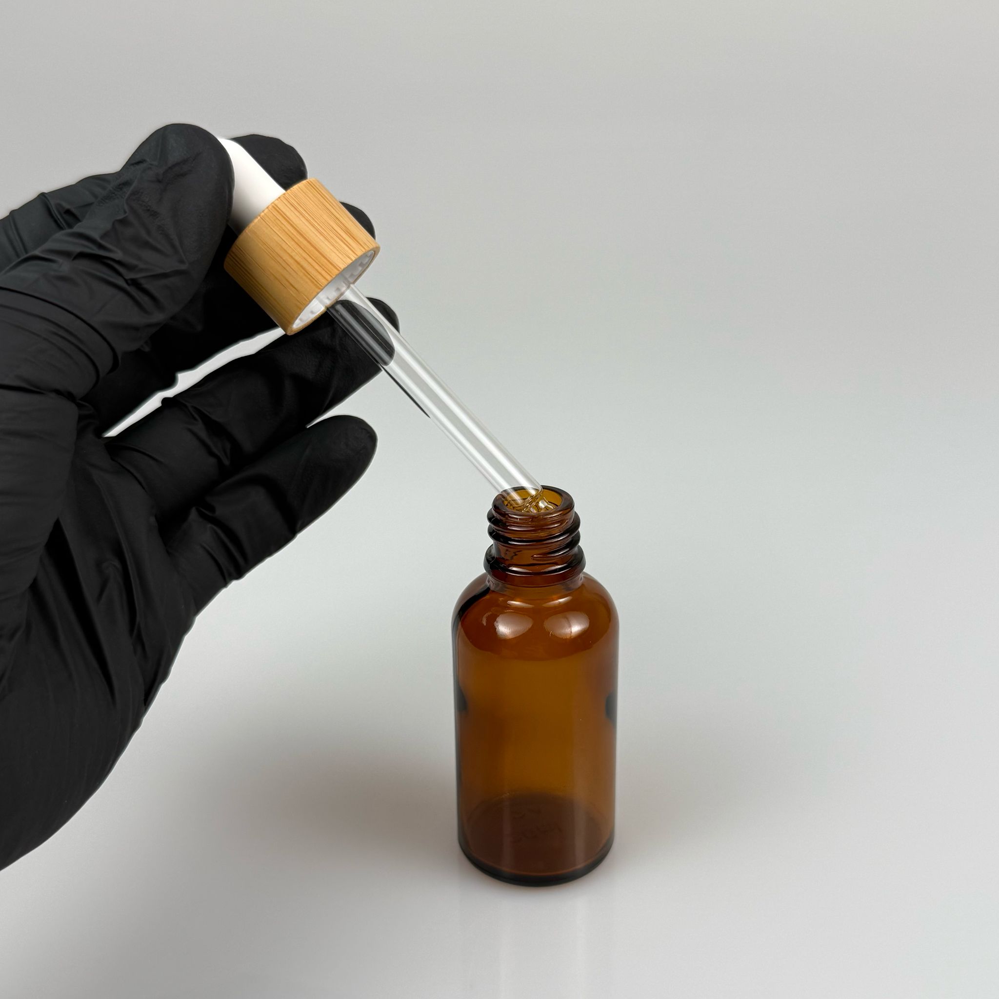 30 CC AMBER CAM DAMLALIKLI ŞİŞE - BEYAZ EMZİK - BAMBU AHŞAP KAPAK - 30 ML BAMBU KAPAKLI CAM DAMLALIKLI ŞİŞE