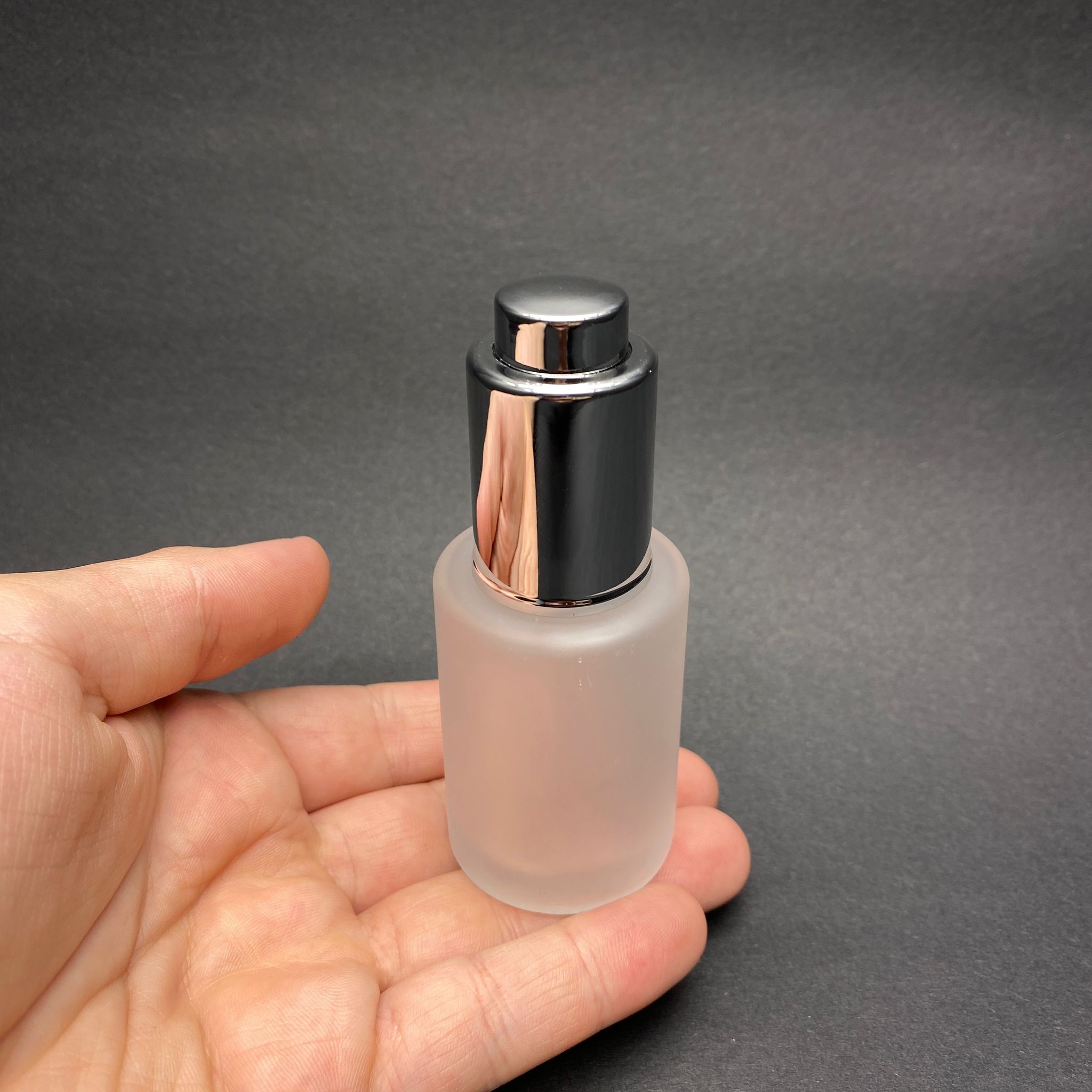 30 CC OMUZLU BUZLU CAM ŞİŞE - LÜX GÜMÜŞ BASMALI CAM DAMLALIKLI TAKIM (DAMLALIĞIN İÇİNDE SIZDIRMAZ CONTA MEVCUTTUR) - 30 ML KÜT BOYUNLU CAM SERUM ŞİŞESİ