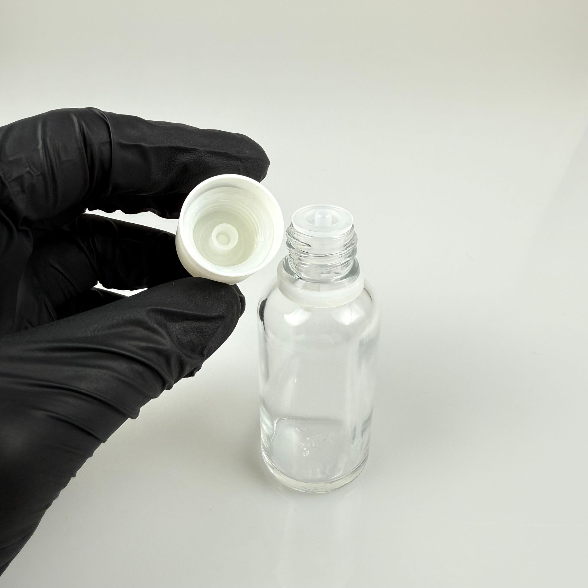 30 CC ŞEFFAF CAM ŞİŞE + İÇTEN DAMLALIKLI ÇOCUK KİLİTLİ BEYAZ KAPAK - SAYDAM 30 ML KİLİT KAPAKLI DAMLATMALI ŞİŞE