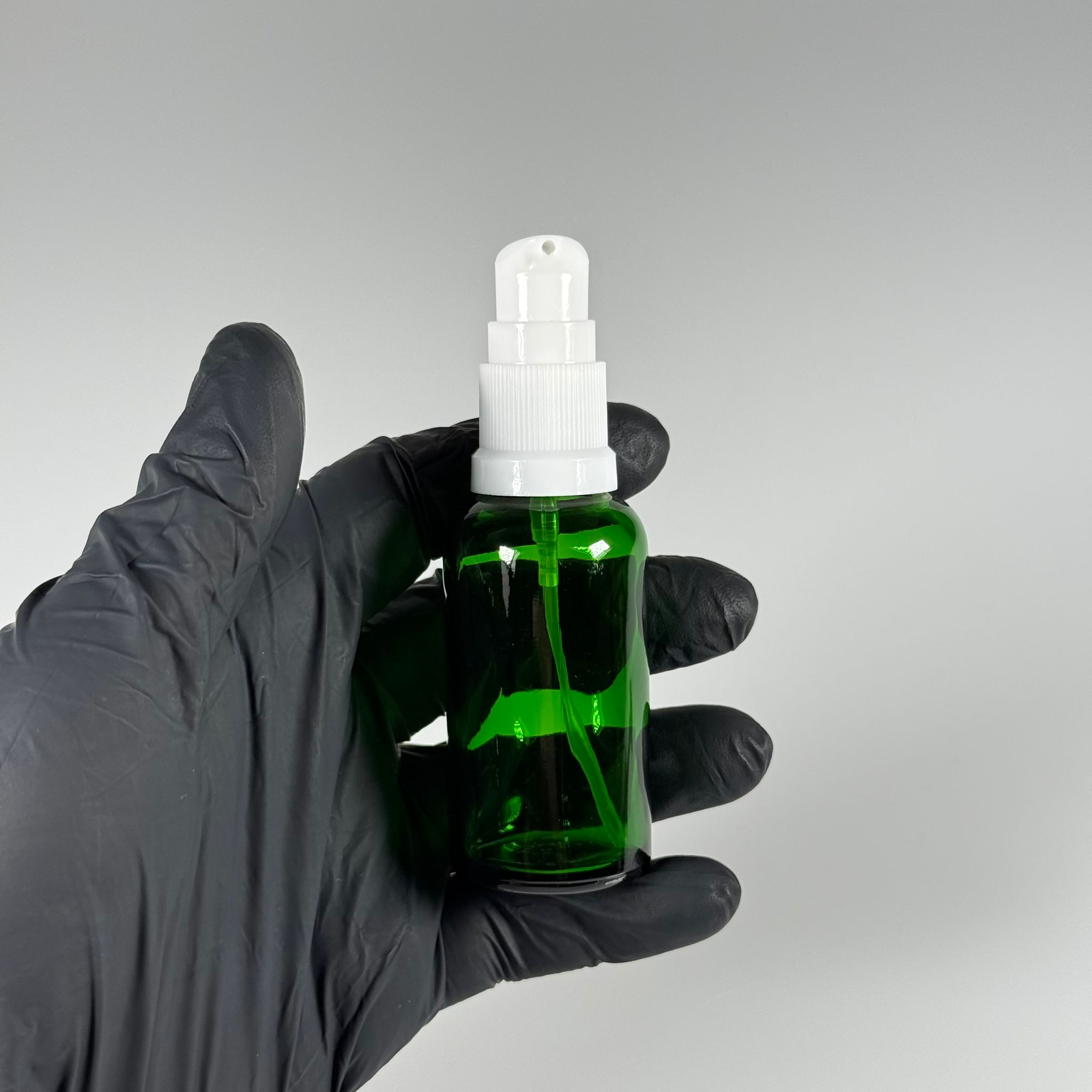 30 CC YEŞİL CAM ŞİŞE - SIZDIRMAZ ETEKLİ BEYAZ LOSYON POMPALI TAKIM - 30 ML LOSYON ŞİŞESİ - YAĞ, KREM GİBİ YOĞUN KIVAMLI SIVILAR İÇİN CAM AMBALAJ