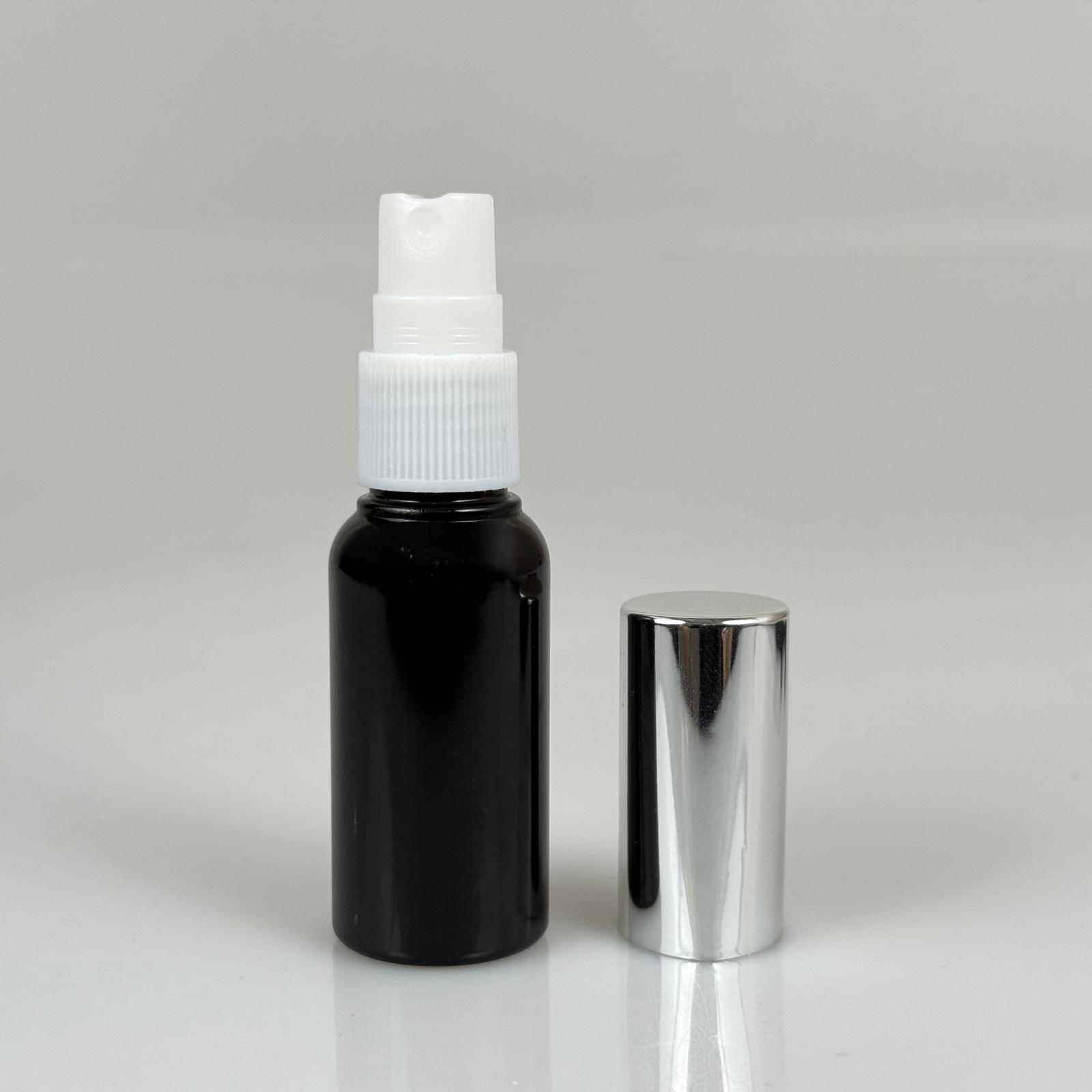 30 ML PET KOLONYA, PARFÜM VB ŞİŞELERİ - METAL ALÜMİNYUM GÜMÜŞ KAPAK + VİDALI SPREY + 30 CC SİYAH ŞİŞE SET TAKIM