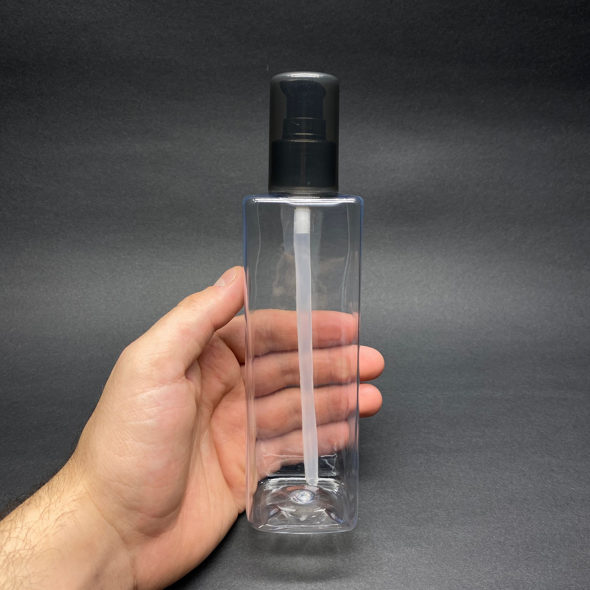 300 CC KARE PET ŞİŞE (31 GR) - SİYAH LOSYON POMPALI - 300 ML KÖŞELİ PLASTİK ŞİŞE
