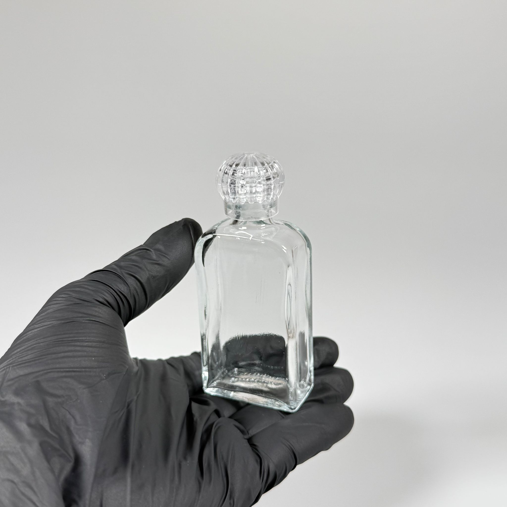 40 CC YASSI DİKDÖRTGEN CAM ŞİŞE - KRİSTAL KAPAKLI KOLONYA TIPALI - 40 ML PRESTİJLİ ŞİŞE