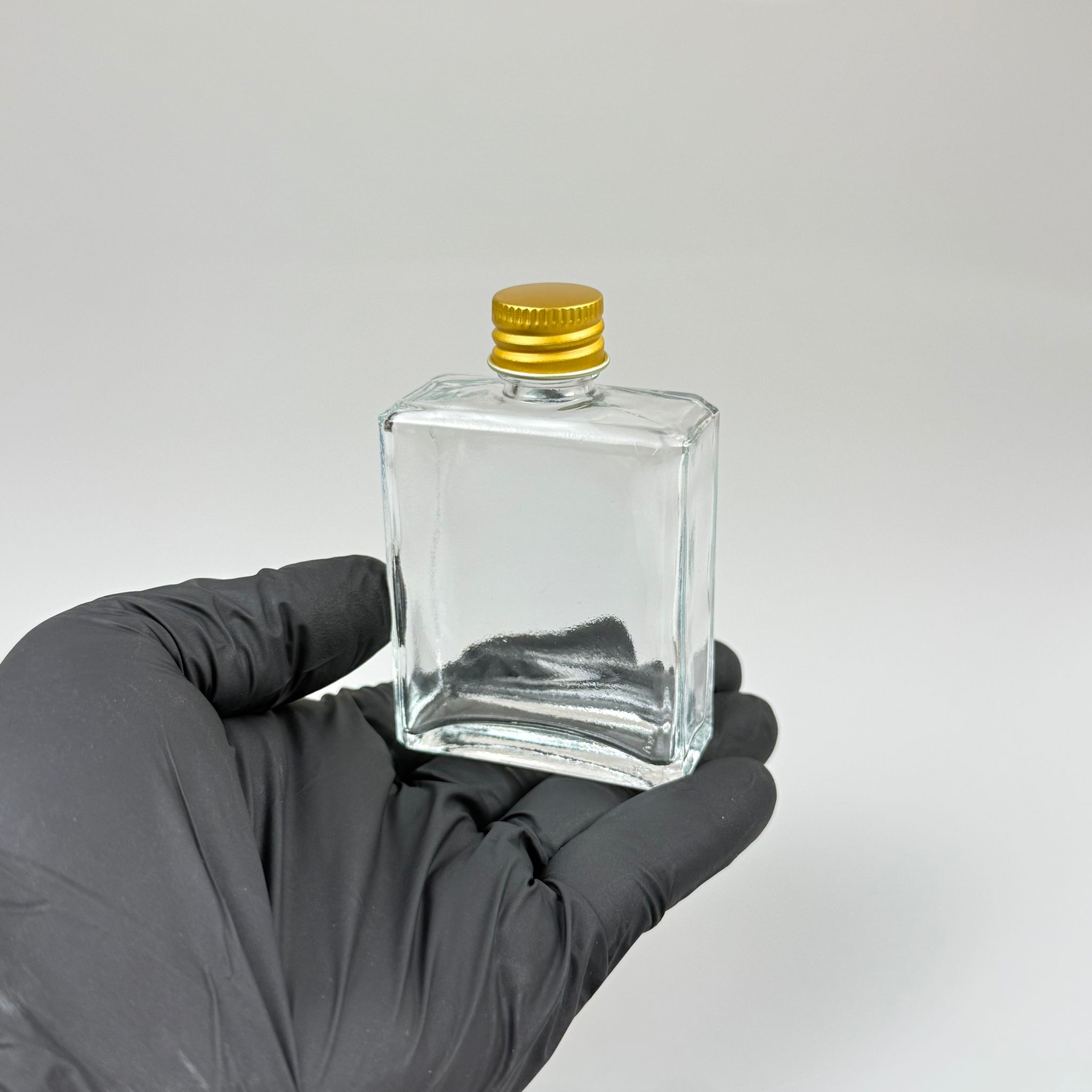 40 CC YASSI DİKDÖRTGEN KÖŞELİ KISA CAM ŞİŞE - GOLD METAL KAPAKLI - 40 ML PRESTİJLİ ŞİŞE
