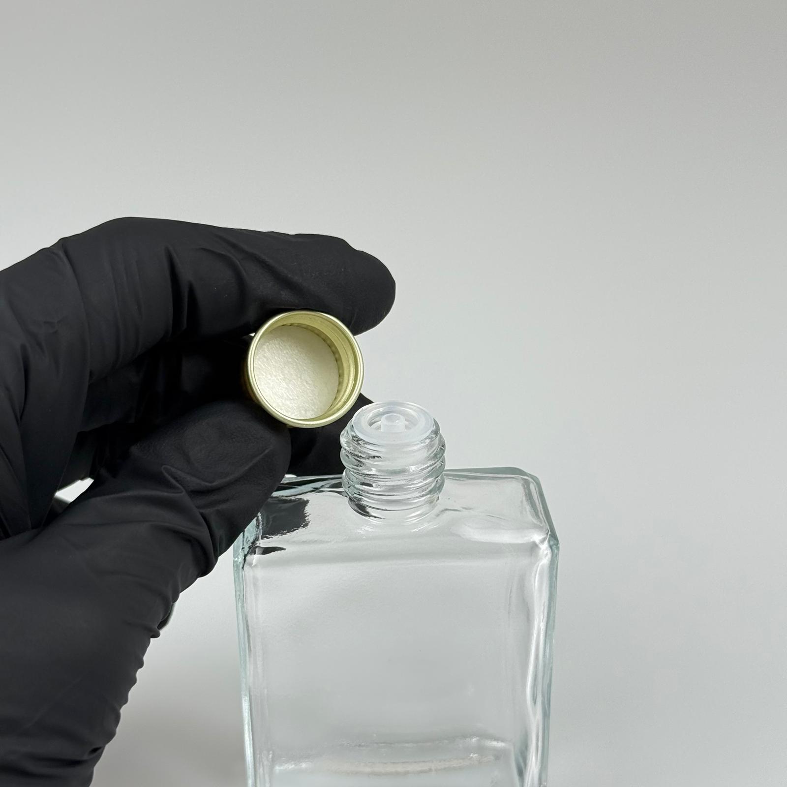 40 CC YASSI DİKDÖRTGEN KÖŞELİ KISA CAM ŞİŞE - GOLD METAL KAPAKLI KOLONYA TIPALI - 40 ML PRESTİJLİ ŞİŞE