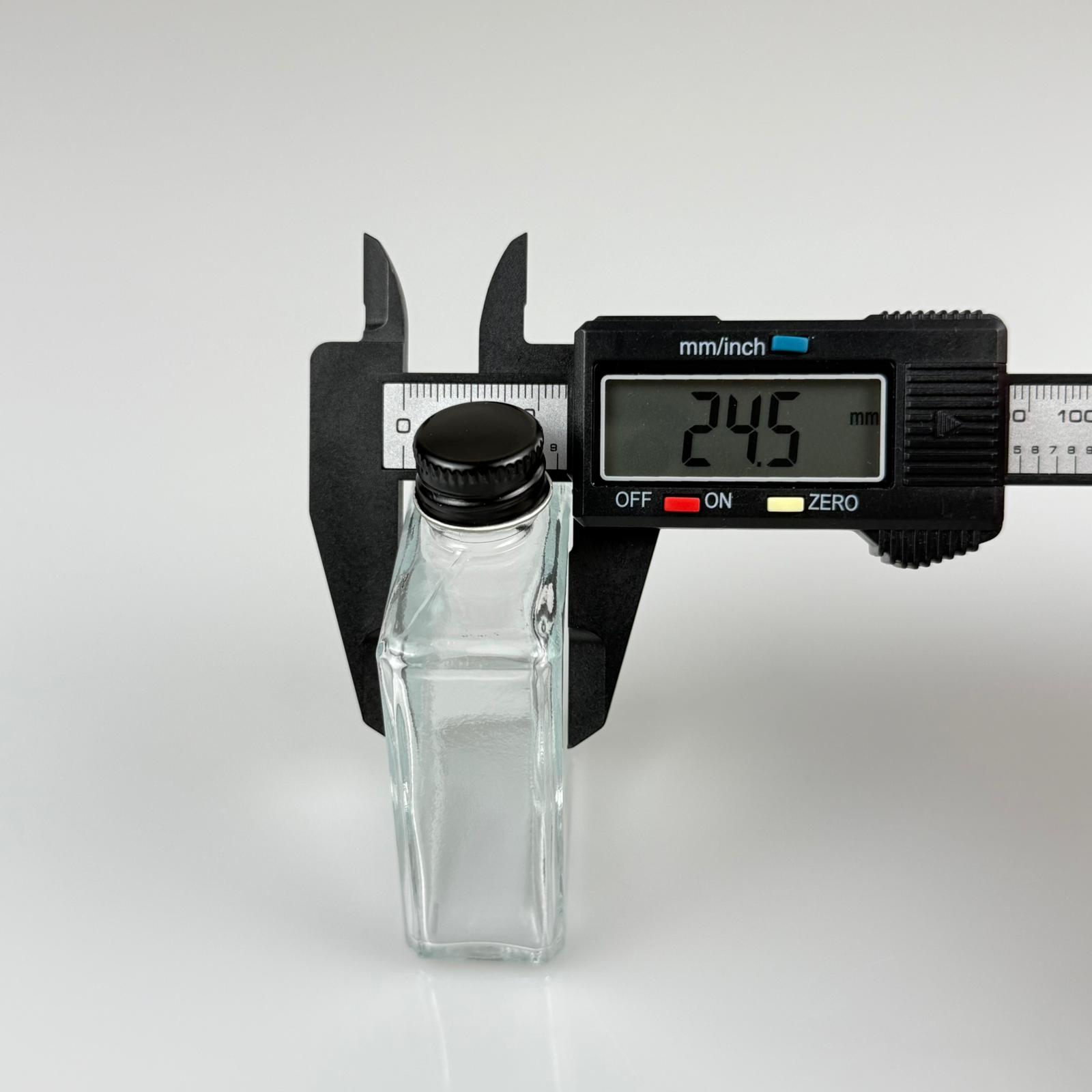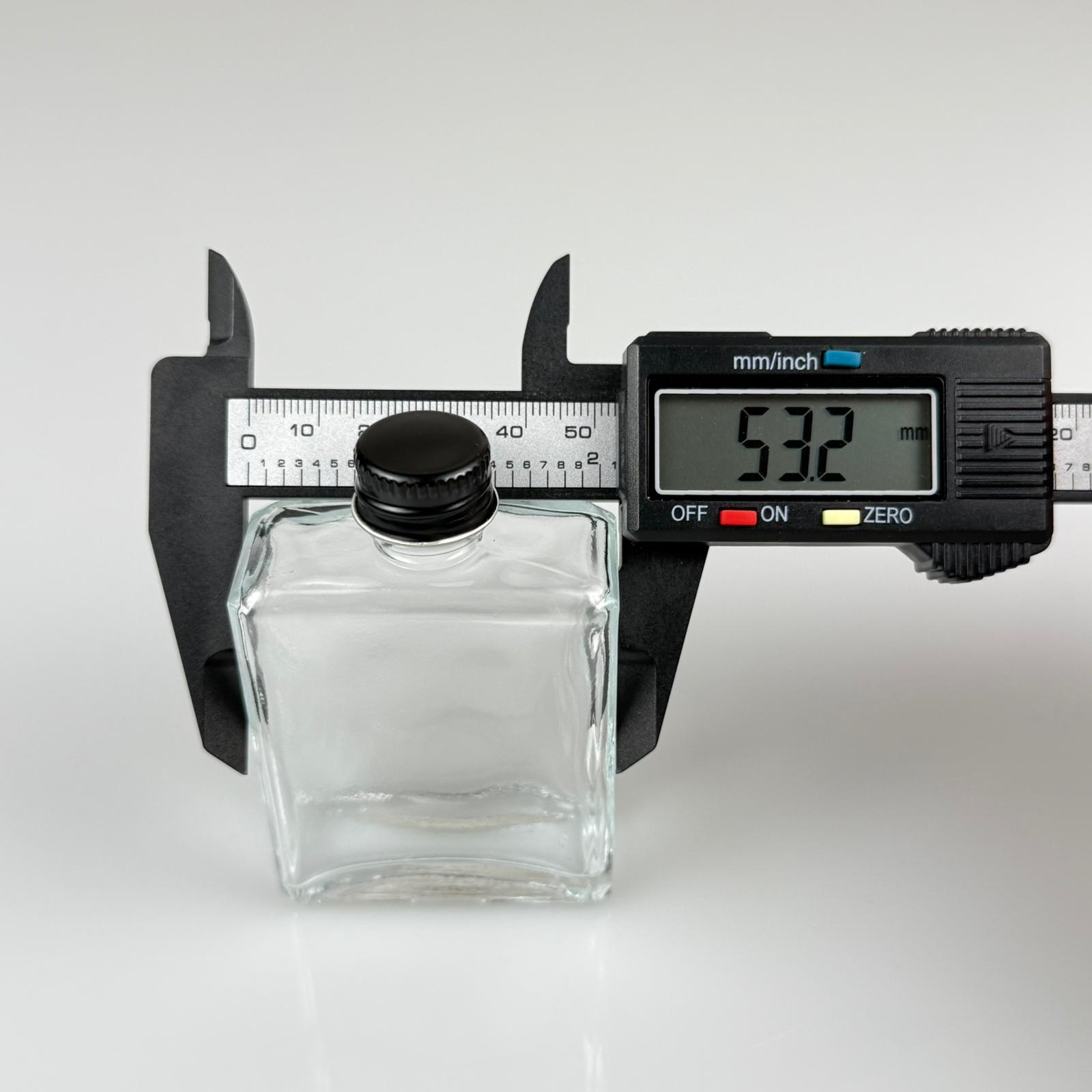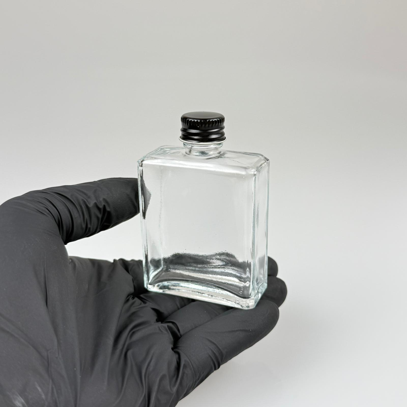 40 CC YASSI DİKDÖRTGEN KÖŞELİ KISA CAM ŞİŞE - SİYAH METAL KAPAKLI KOLONYA TIPALI - 40 ML PRESTİJLİ ŞİŞE