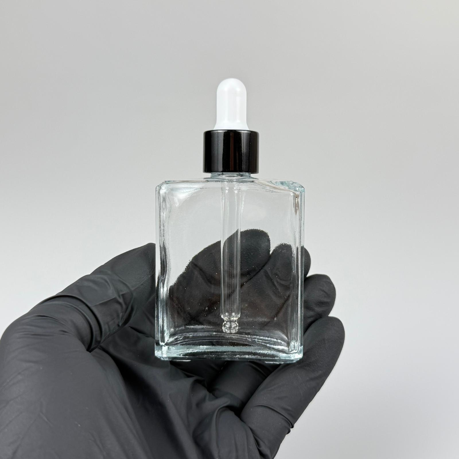 40 CC YASSI DİKDÖRTGEN KÖŞELİ KISA PRESTİJLİ CAM DAMLALIKLI ŞİŞE - BEYAZ EMZİK - SİYAH METALİK KAPAK - 40 ML CAM DAMLALIKLI ŞİŞE - DAMLALIKLI BOŞ ŞİŞE