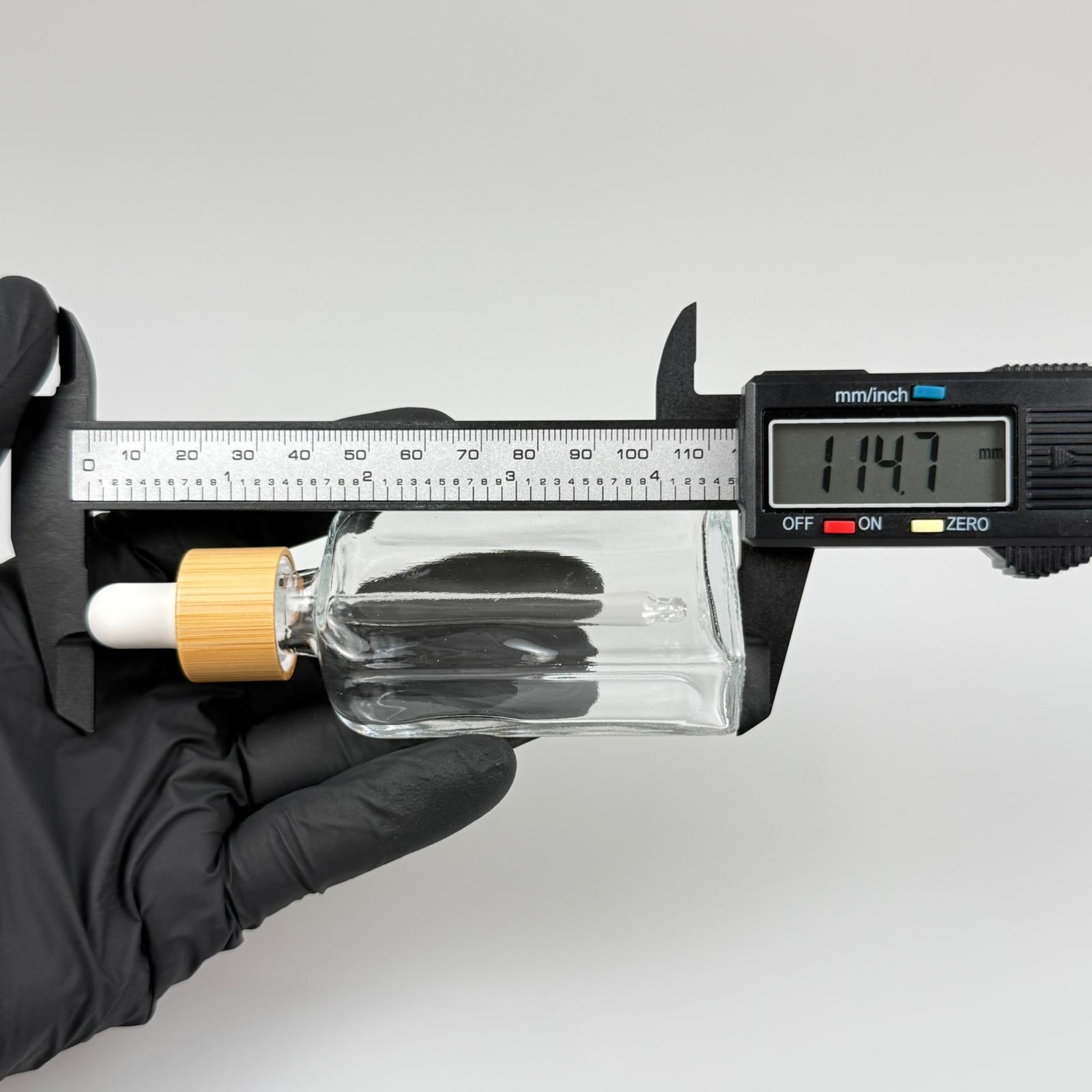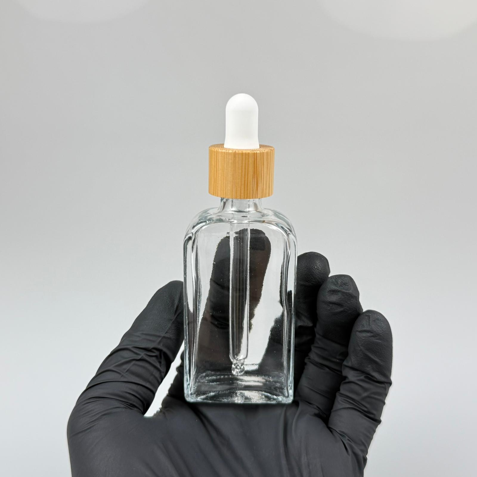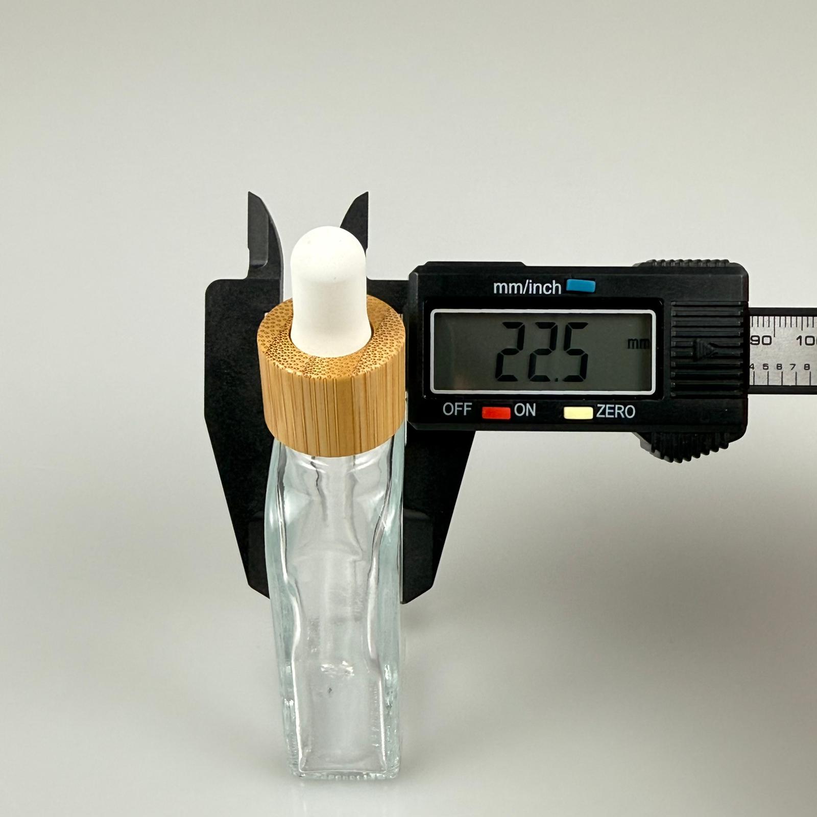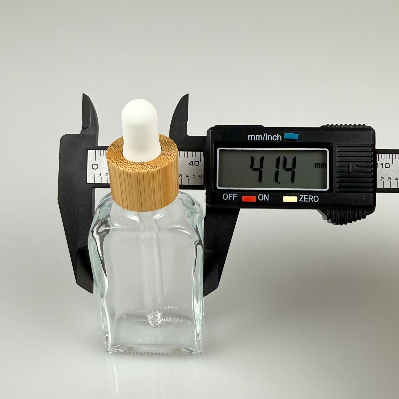 40 CC YASSI DİKDÖRTGEN PRESTİJLİ CAM DAMLALIKLI ŞİŞE - BEYAZ EMZİK - AHŞAP BAMBU KAPAK - 40 ML CAM DAMLALIKLI ŞİŞE - DAMLALIKLI BOŞ ŞİŞE