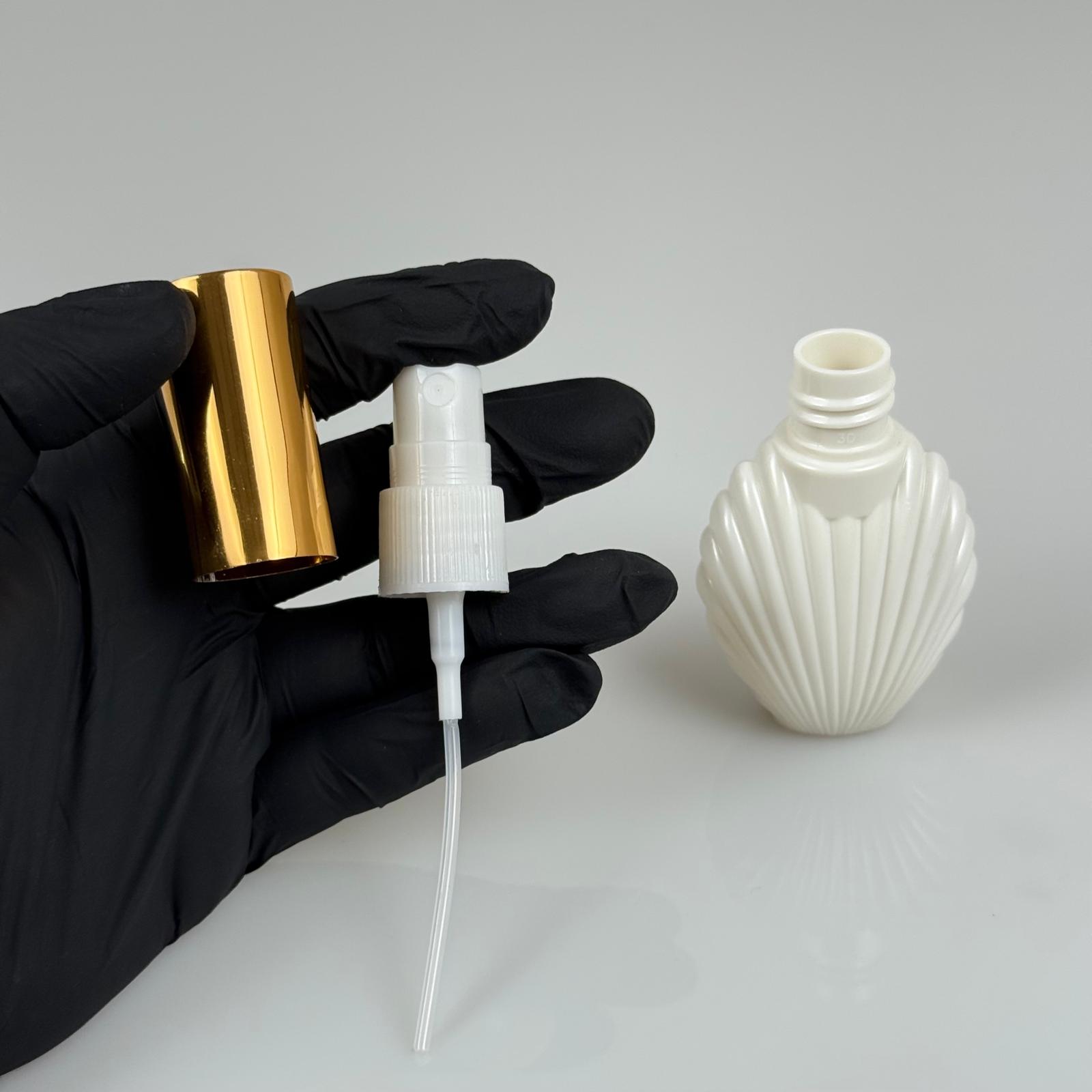 40 ML PET KOLONYA, PARFÜM VB ŞİŞELERİ - METAL ALÜMİNYUM GOLD KAPAK + VİDALI SPREY + 40 CC İSTİRİDYE BEYAZ ŞİŞE SET TAKIM