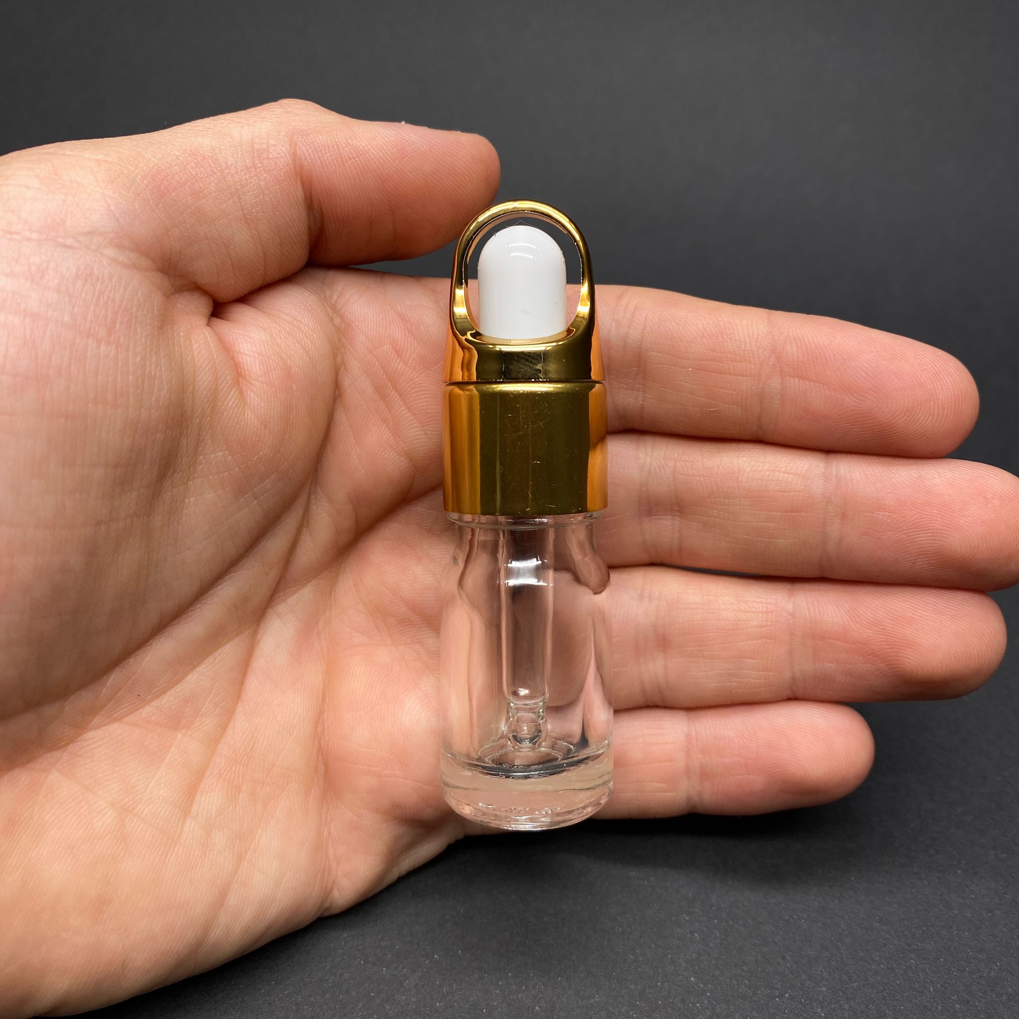 5 CC ŞEFFAF CAM DAMLALIKLI ŞİŞE - BEYAZ EMZİK - GOLD FLOWER SEPET MODEL METALİK KAPAK - 5 ML CAM DAMLALIKLI ŞİŞE