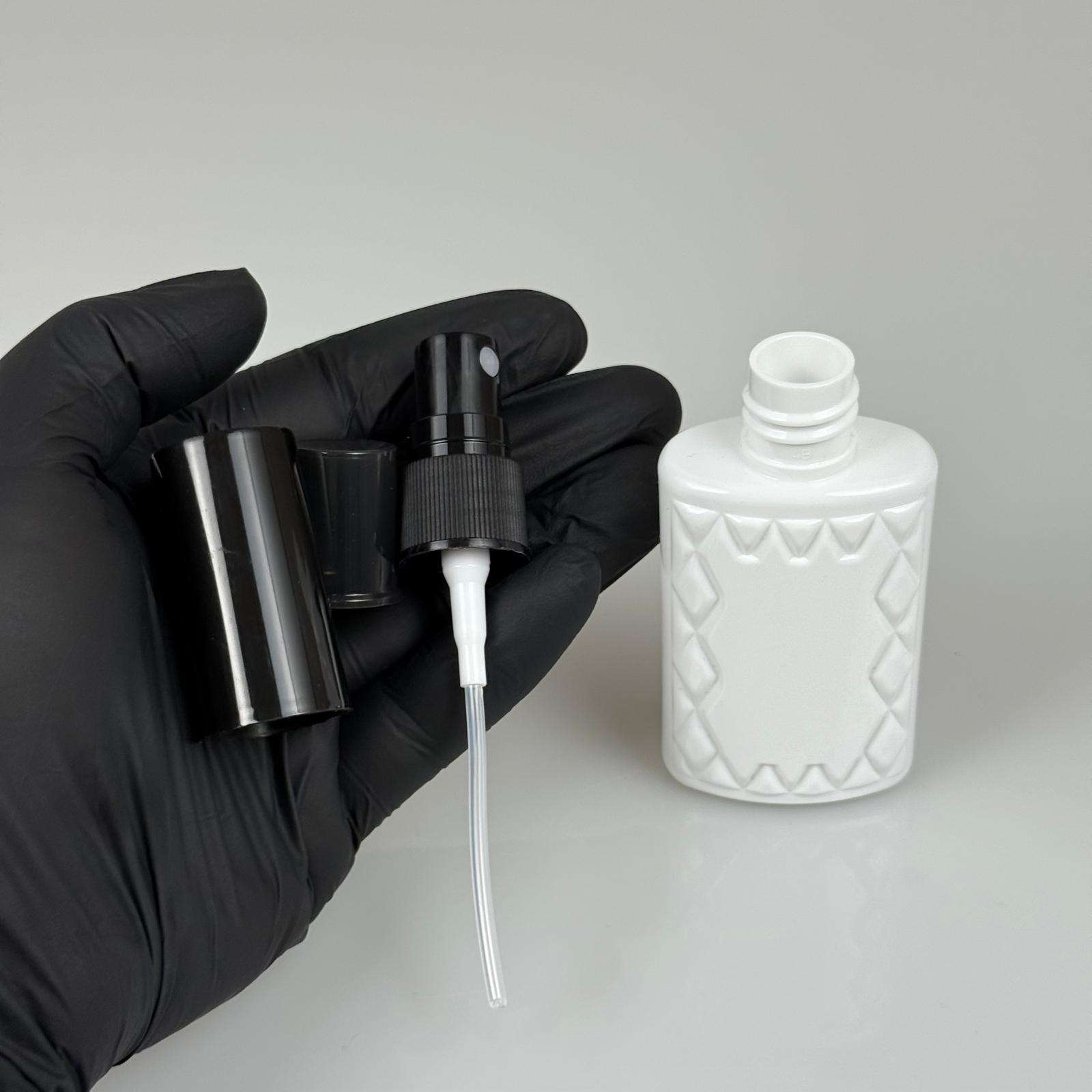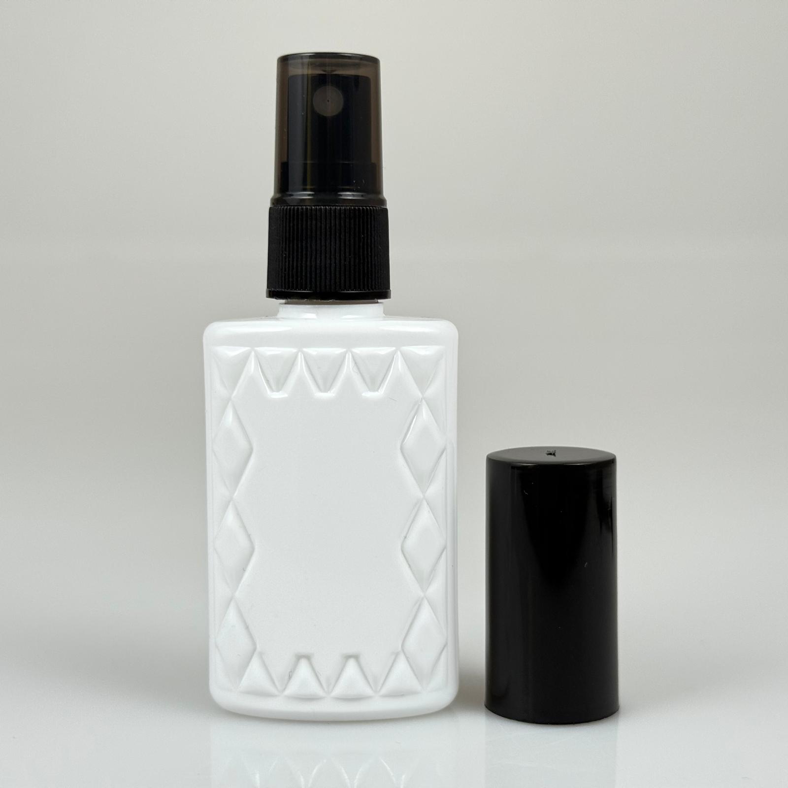 50 CC BEYAZ PET KÖŞELİ PARFÜM ŞİŞESİ - SİYAH SPREYLİ - SİYAH KORUMA KAPAKLI - 50 ML PLASTİK PARFÜM - KOLONYA ŞİŞESİ