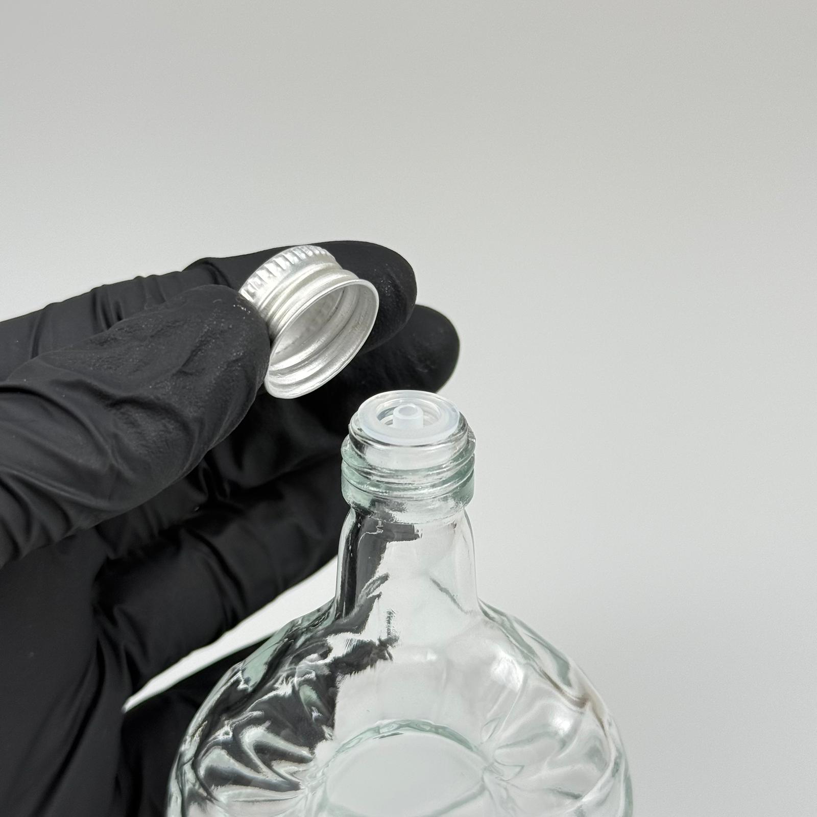 50 CC BOĞAZLI YASSI CAM ŞİŞE - GÜMÜŞ METAL KAPAKLI KOLONYA TIPALI - 50 ML PRESTİJLİ ŞİŞE