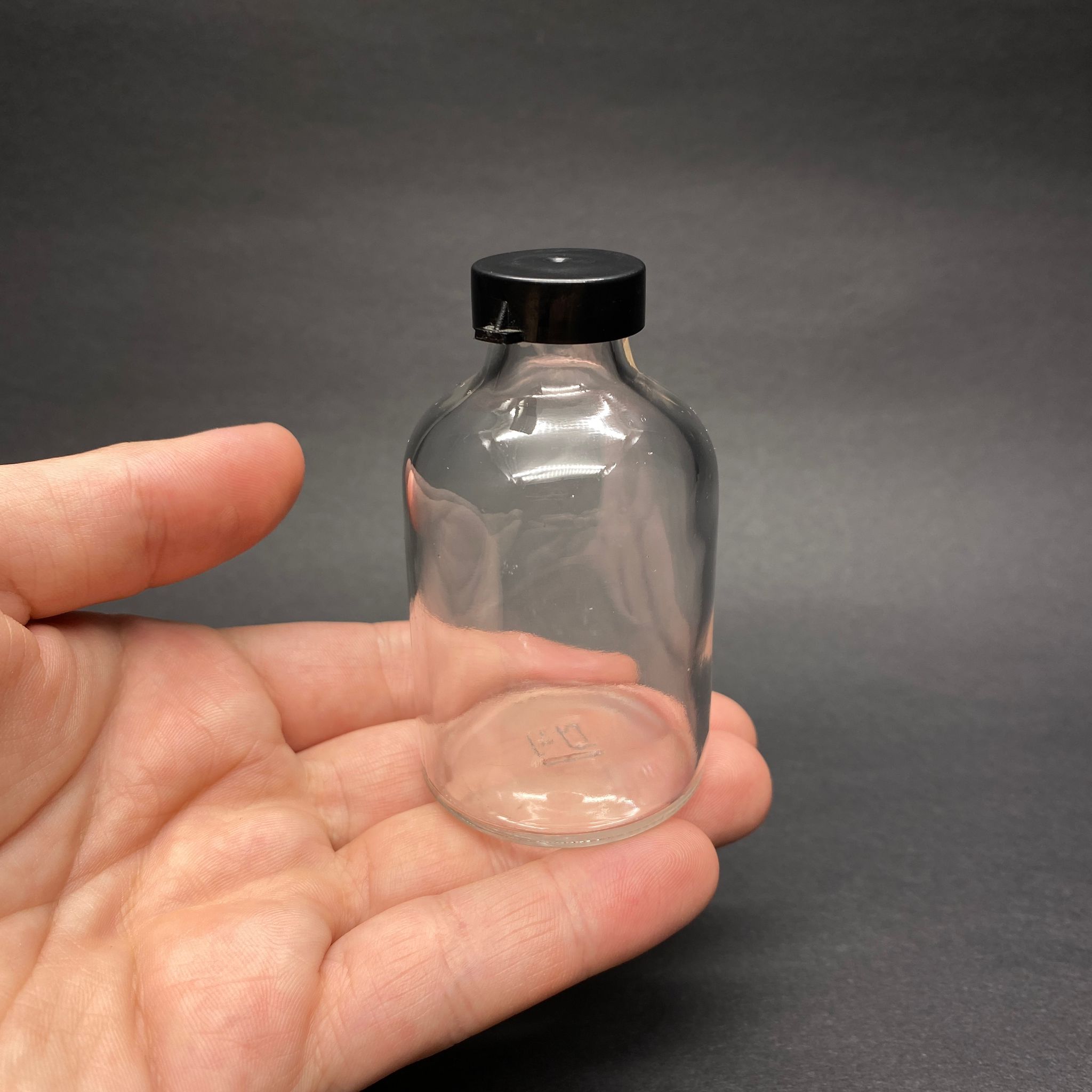 50 CC FLAKON PENİSİLİN ŞİŞESİ - SİYAH KAPAKLI - 50 ML KAPAKLI CAM ŞİŞE - SIZDIRMAZ - ELLE KAPANIR - İTHAL