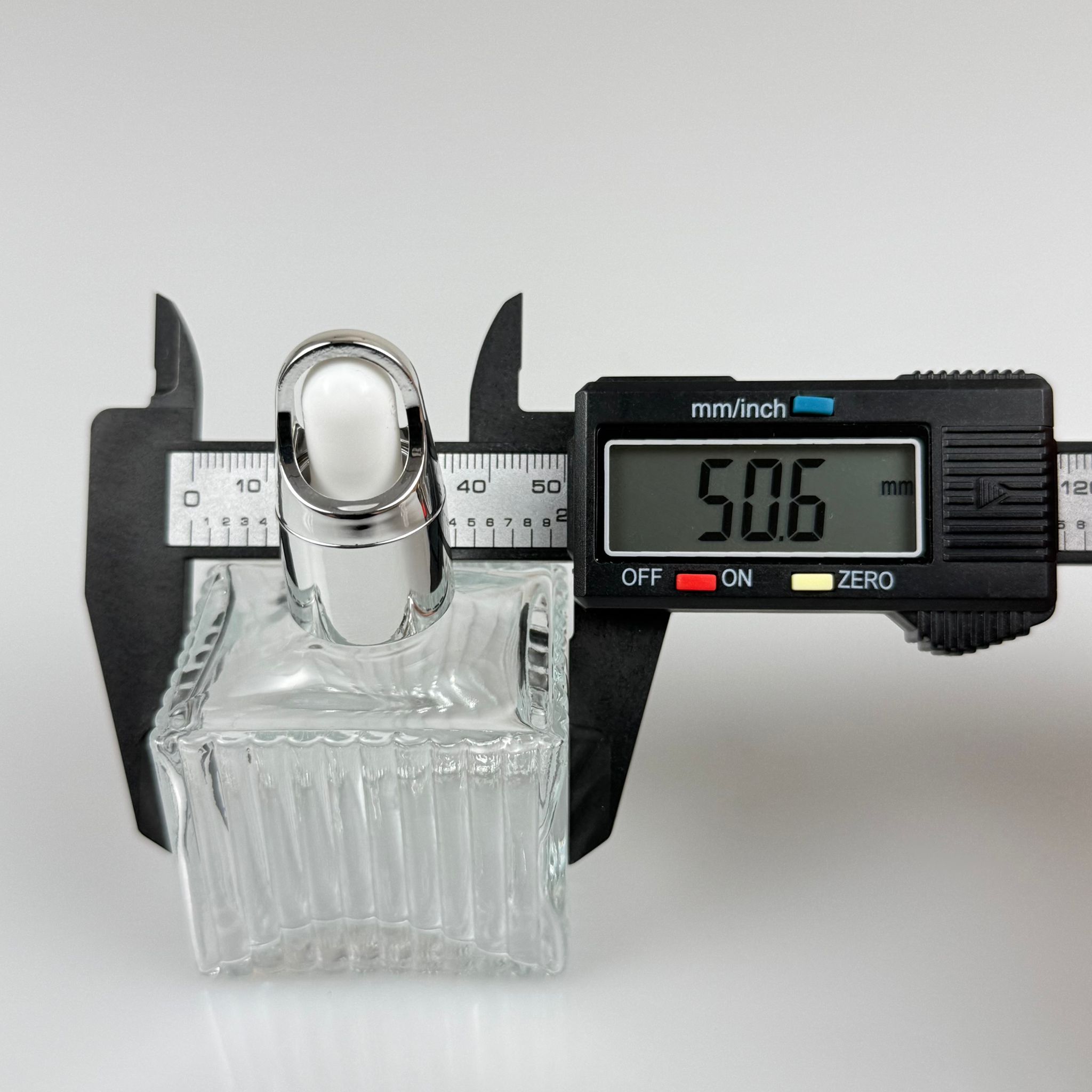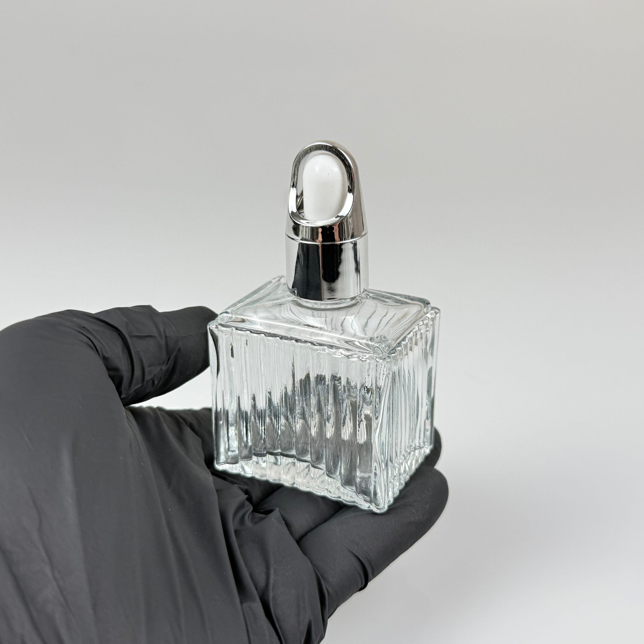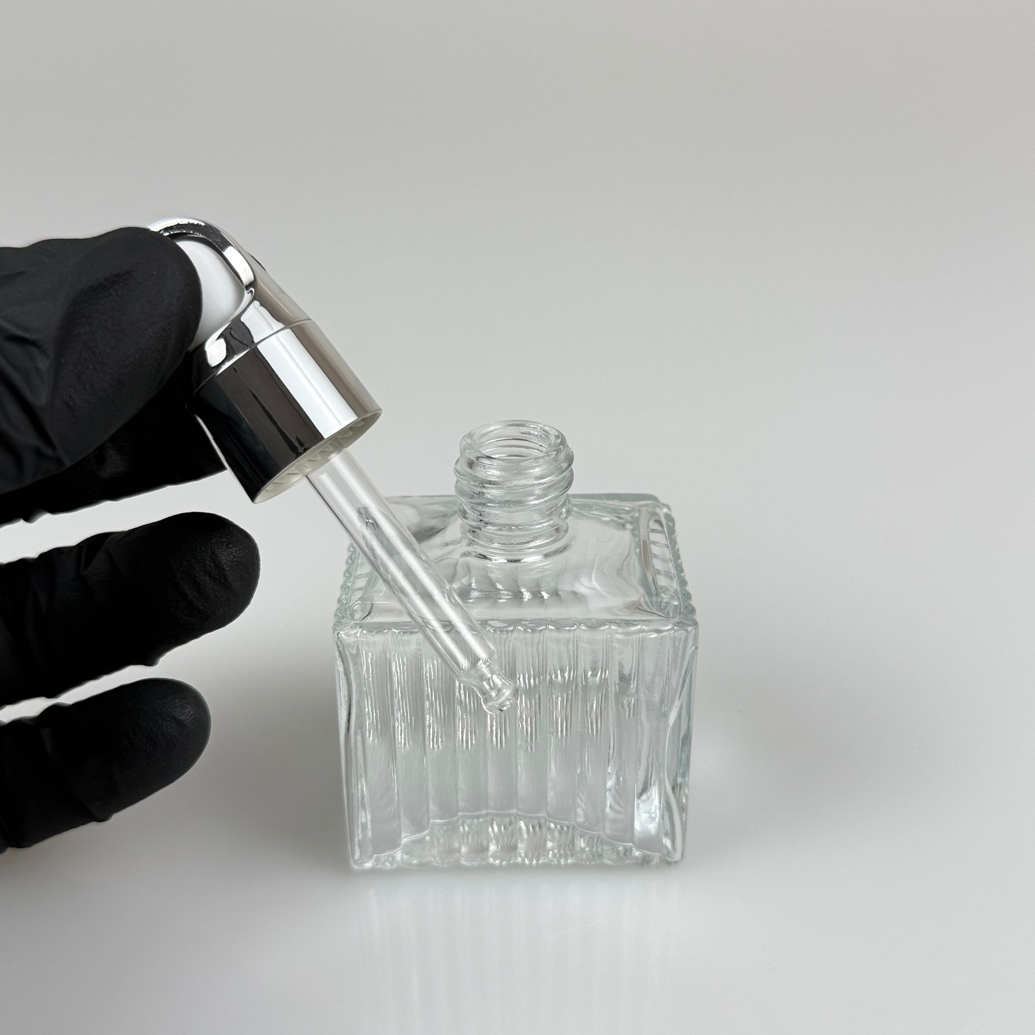 50 CC KÖŞELİ DESENLİ ÇİZGİLİ PRESTİJLİ CAM DAMLALIKLI ŞİŞE - BEYAZ EMZİK - GÜMÜŞ FLOWER SEPET MODEL METALİK KAPAK - 50 ML CAM DAMLALIKLI ŞİŞE - DAMLALIKLI BOŞ ŞİŞE