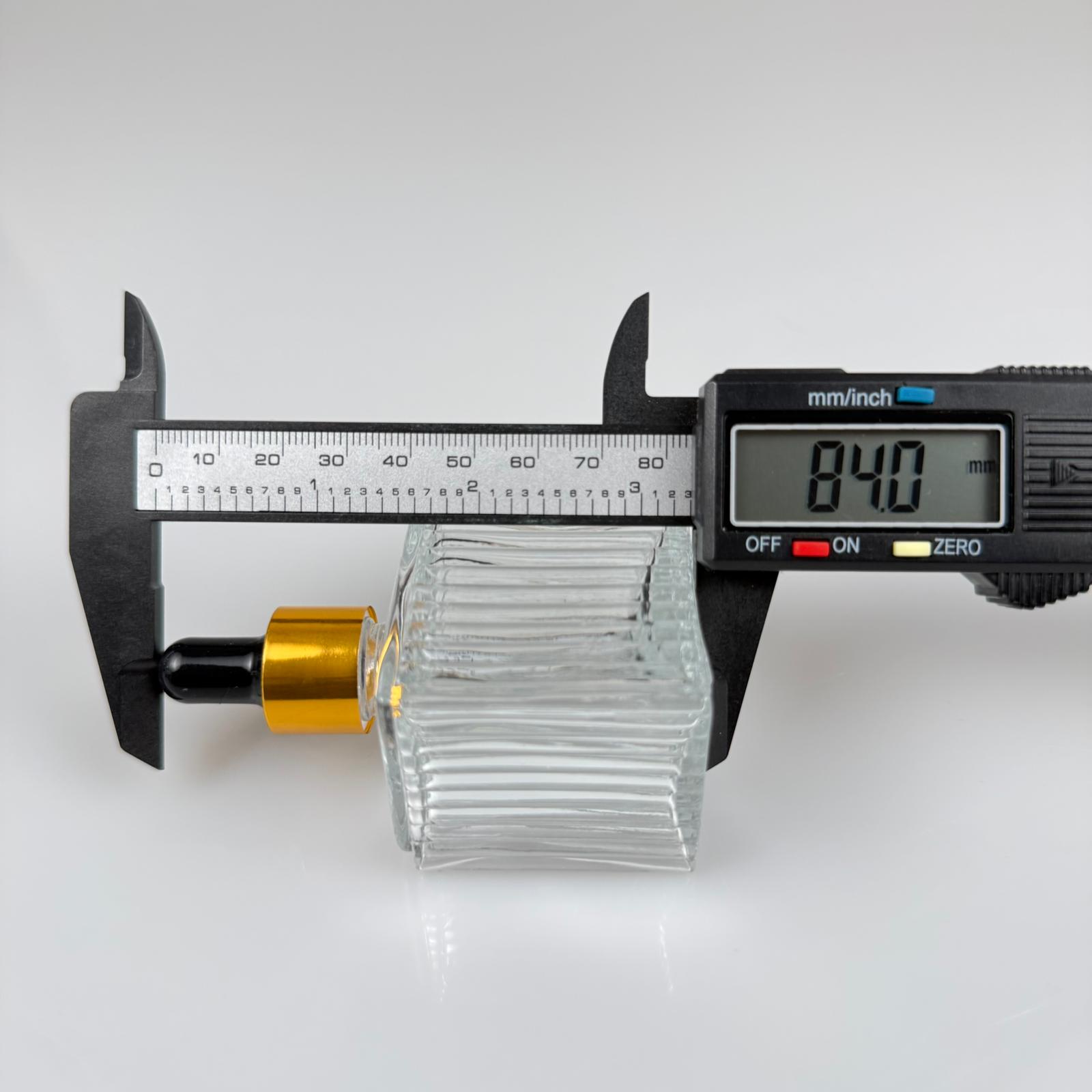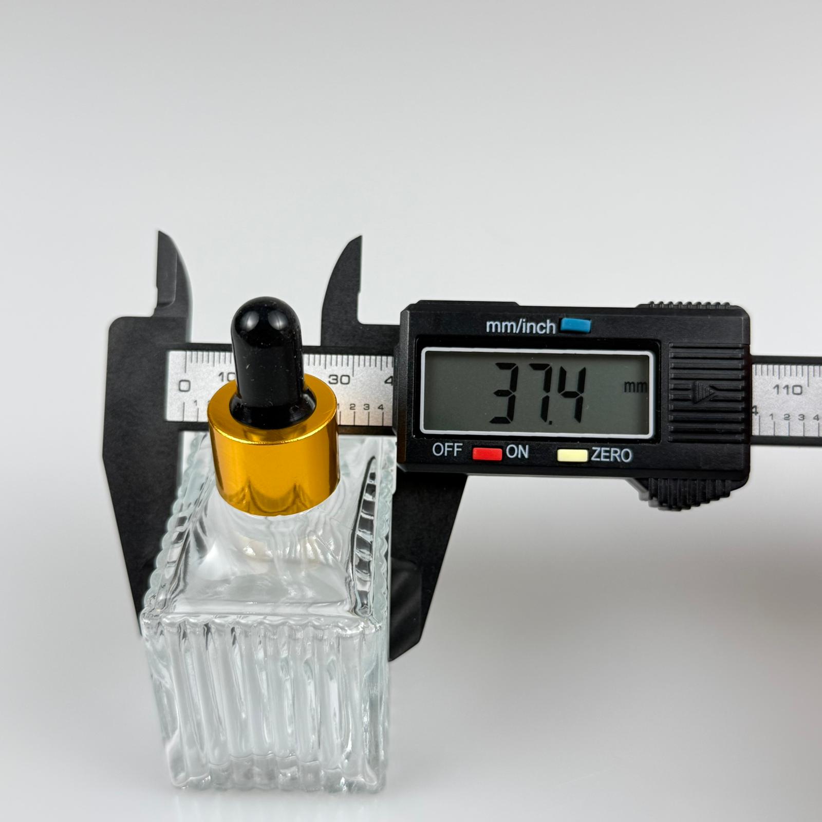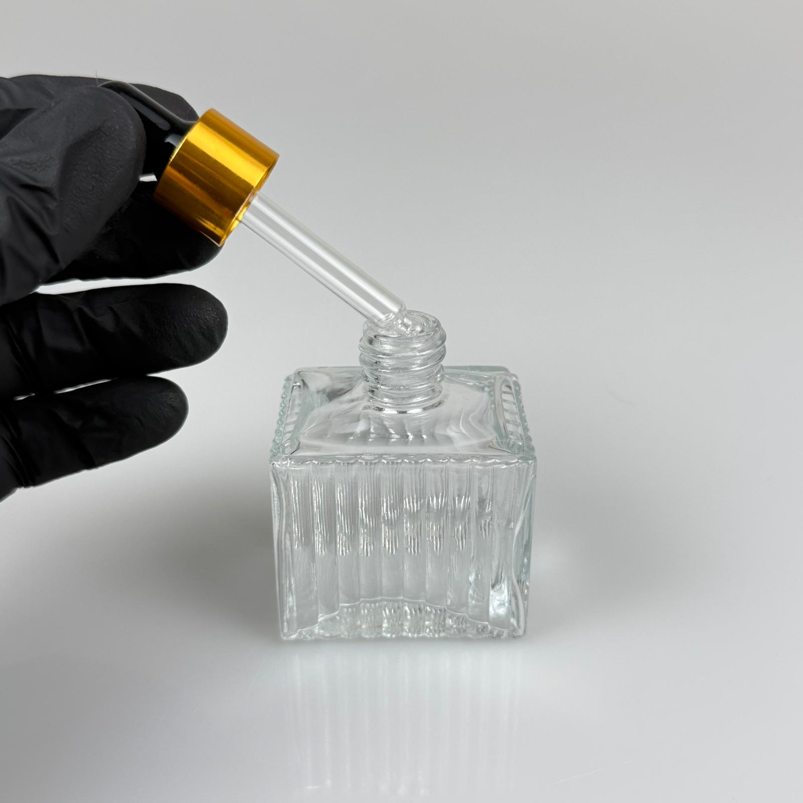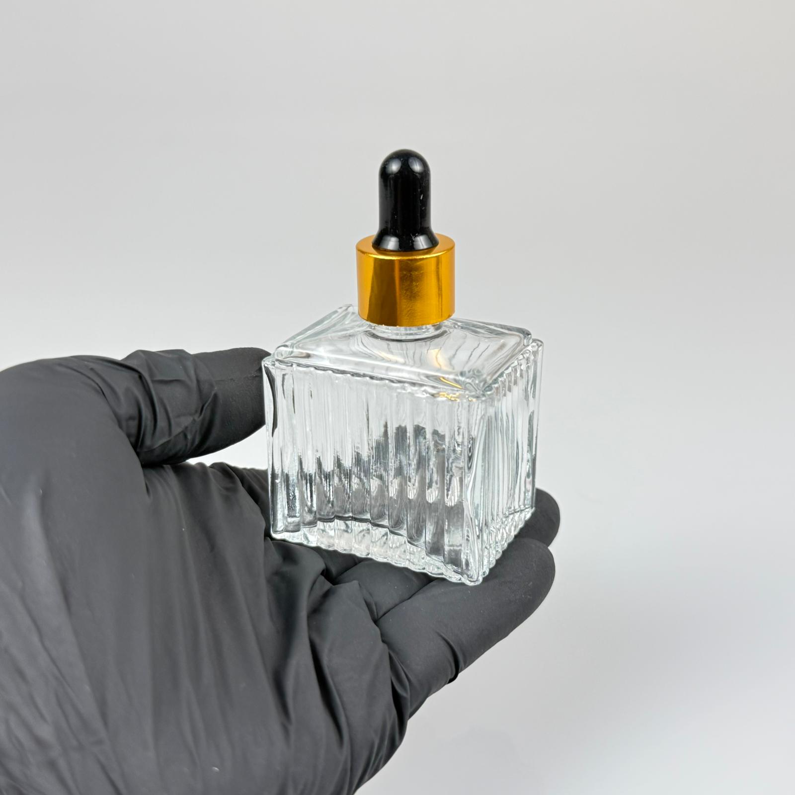 50 CC KÖŞELİ DESENLİ ÇİZGİLİ PRESTİJLİ CAM DAMLALIKLI ŞİŞE - SİYAH EMZİK - GOLD METALİK KAPAK - 50 ML CAM DAMLALIKLI ŞİŞE - DAMLALIKLI BOŞ ŞİŞE