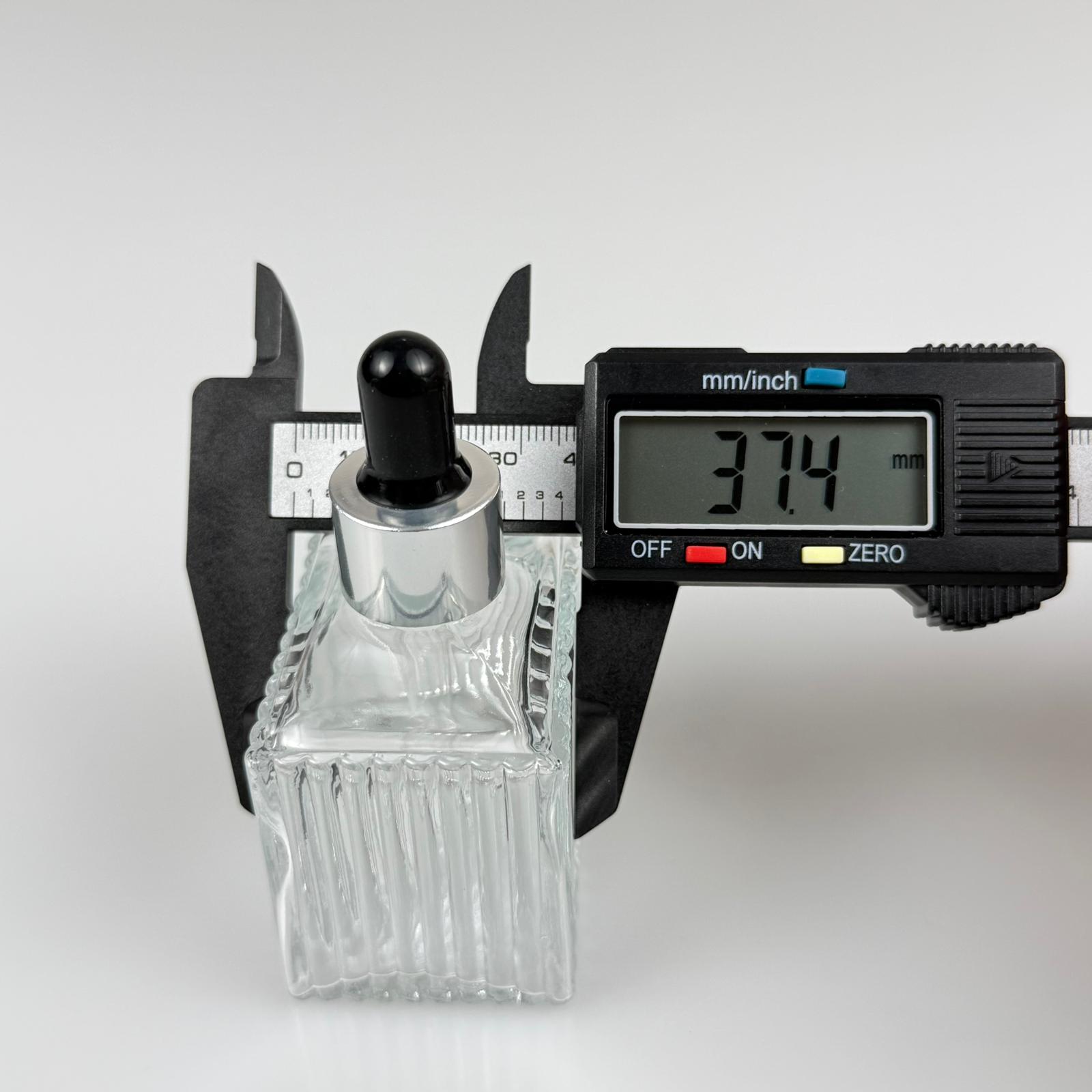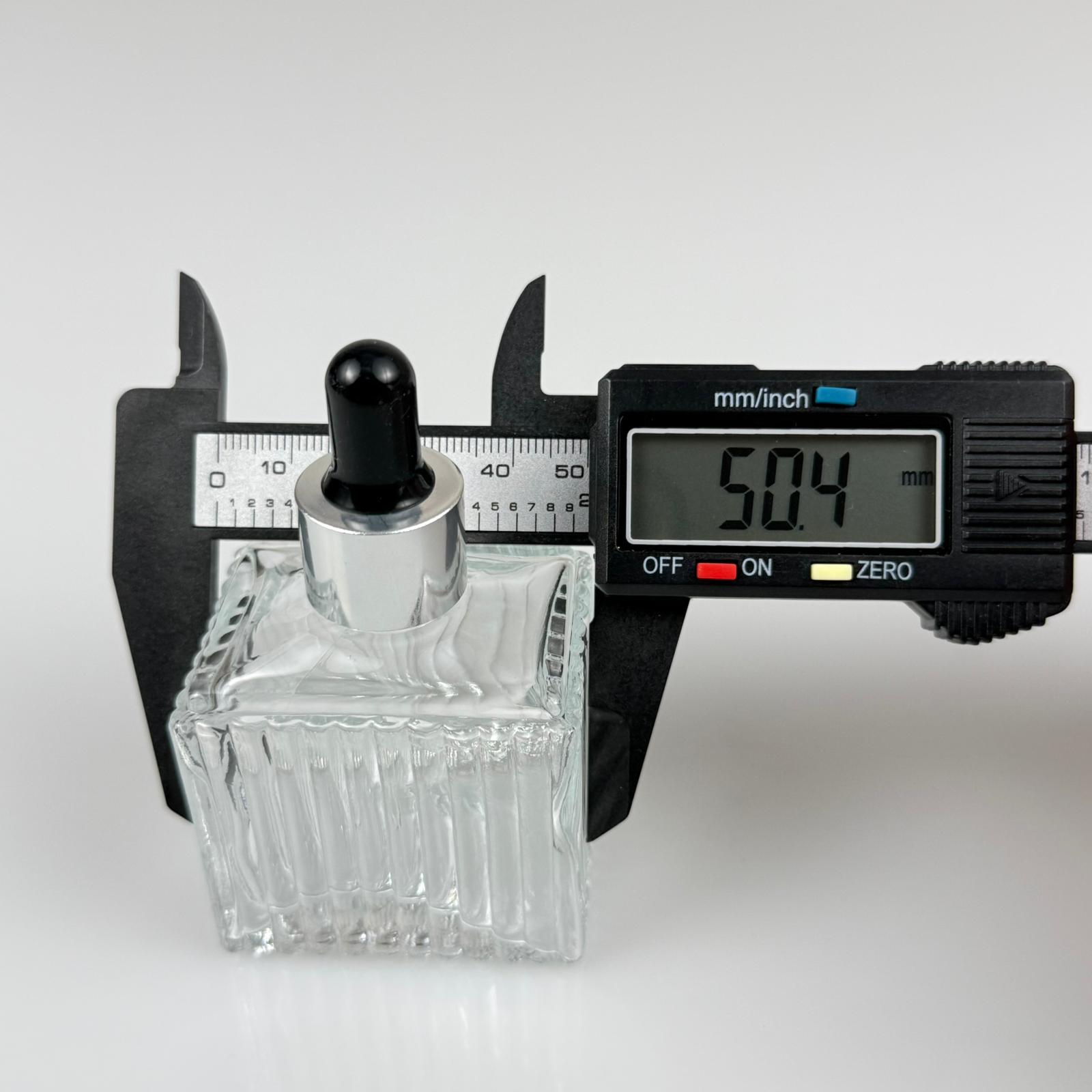 50 CC KÖŞELİ DESENLİ ÇİZGİLİ PRESTİJLİ CAM DAMLALIKLI ŞİŞE - SİYAH EMZİK - GÜMÜŞ METALİK KAPAK - 50 ML CAM DAMLALIKLI ŞİŞE - DAMLALIKLI BOŞ ŞİŞE