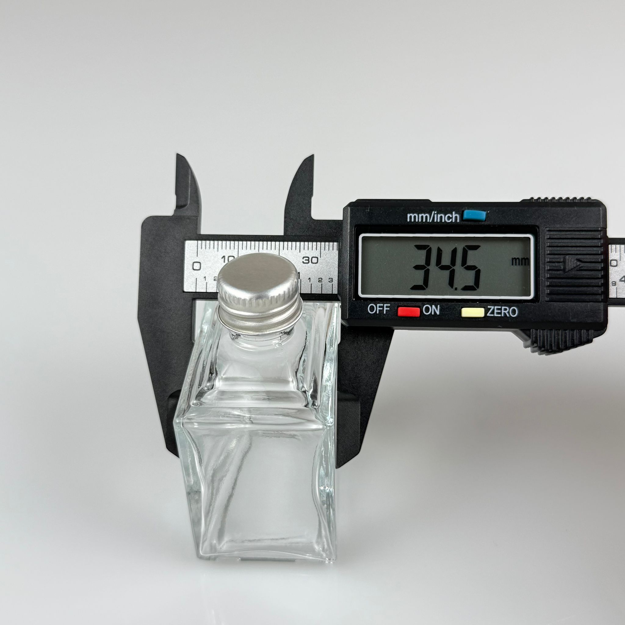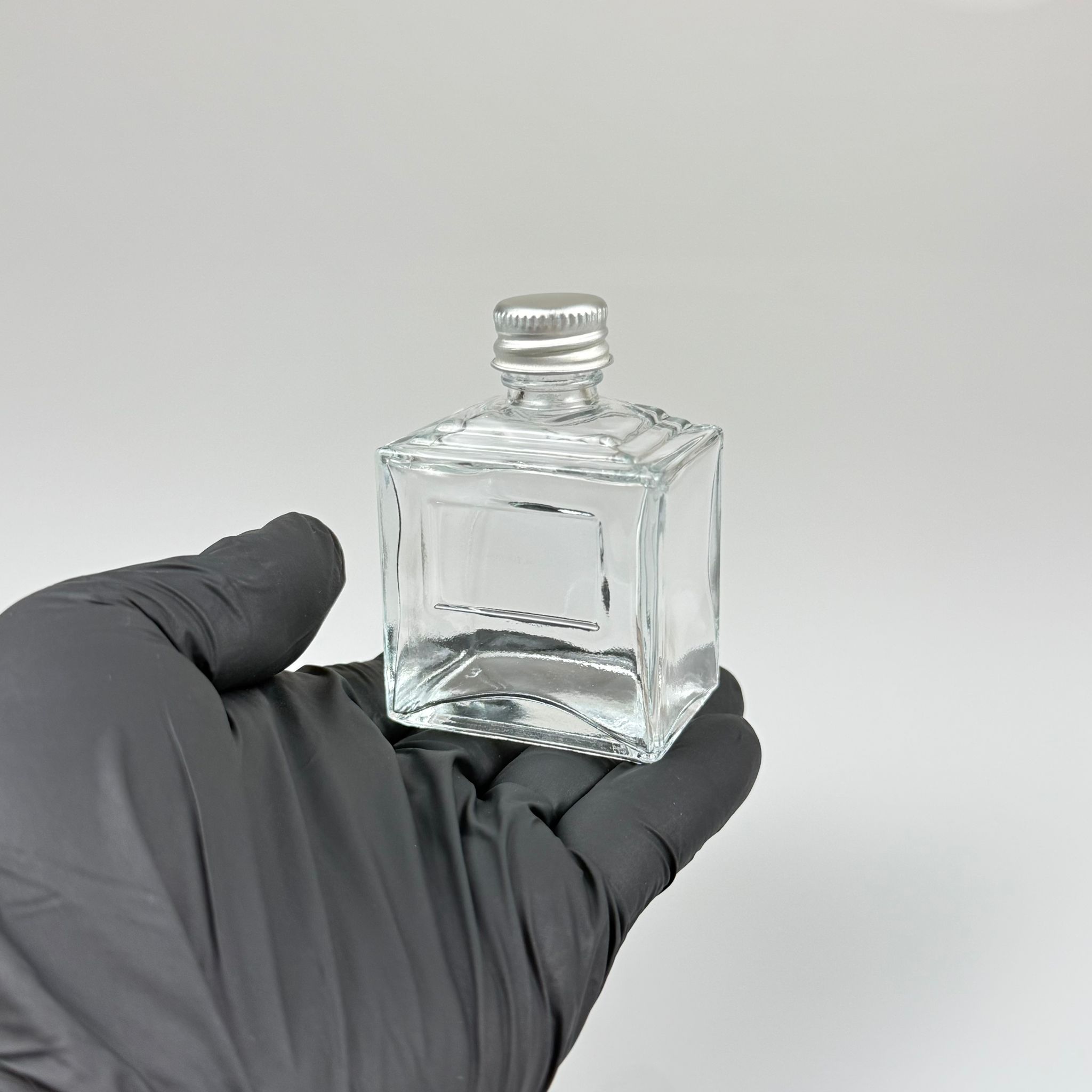 50 CC KÖŞELİ PRİZMA CAM ŞİŞE - GÜMÜŞ METAL KAPAKLI - 50 ML PRESTİJLİ ŞİŞE