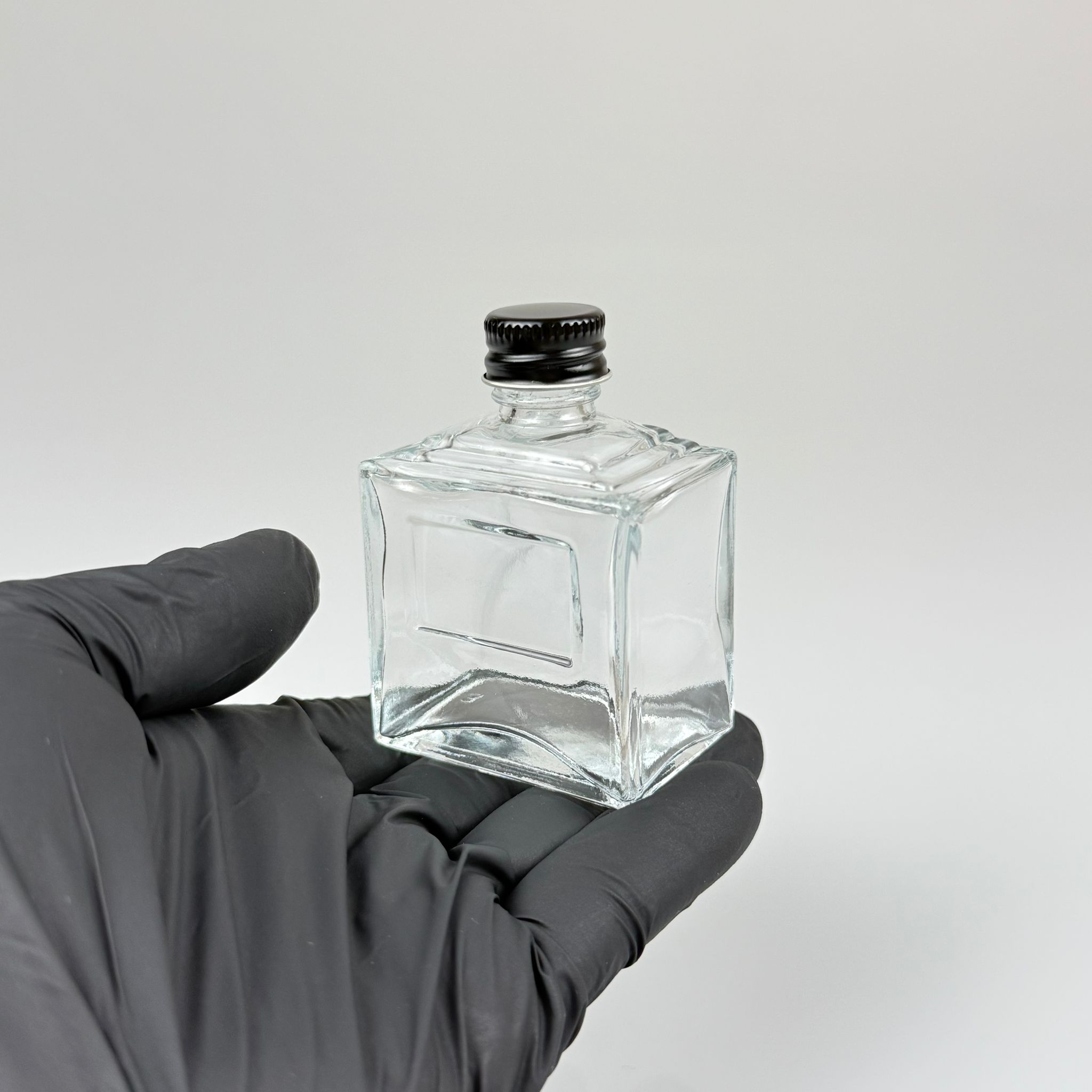 50 CC KÖŞELİ PRİZMA CAM ŞİŞE - SİYAH METAL KAPAKLI - 50 ML PRESTİJLİ ŞİŞE