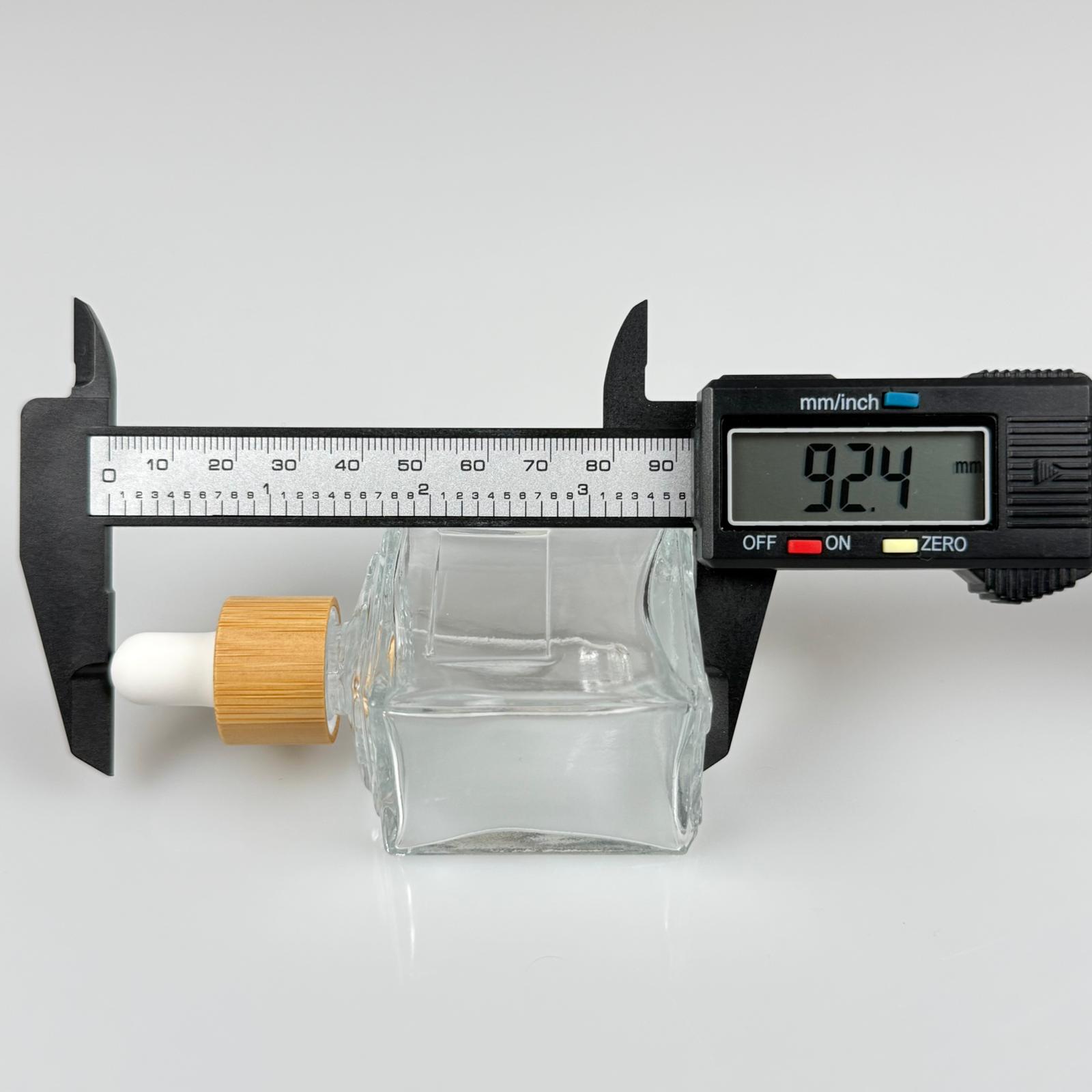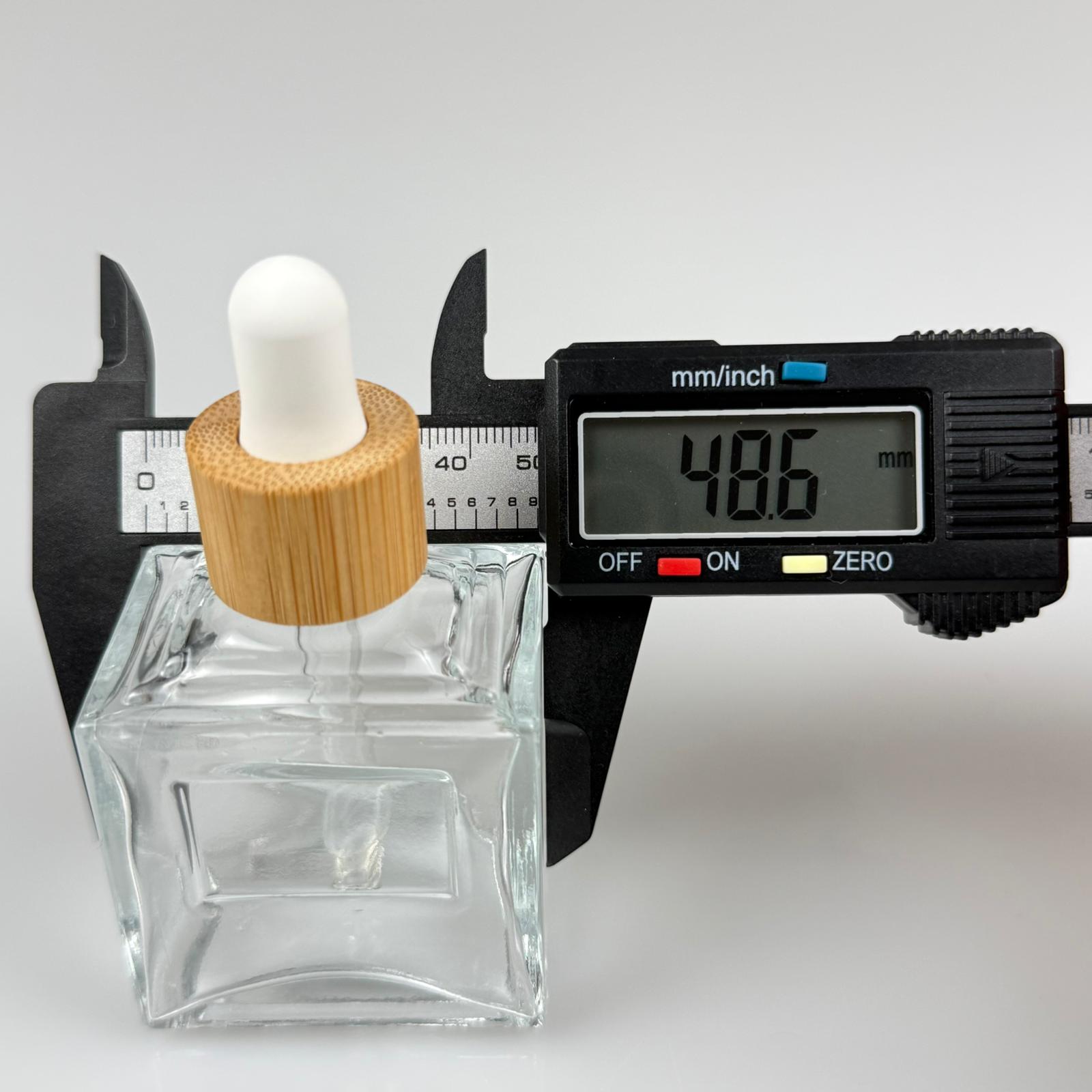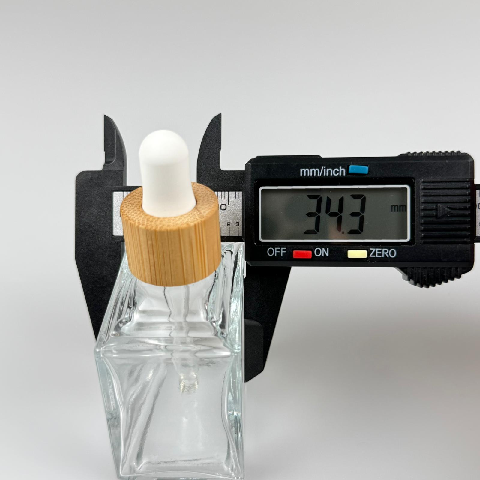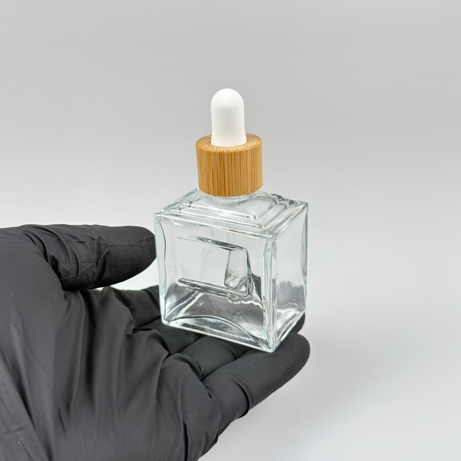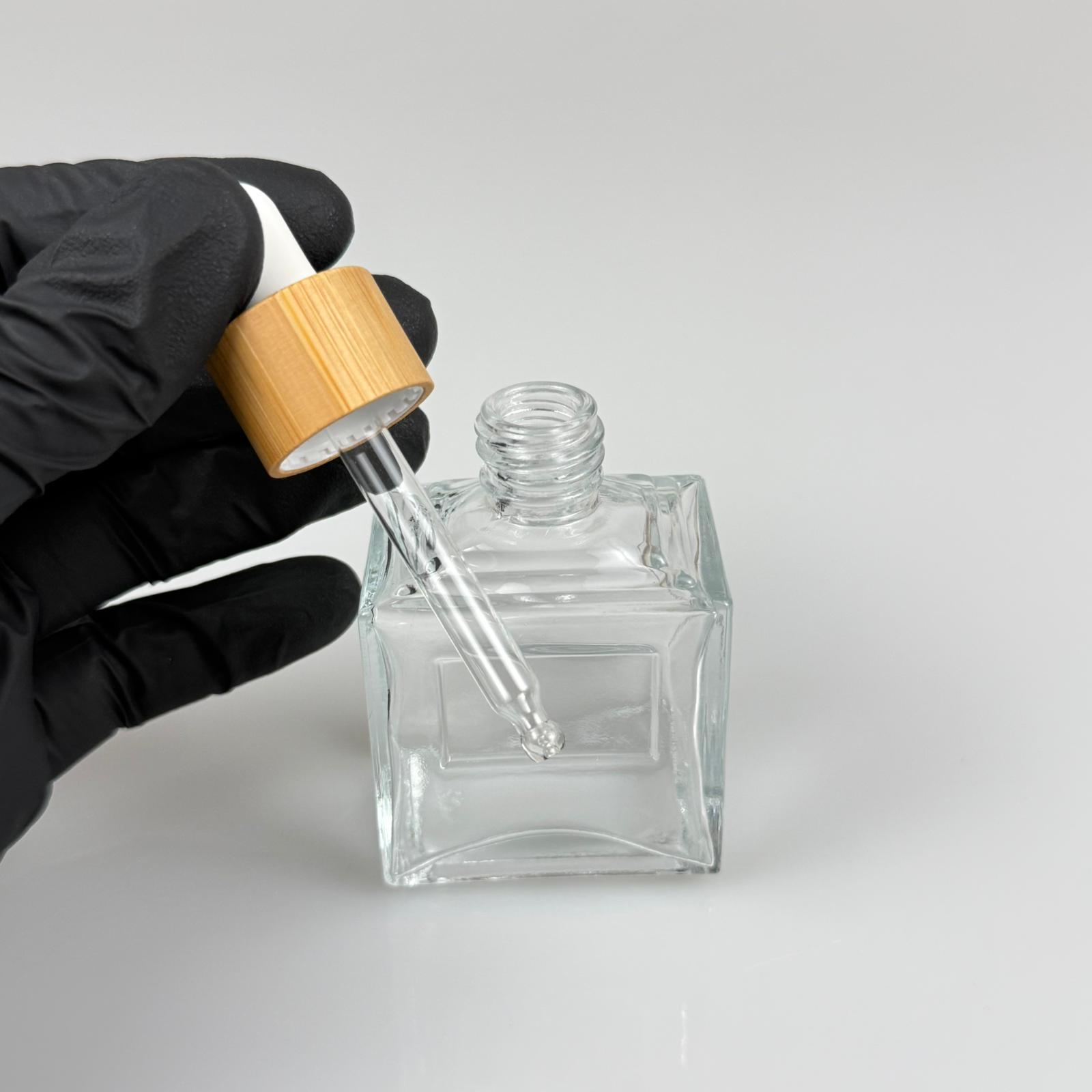 50 CC KÖŞELİ PRİZMA PRESTİJLİ CAM DAMLALIKLI ŞİŞE - BEYAZ EMZİK - AHŞAP BAMBU KAPAK - 50 ML CAM DAMLALIKLI ŞİŞE - DAMLALIKLI BOŞ ŞİŞE