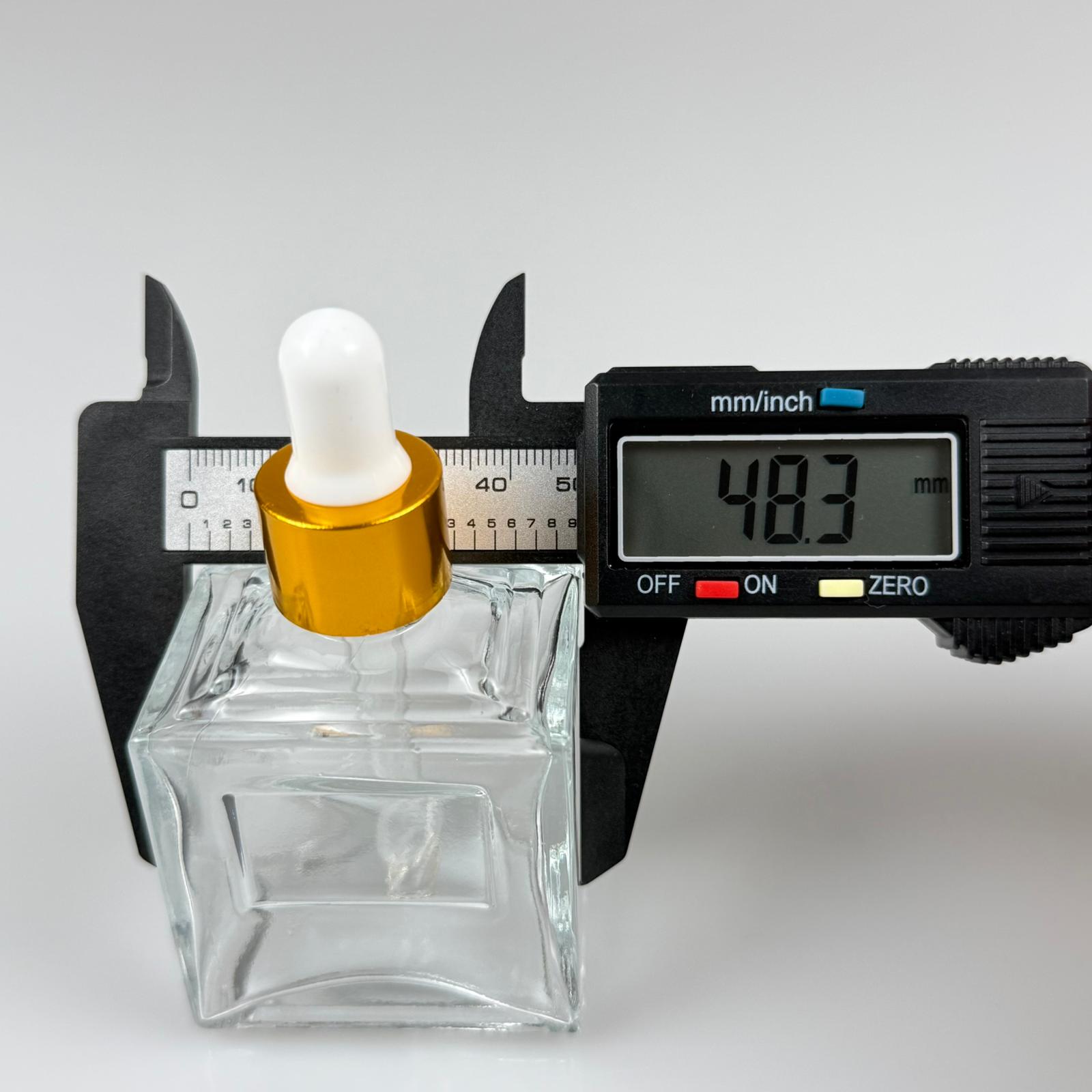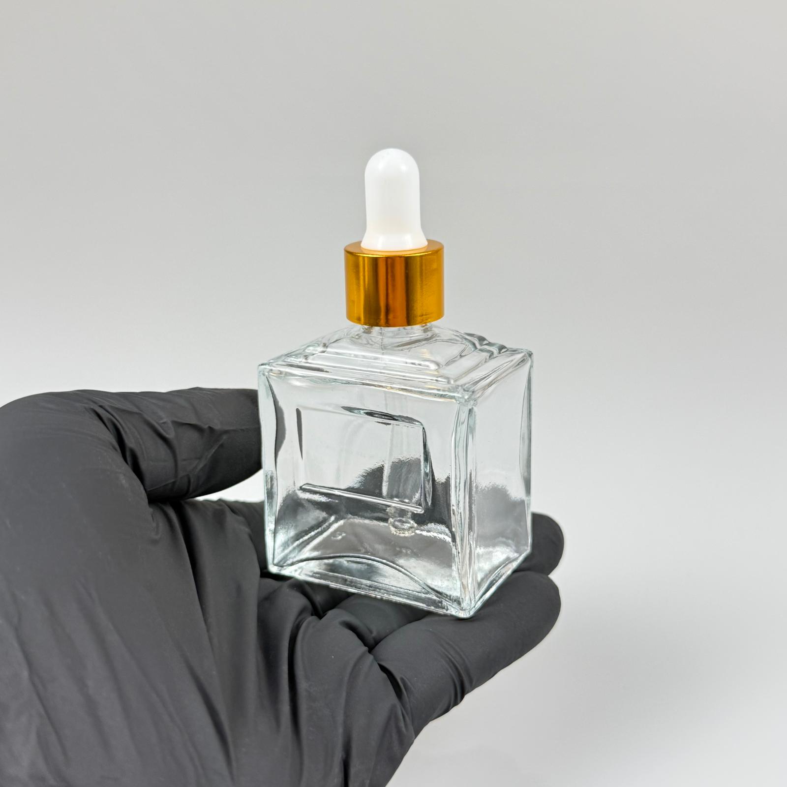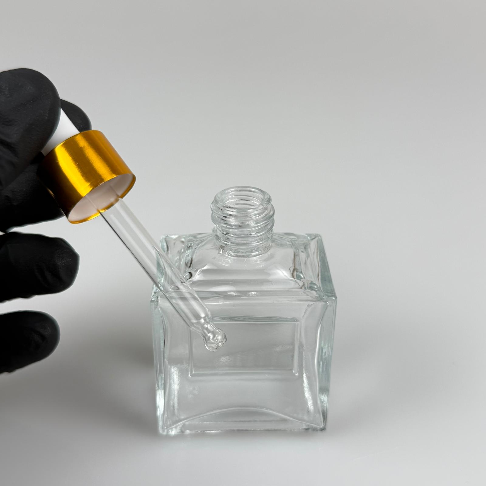 50 CC KÖŞELİ PRİZMA PRESTİJLİ CAM DAMLALIKLI ŞİŞE - BEYAZ EMZİK - GOLD METALİK KAPAK - 50 ML CAM DAMLALIKLI ŞİŞE - DAMLALIKLI BOŞ ŞİŞE