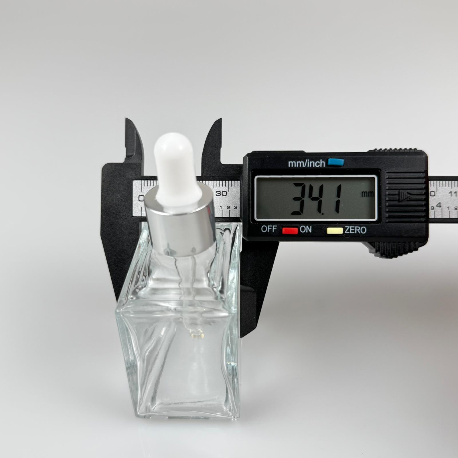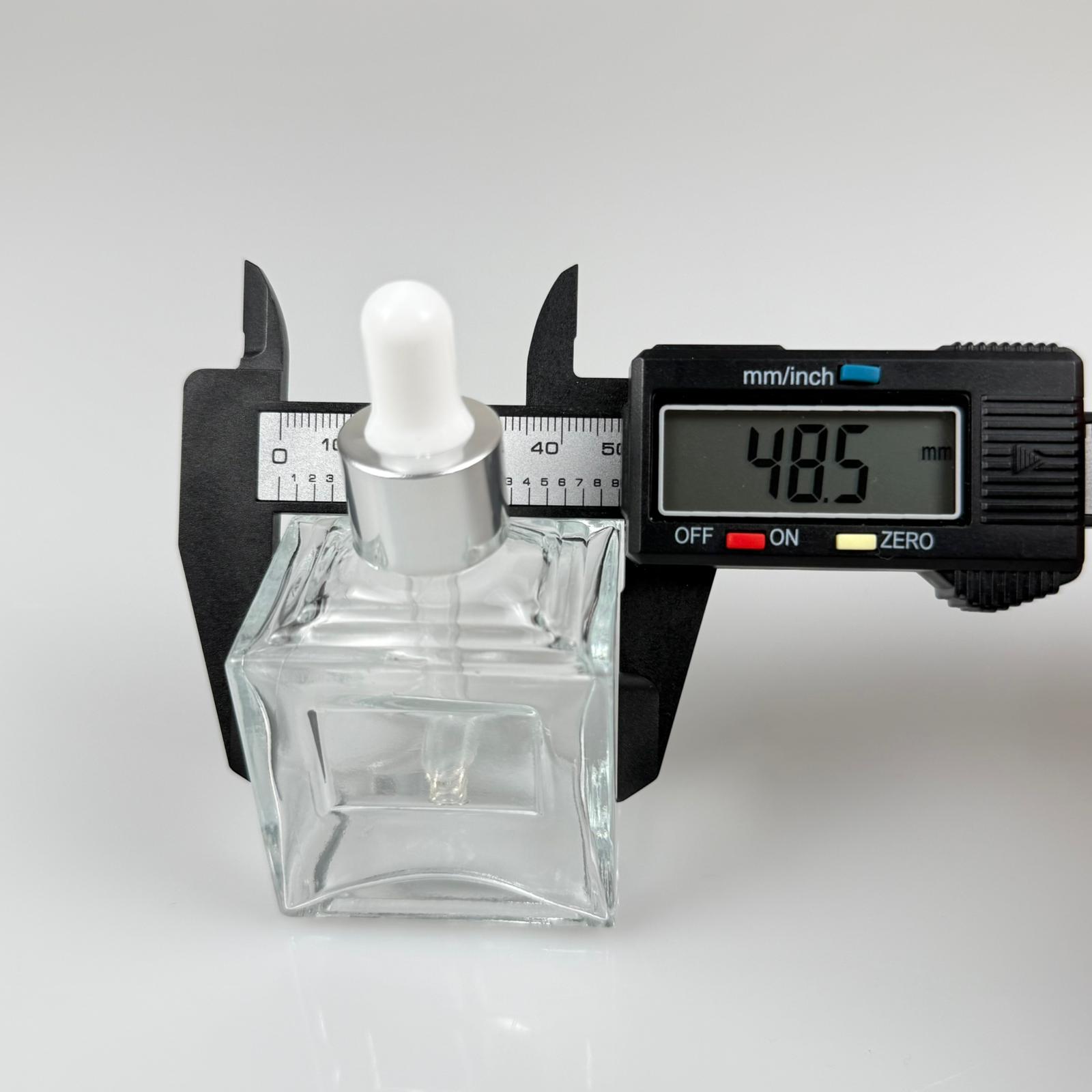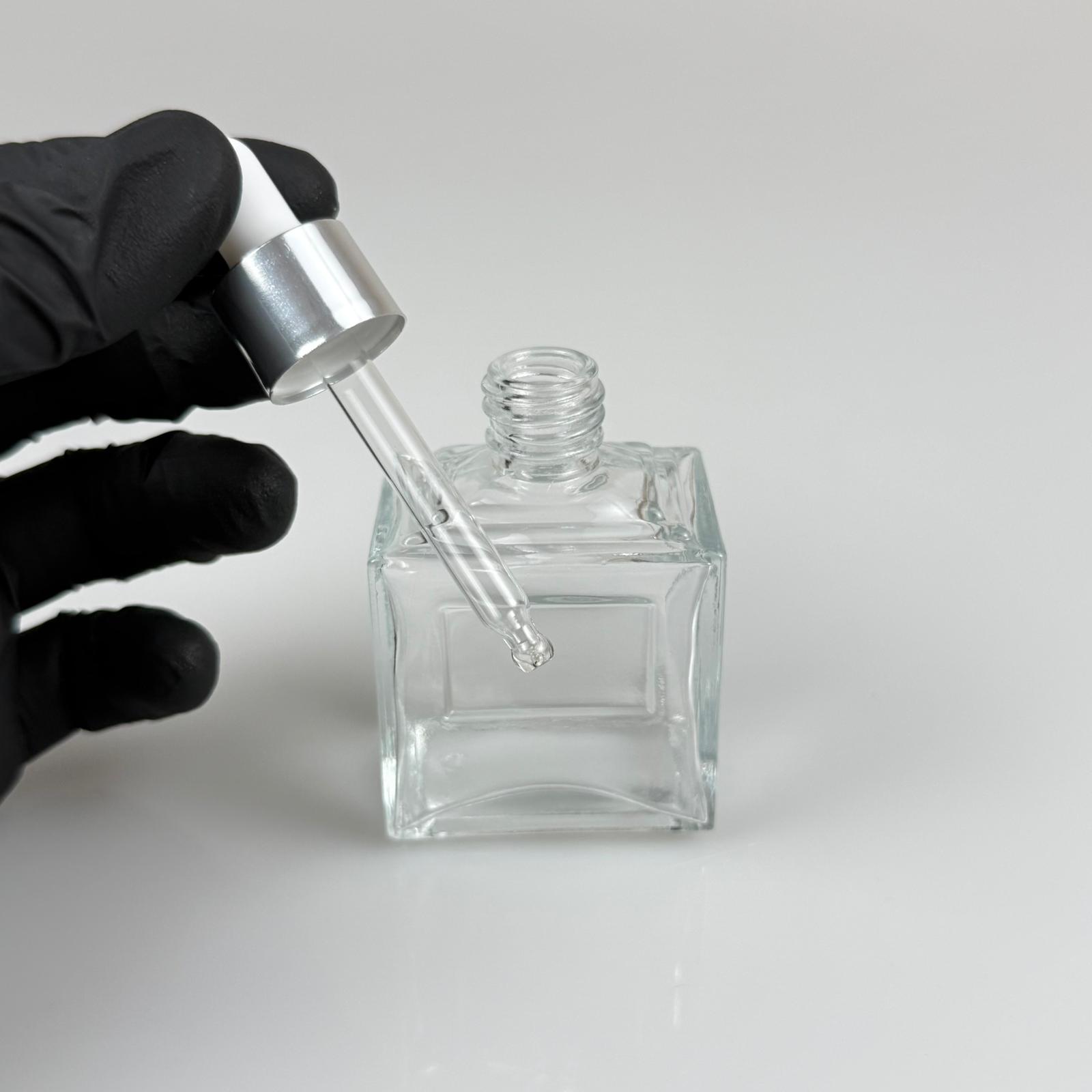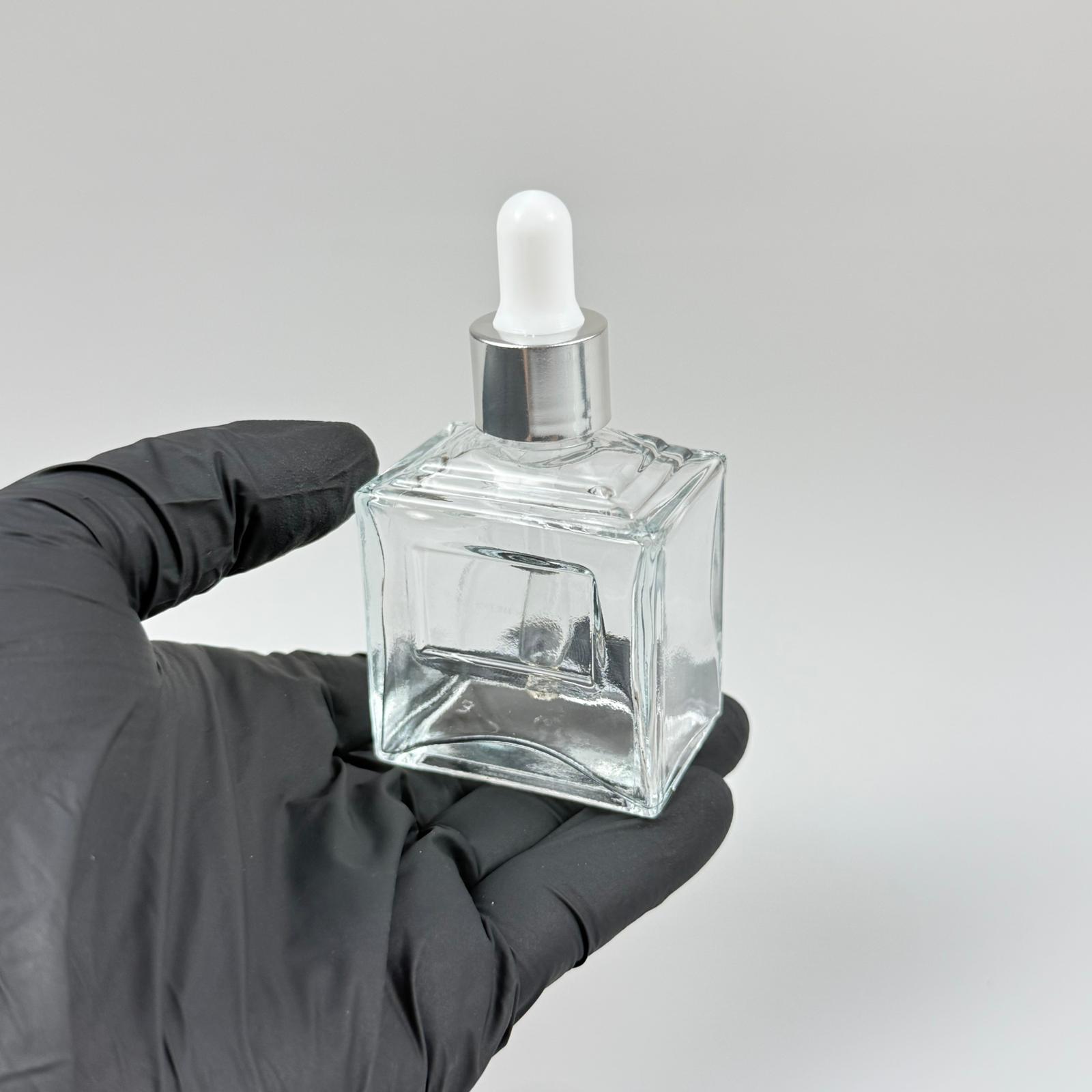 50 CC KÖŞELİ PRİZMA PRESTİJLİ CAM DAMLALIKLI ŞİŞE - BEYAZ EMZİK - GÜMÜŞ METALİK KAPAK - 50 ML CAM DAMLALIKLI ŞİŞE - DAMLALIKLI BOŞ ŞİŞE