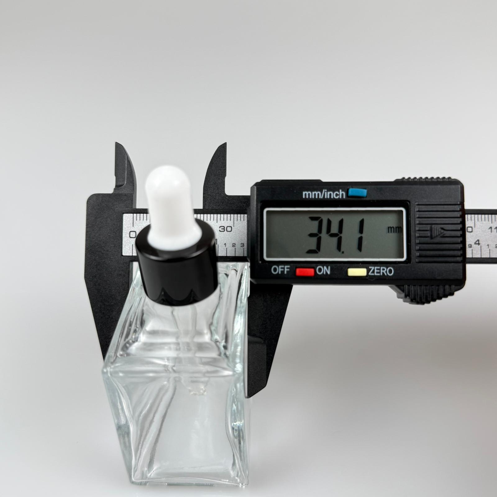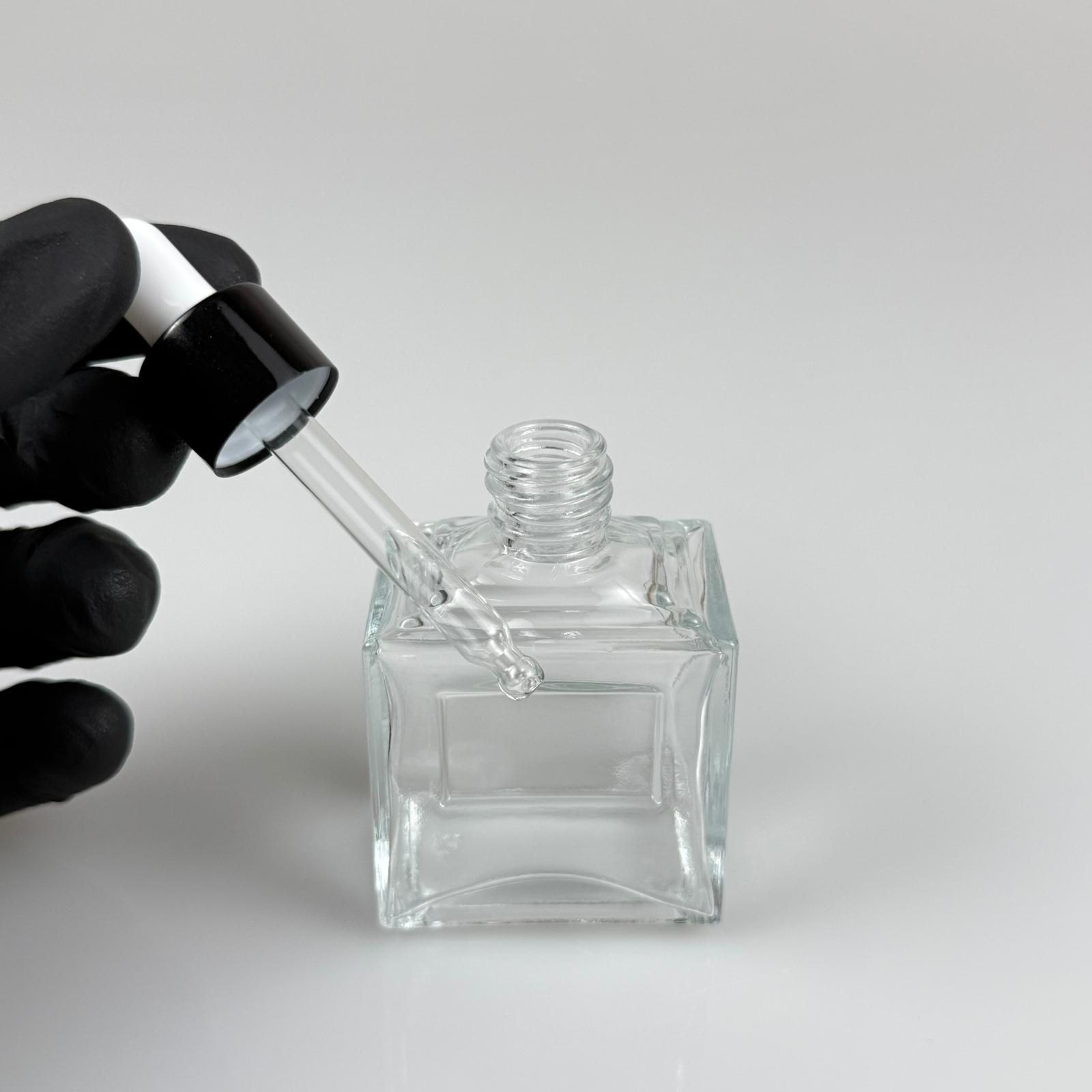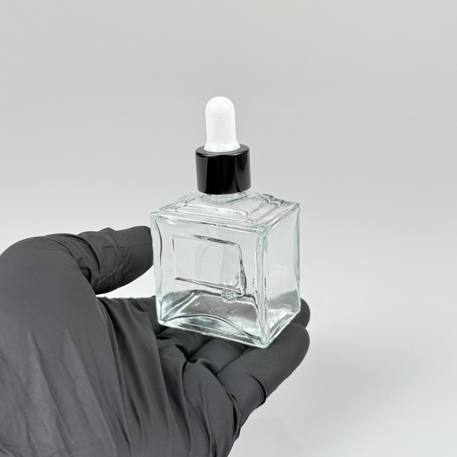 50 CC KÖŞELİ PRİZMA PRESTİJLİ CAM DAMLALIKLI ŞİŞE - BEYAZ EMZİK - SİYAH METALİK KAPAK - 50 ML CAM DAMLALIKLI ŞİŞE - DAMLALIKLI BOŞ ŞİŞE