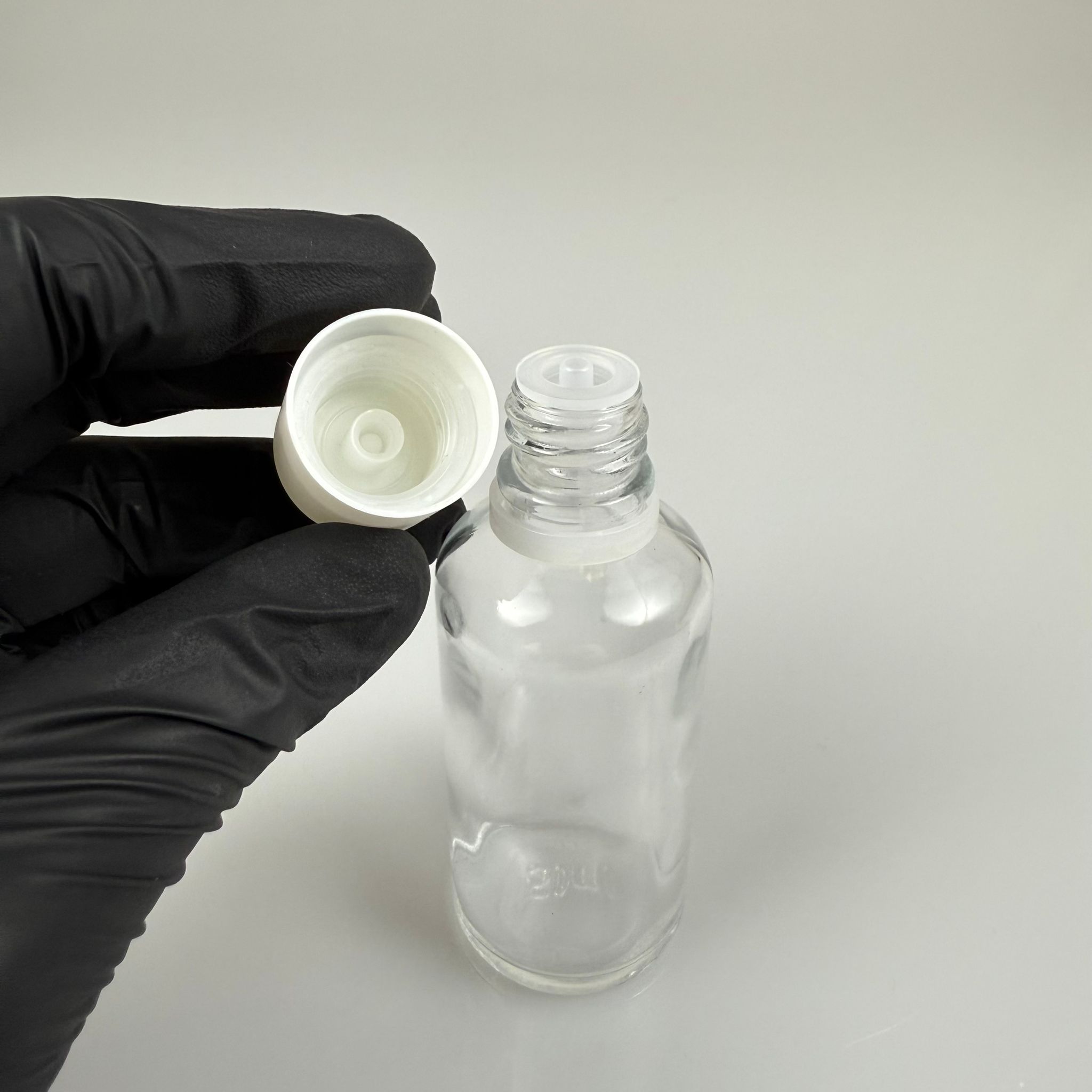 50 CC ŞEFFAF CAM ŞİŞE + İÇTEN DAMLALIKLI ÇOCUK KİLİTLİ BEYAZ KAPAK - SAYDAM 50 ML KİLİT KAPAKLI DAMLATMALI ŞİŞE