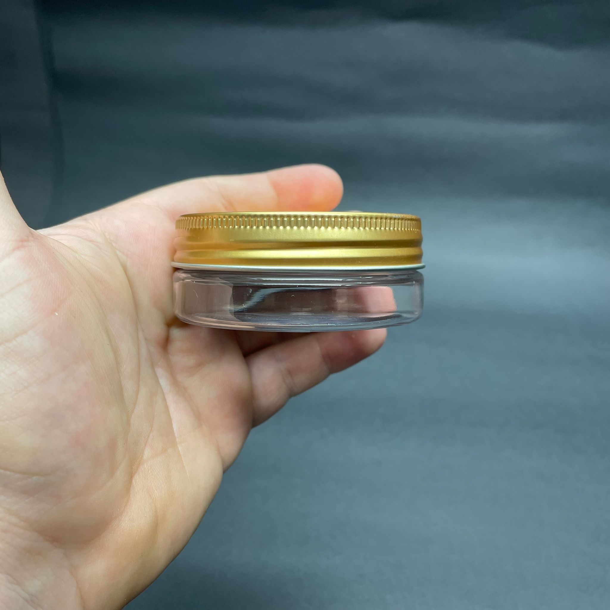 50 CC ŞEFFAF SERT PLASTİK KAVANOZ - GOLD METAL KAPAKLI - 50 ML METAL KAPAKLI PLASTİK KAVANOZ - KOZMETİK KAVANOZ, GIDA KAVANOZU VE KREM KAVANOZU OLARAK KULLANABİLİRSİNİZ