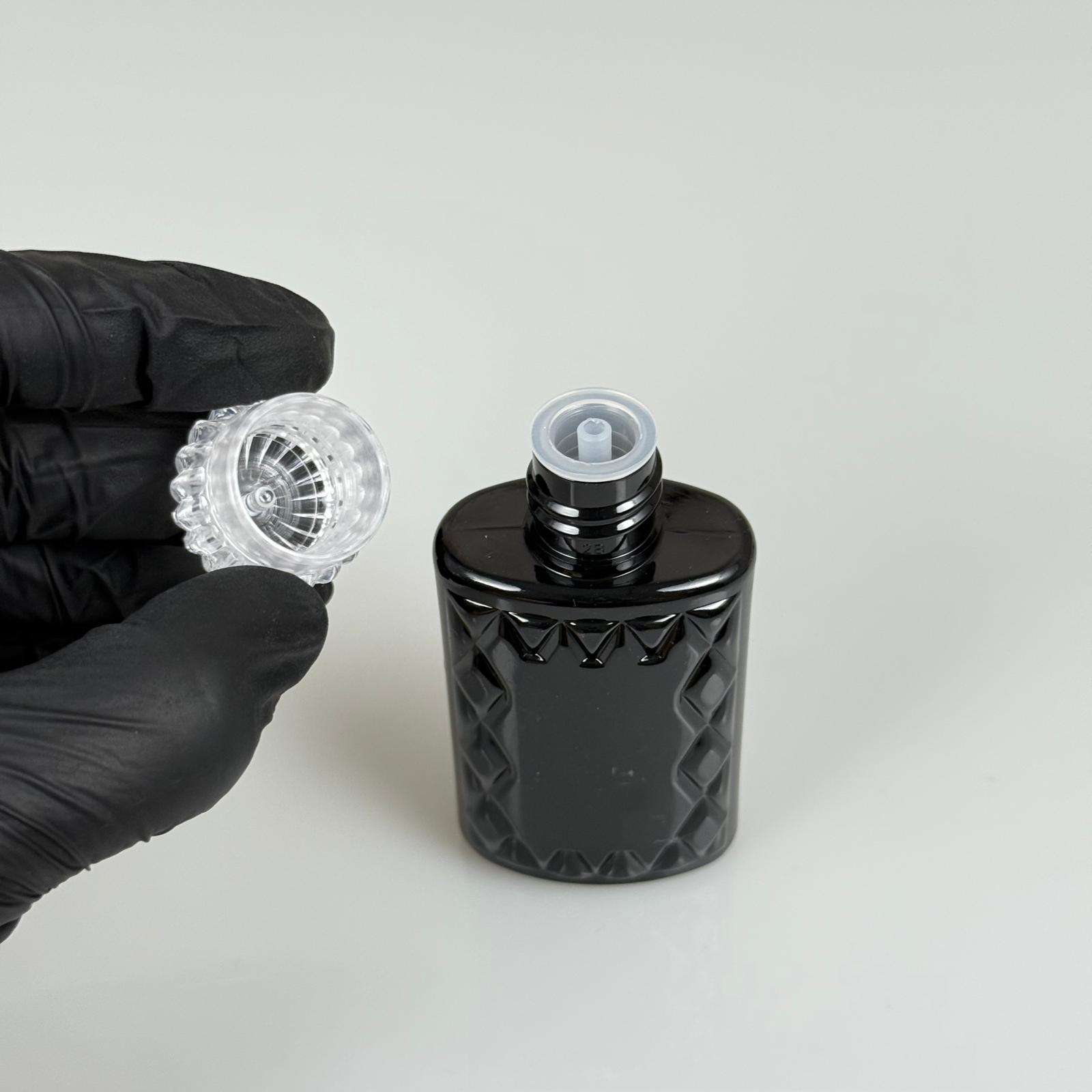 50 CC SİYAH PLASTİK KOLONYA ŞİŞESİ - KRİSTAL KAPAKLI TIPALI - 50 ML YASSI PET DESENLİ KOLONYA ŞİŞESİ