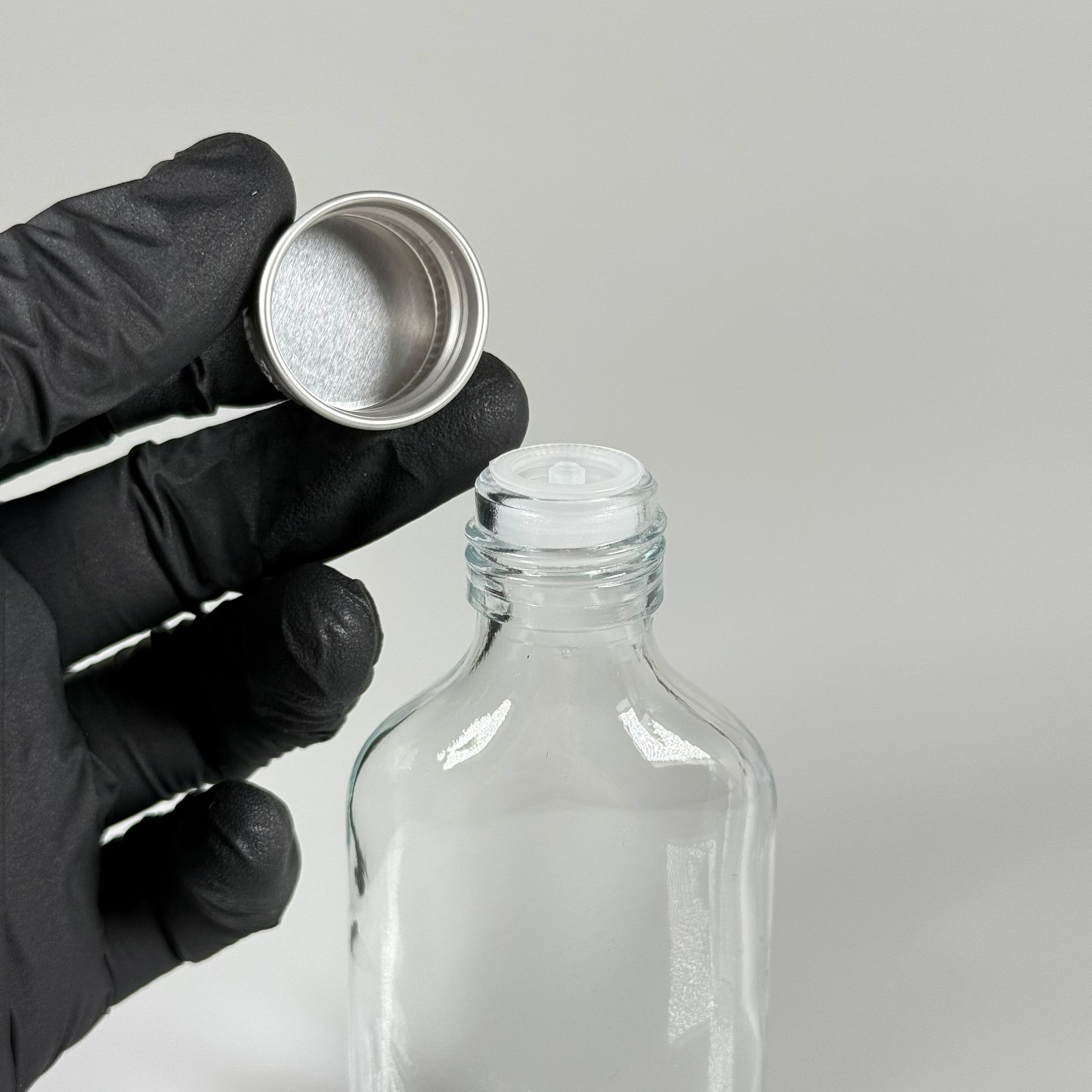 50 CC YASSI CAM ŞİŞE - GÜMÜŞ METAL KAPAKLI KOLONYA TIPALI - 50 ML COLD BREW KOLONYA CAM ŞİŞESİ (TIPA İLE KULLANMAK İÇİN KAPAK CONTASI ÇIKARILIR)