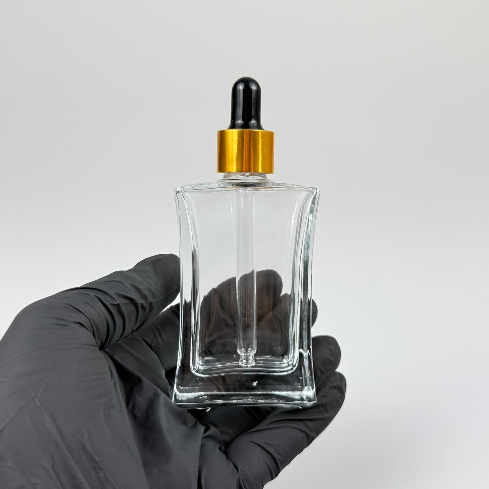 50 CC YASSI DİKDÖRTGEN KÖŞELİ CAM DAMLALIKLI ŞİŞE - SİYAH EMZİK - GOLD METALİK KAPAK - 50 ML CAM DAMLALIKLI ŞİŞE - DAMLALIKLI BOŞ ŞİŞE