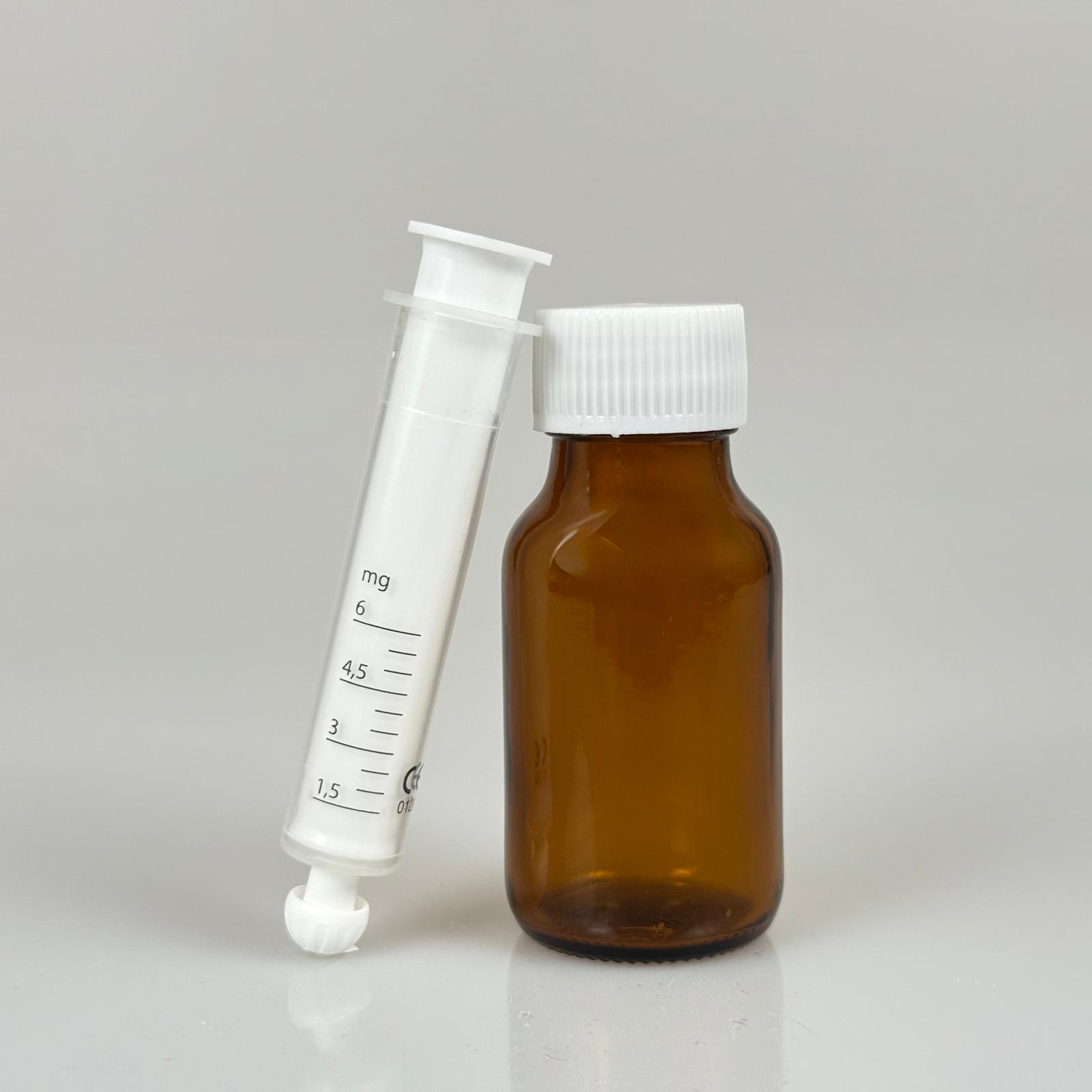 50 ML CAM ECZA ŞİŞESİ + 6 ML DOZAJ PİPETİ + DOZAJ TIPASI + CONTALI PLASTİK KAPAK TAKIM