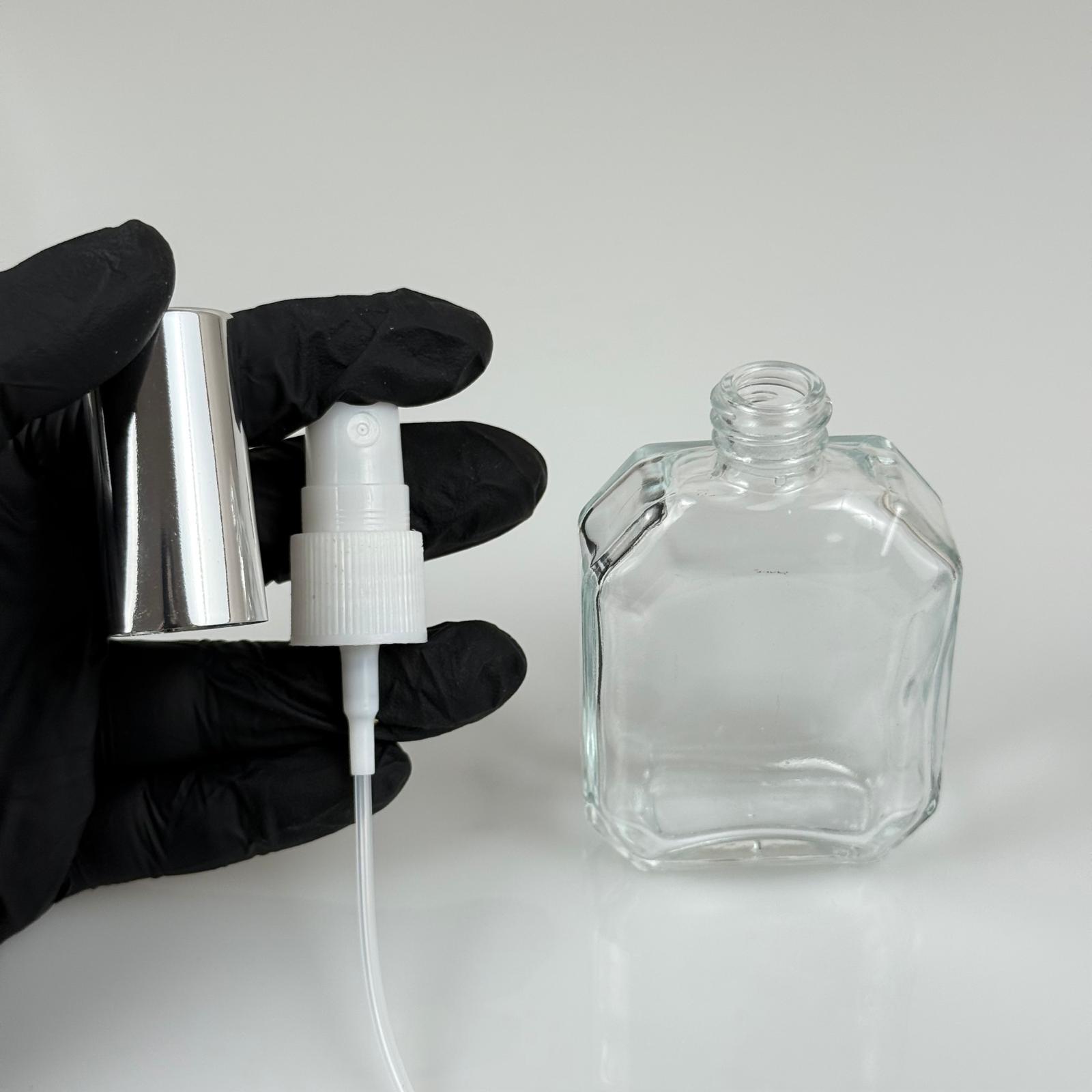 50 ML CAM KOLONYA, PARFÜM VB ŞİŞELERİ - METAL ALÜMİNYUM GÜMÜŞ KAPAK + VİDALI SPREY + 50 CC KAZABLANKA ŞEFFAF ŞİŞE SET TAKIM