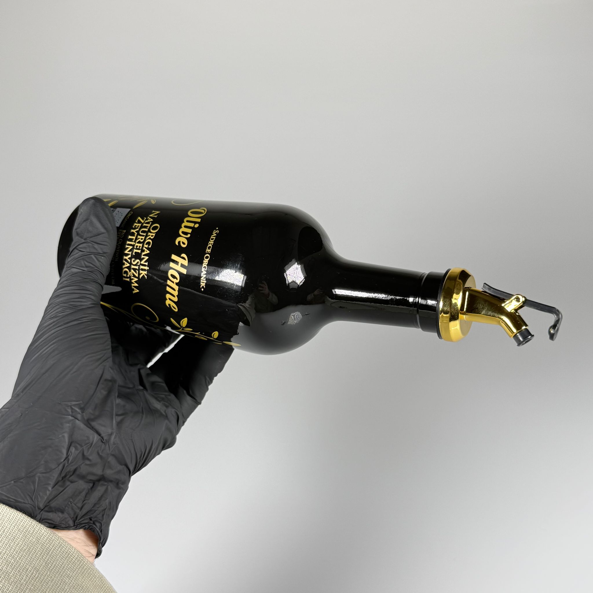 500 CC SİYAH OLİVE YAZI CAM ZEYTİNYAĞ ŞİŞESİ - GOLD YAĞDANLIK TIPALI - 500 ML YAĞDANLIK BASKILI CAM ŞİŞE