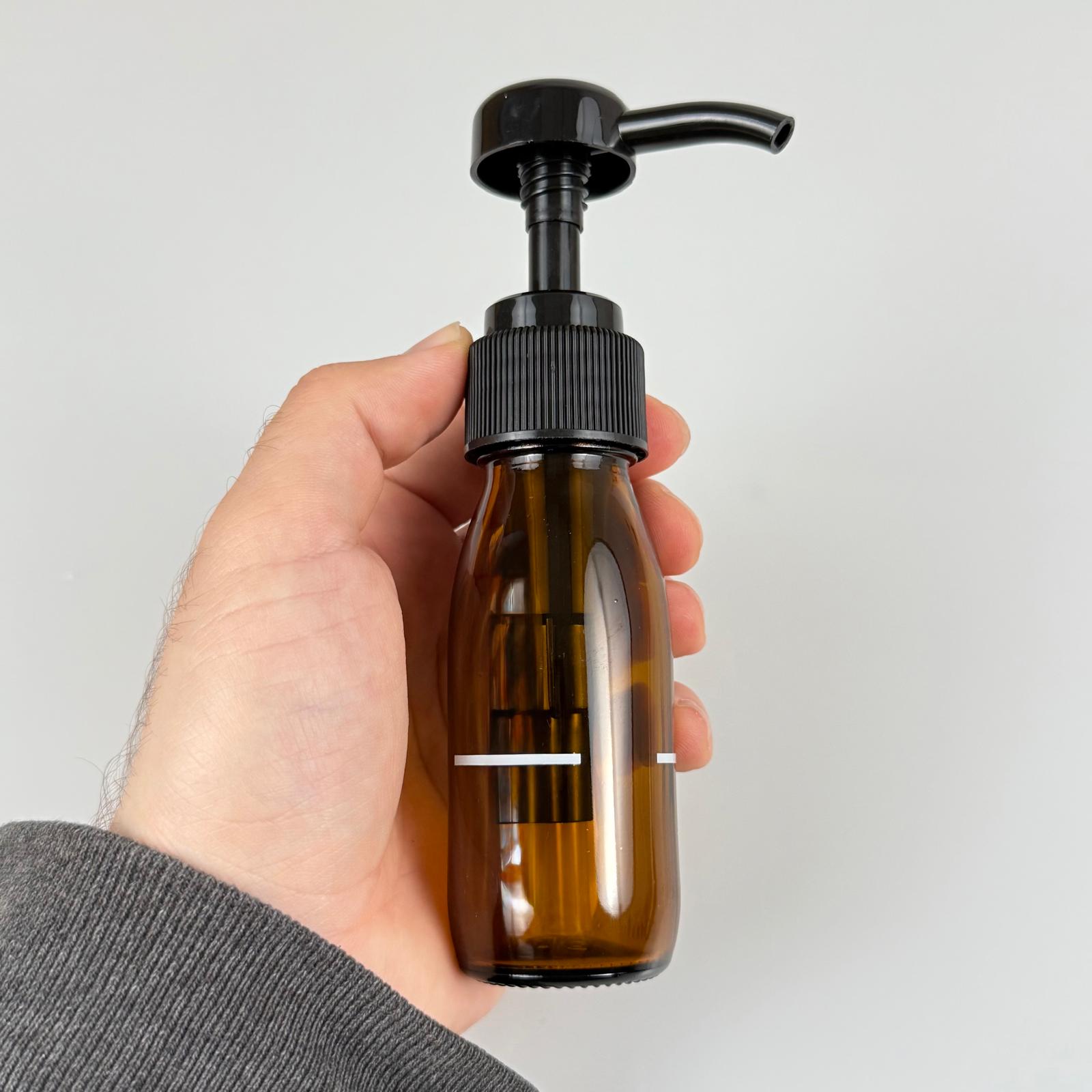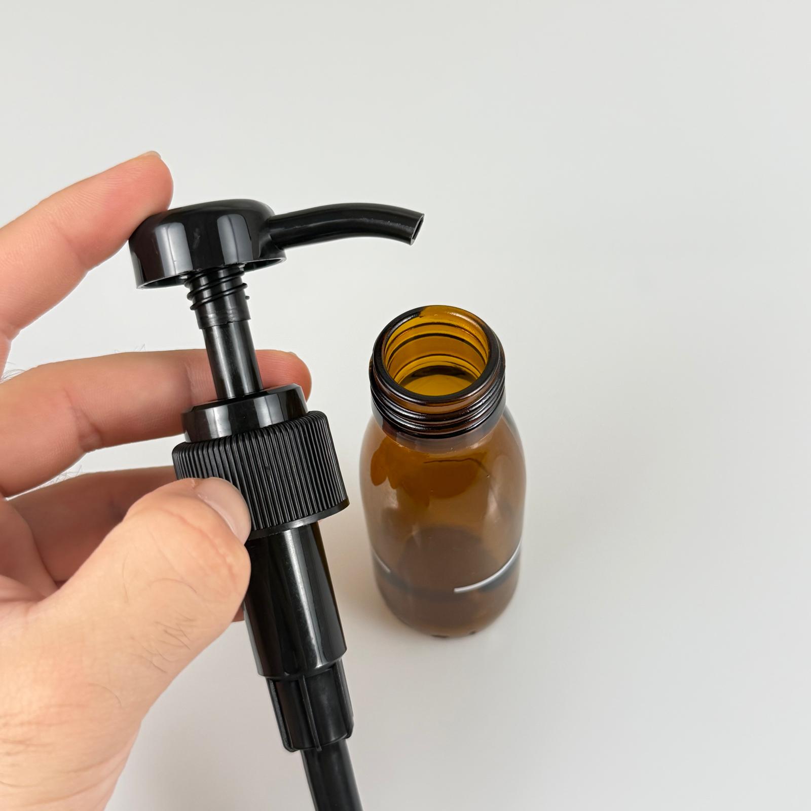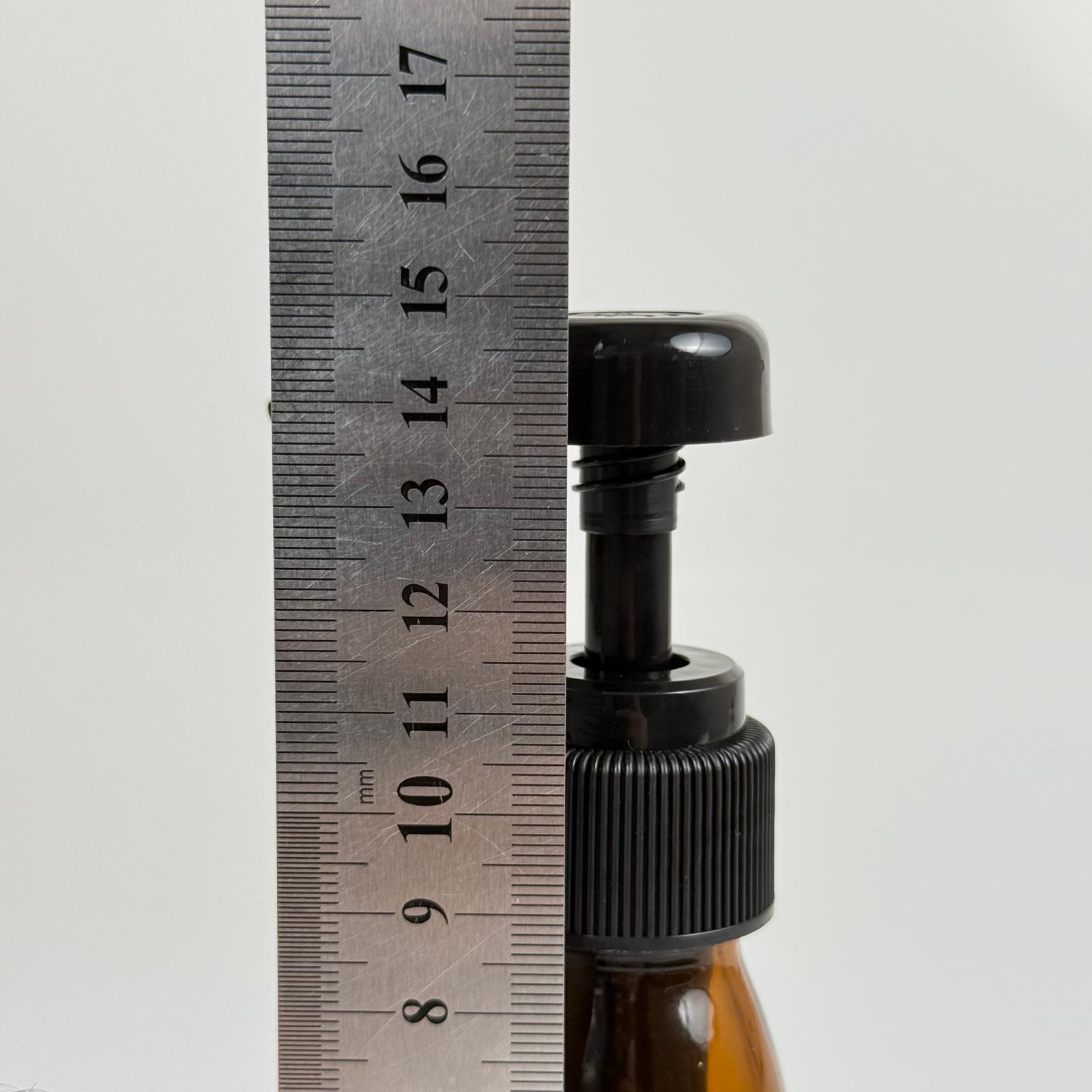 60 CC AMBER CAM ŞİŞE + SİYAH DOZAJ POMPALI (HER BASMADA 4 CC SIVI ATAR) - 60 ML POMPALI ŞİŞE - ŞURUP, ŞAMPUAN, KREM GİBİ YOĞUN KIVAMLI SIVILARDA KULLANILIR