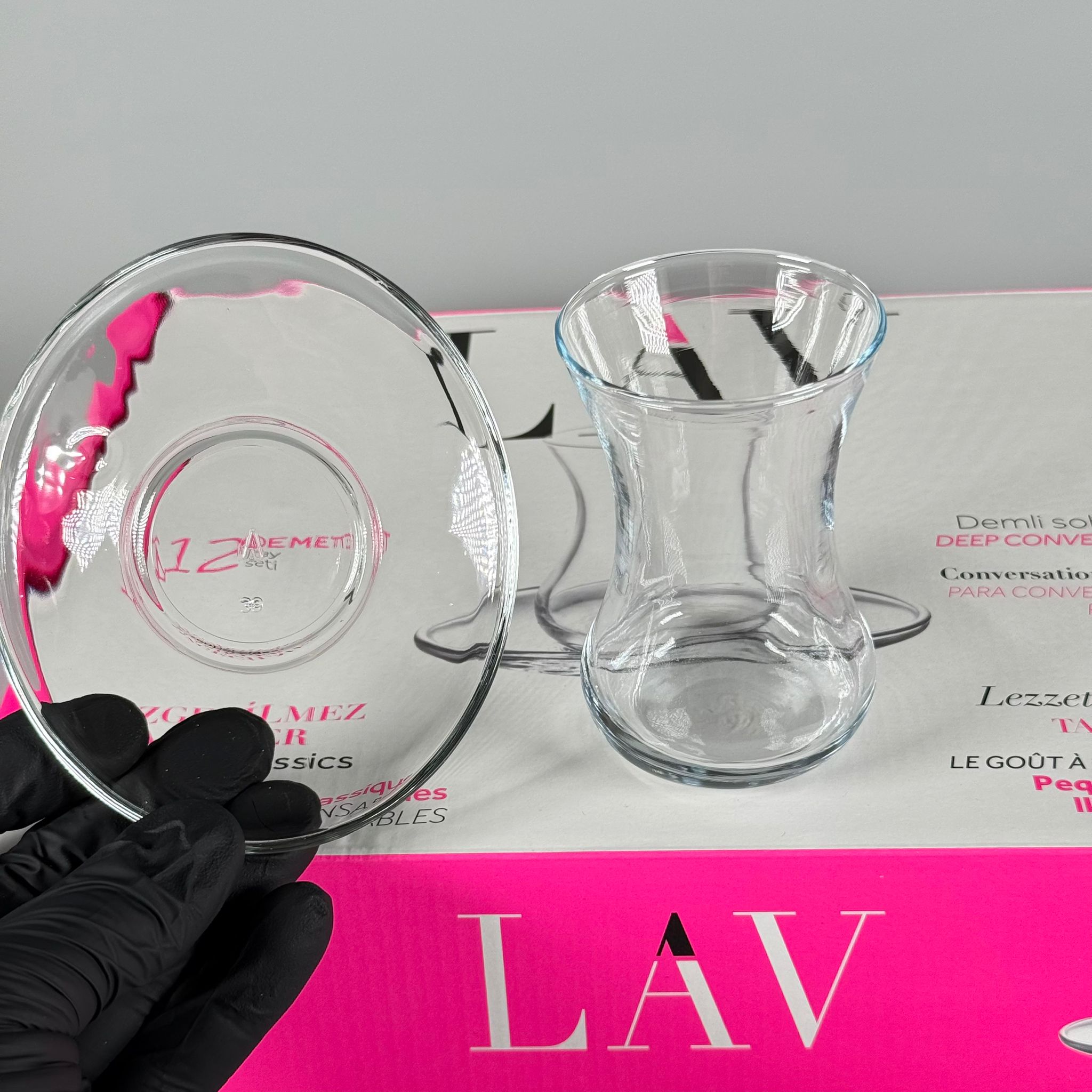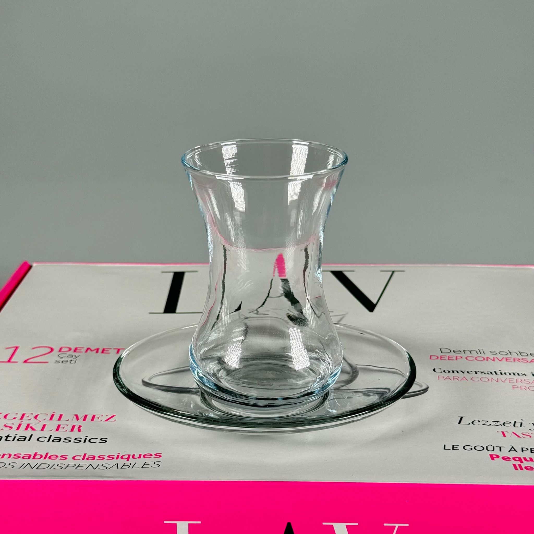 HEDİYELİK ÇAY SETİ 6 BARDAK + 6 TABAK - DEMET 12 PARÇA ÇAY SETİ (DMT303 BARDAK 6 ADET + ASN274 SADE TABAK 6 ADET) LAV