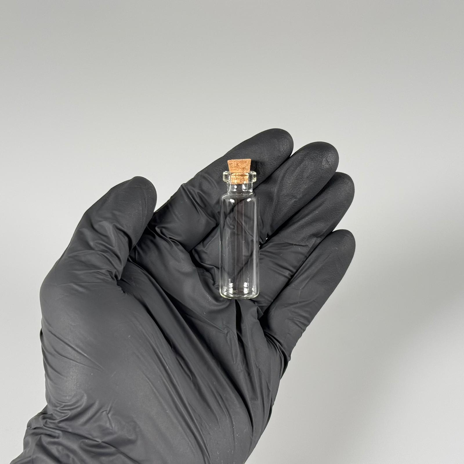 MİNİ CAM ŞİŞE MANTAR TIPALI 5 CC - anahtarlık, aksesuar. kolye, minyatür, mektup, tılsım vb için 5 ml şeffaf küçük cam şişeler