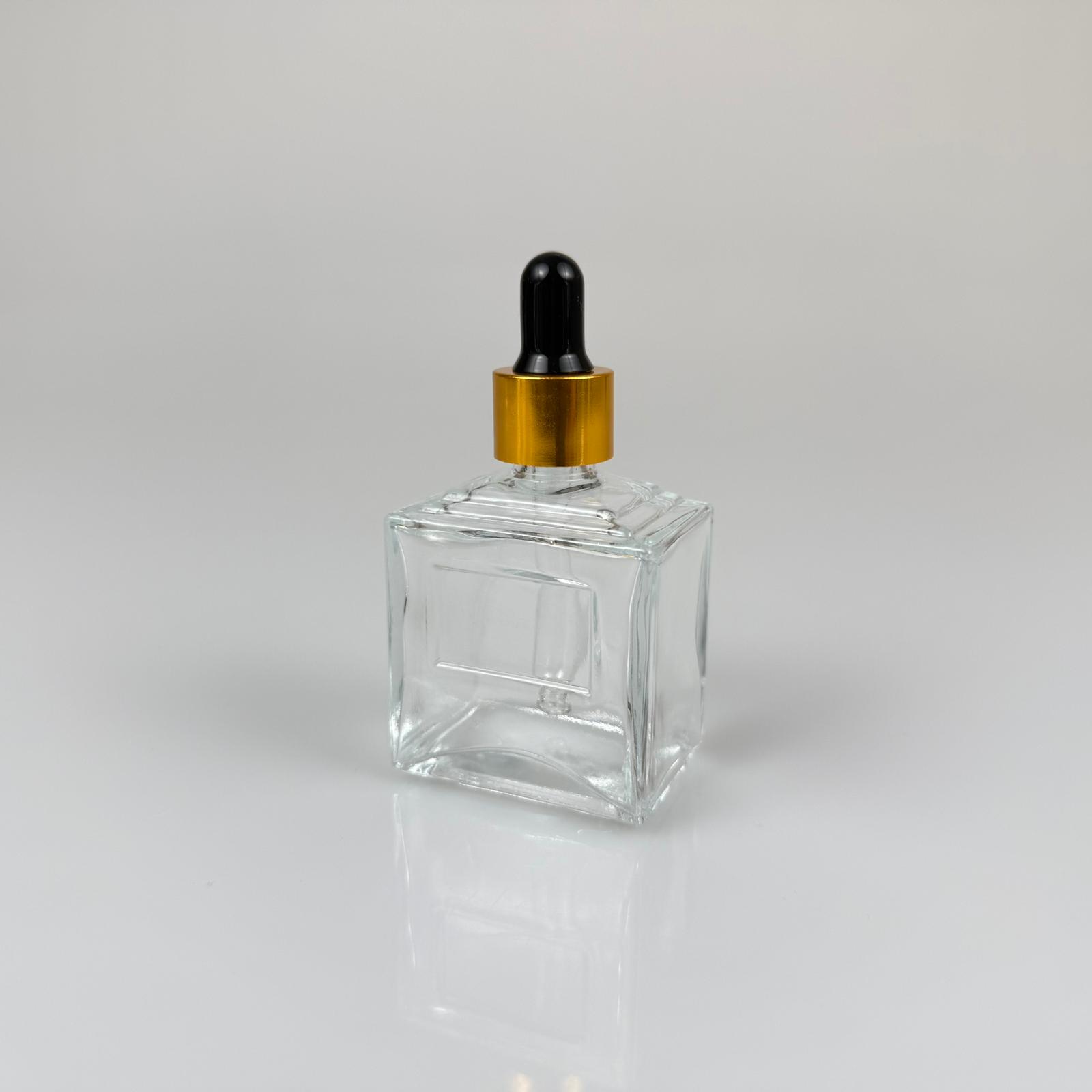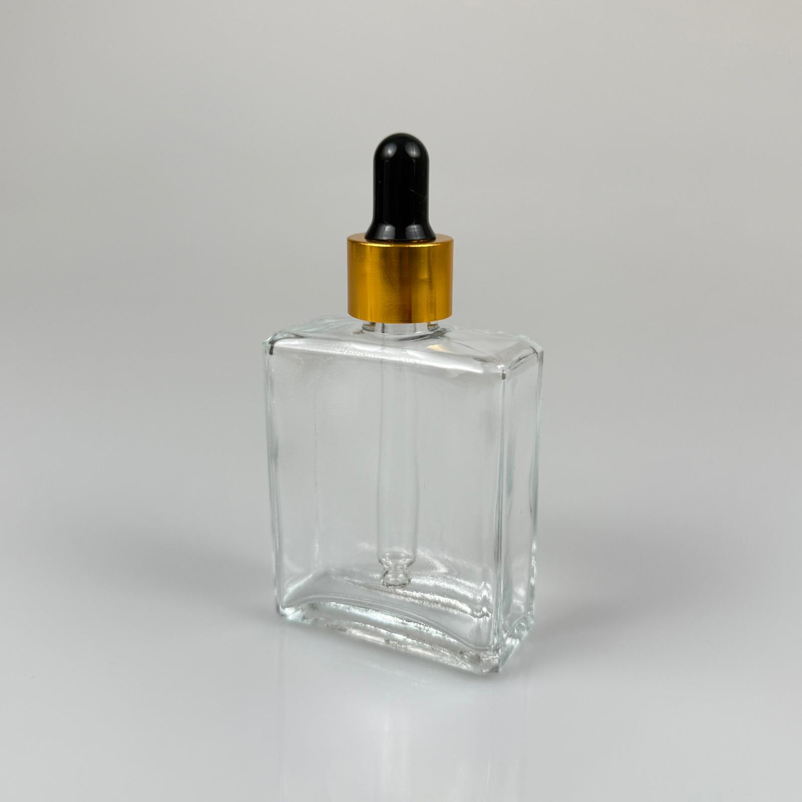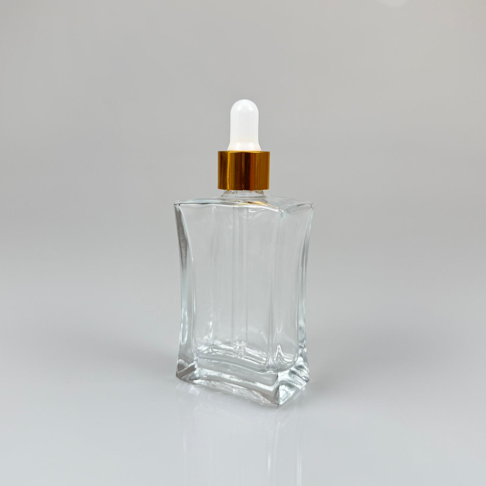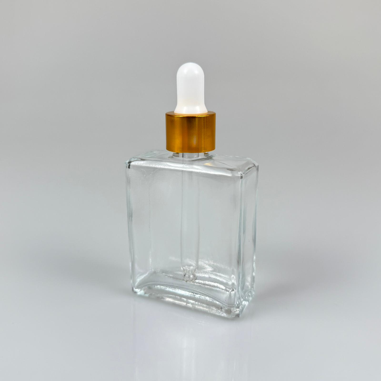 50 CC YASSI DİKDÖRTGEN KÖŞELİ CAM DAMLALIKLI ŞİŞE - BEYAZ EMZİK - GOLD METALİK KAPAK - 50 ML CAM DAMLALIKLI ŞİŞE - DAMLALIKLI BOŞ ŞİŞE