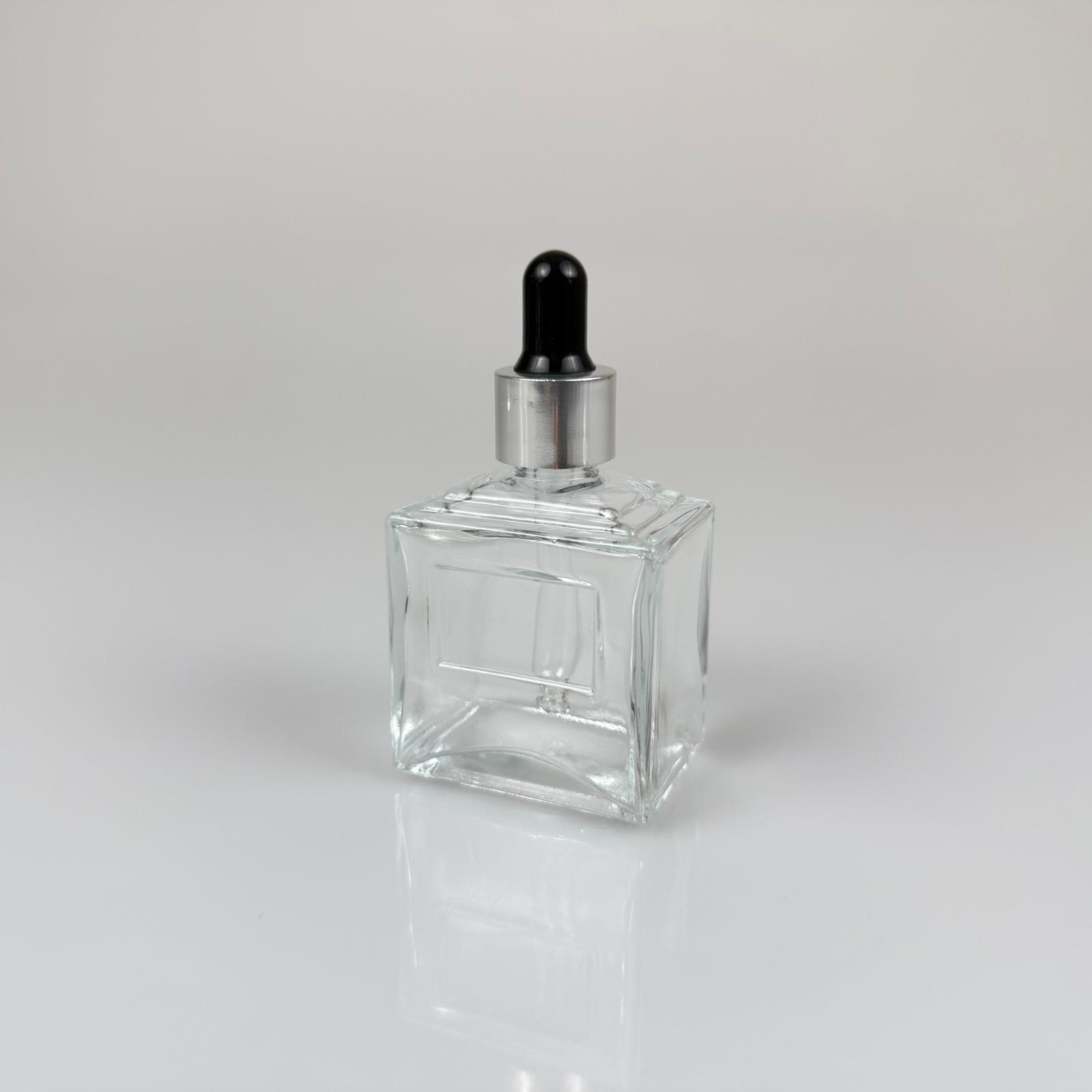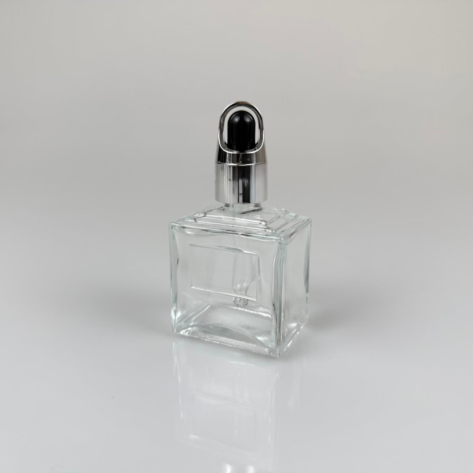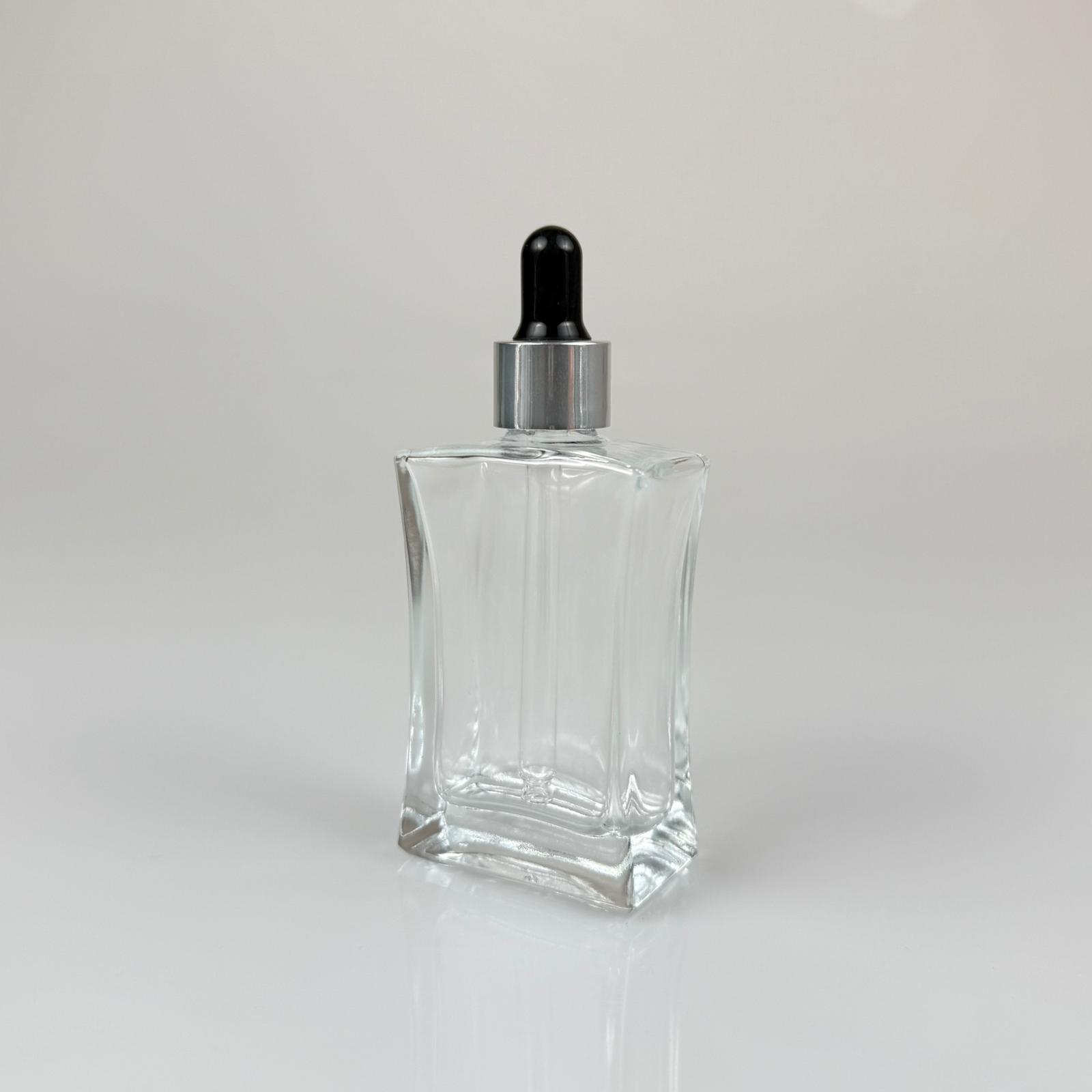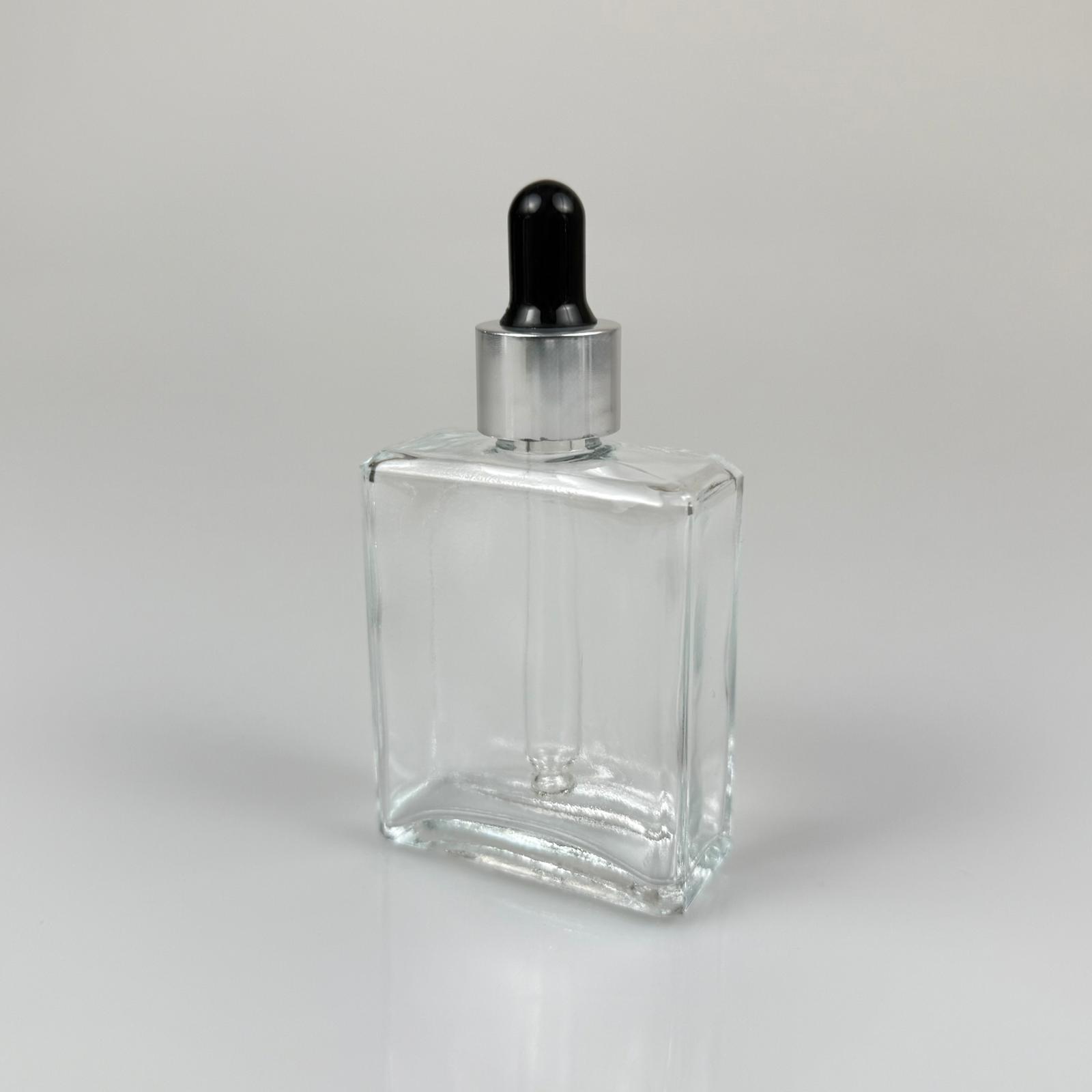 50 CC YASSI DİKDÖRTGEN KÖŞELİ CAM DAMLALIKLI ŞİŞE - BEYAZ EMZİK - GÜMÜŞ METALİK KAPAK - 50 ML CAM DAMLALIKLI ŞİŞE - DAMLALIKLI BOŞ ŞİŞE