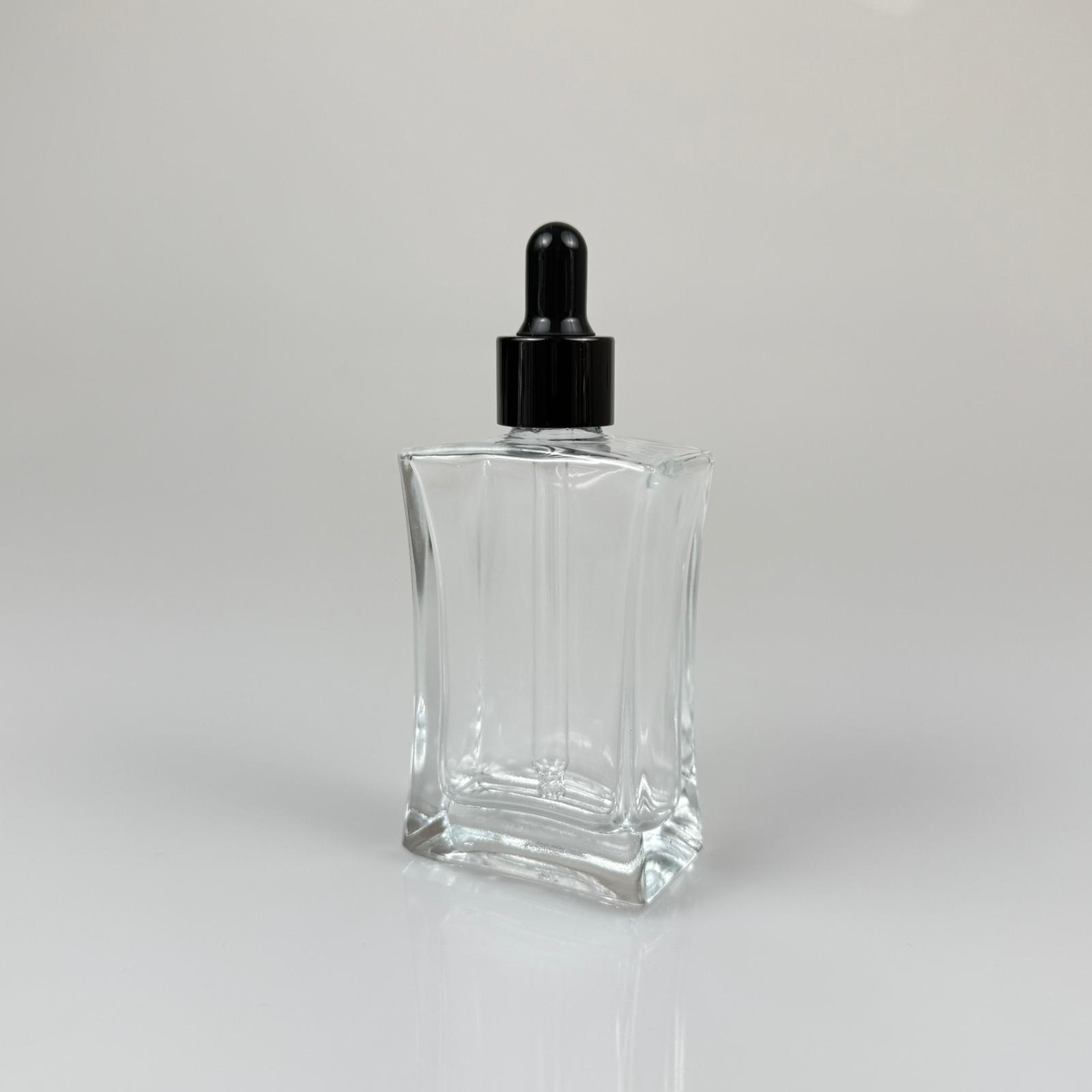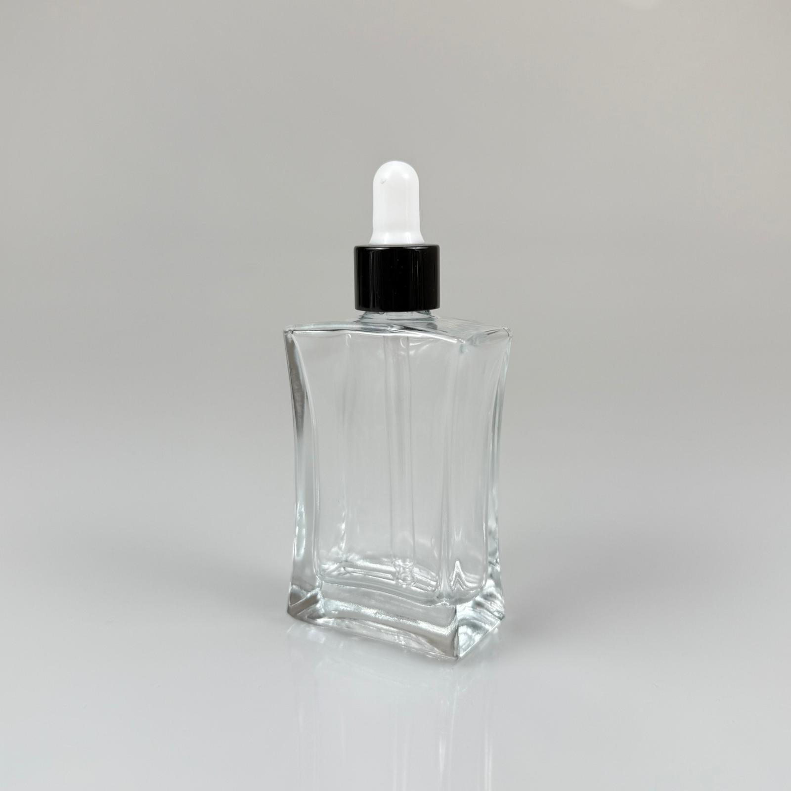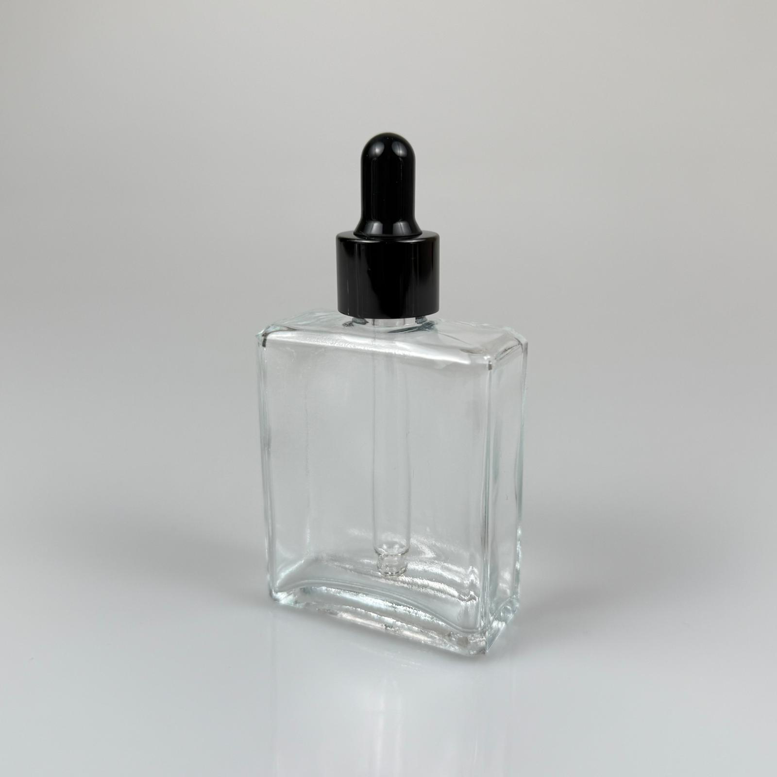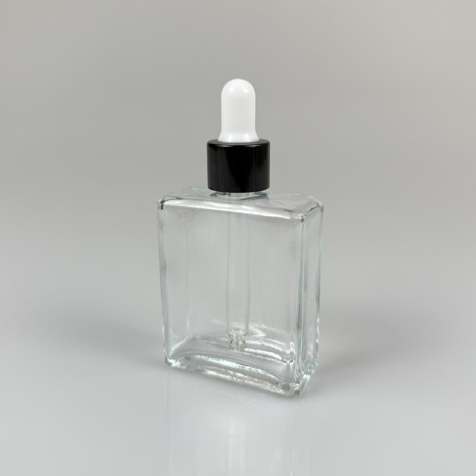 50 CC YASSI DİKDÖRTGEN KÖŞELİ CAM DAMLALIKLI ŞİŞE - BEYAZ EMZİK - SİYAH METALİK KAPAK - 50 ML CAM DAMLALIKLI ŞİŞE - DAMLALIKLI BOŞ ŞİŞE