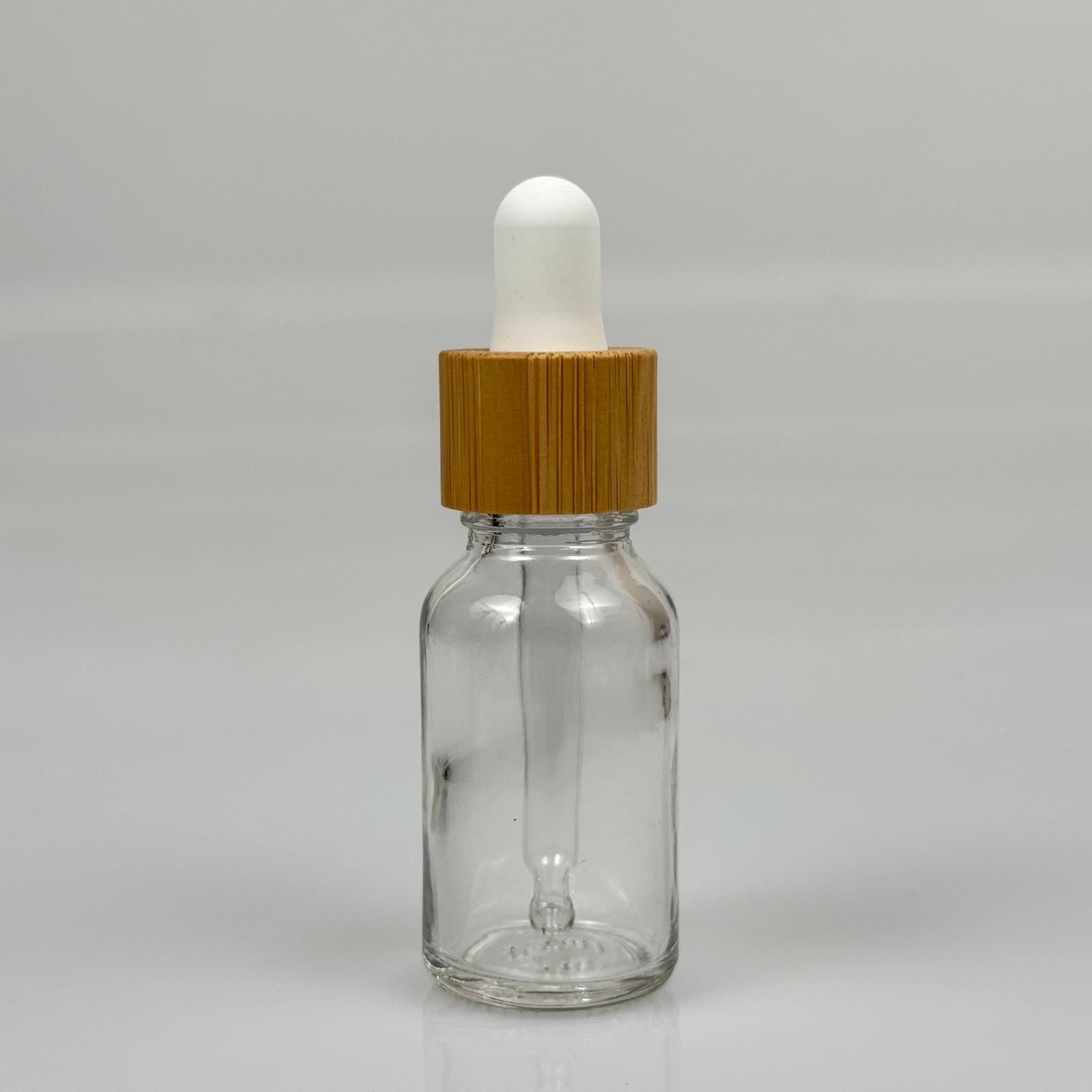 15 CC ŞEFFAF CAM DAMLALIKLI ŞİŞE - BEYAZ EMZİK - BAMBU AHŞAP KAPAK - 15 ML BAMBU KAPAKLI CAM DAMLALIKLI ŞİŞE