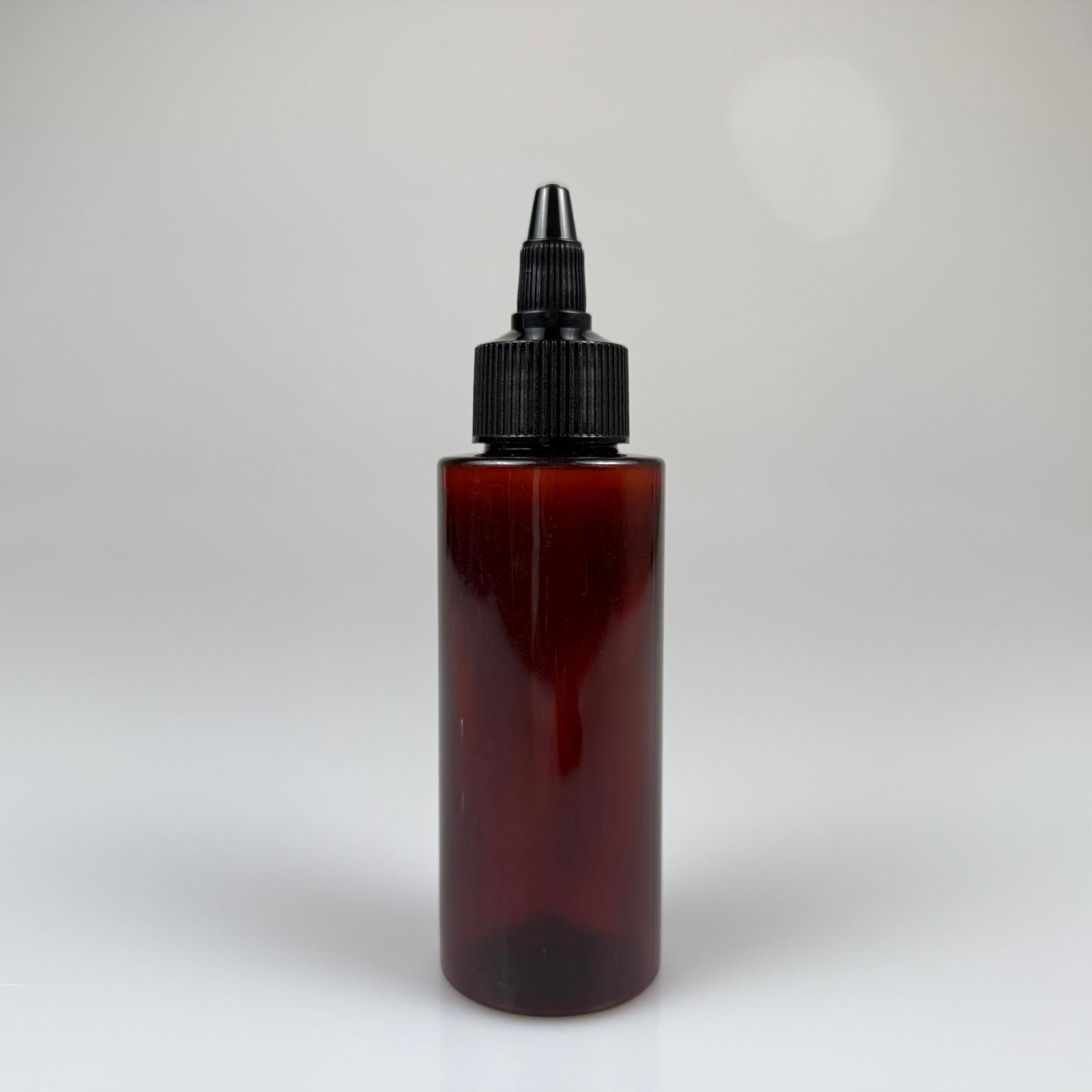 YAĞ, SOS, ACI SOS, SİRKE, SRIRACHA, MÜREKKEP, TUTKAL AKITICI VB BOŞ ŞİŞELERİ - SİYAH SİVRİ TWİST AKITICI KAPAK + 100 ML KÜT AMBER SERT PET PLASTİK ŞİŞE TAKIM