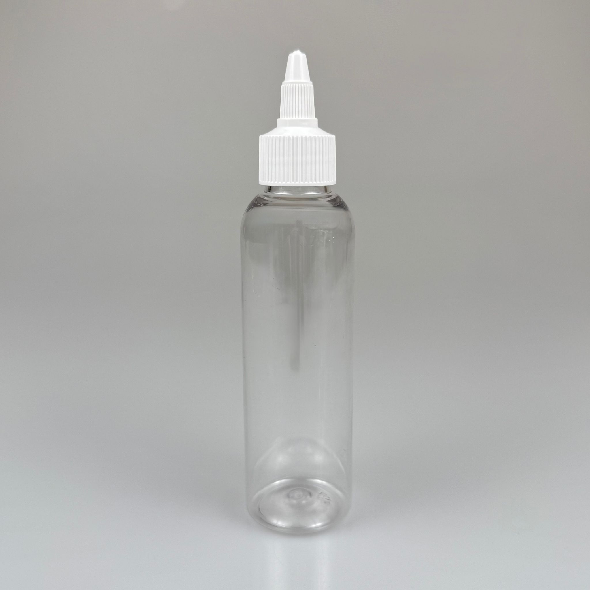 150 CC SİLİNDİR OVAL BOYUNLU PET ŞİŞE - BEYAZ DİSKTOP ŞAMPUAN KAPAKLI - AĞIZ ÇAPI 24 MM - ŞEFFAF